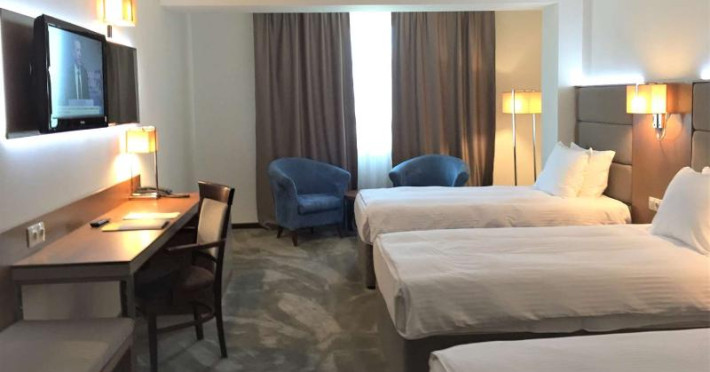 The hotel has 4 junior suites, 5 suites, 25 single rooms and 60 double rooms, which are located on 8 storeys and are reachable by 2 lifts. English-speaking staff at the reception desk in the lobby are ready to assist you with check-in and check-out. Amenities available at the hotel include a baggage storage service and a safe. Wireless internet access allows guests to stay connected while on holiday. The tour desk offers assistance with booking excursions. The hotel has a range of facilities for guests with disabilities. Wheelchair-accessible facilities are available. There are also a number of shops that make for great strolling and browsing. Additional amenities include a newspaper stand, a TV room and a library. Guests arriving by car can park their vehicles in the garage or in the car park. Further services and facilities include a car hire service, medical assistance, a transfer service, room service, a laundry service, a hairdresser, a coin-operated laundry and a hotel shuttle bus. A business centre with fax machine and projector is available. Lectures, presentations and meetings can be held in one of the 3 conference rooms.