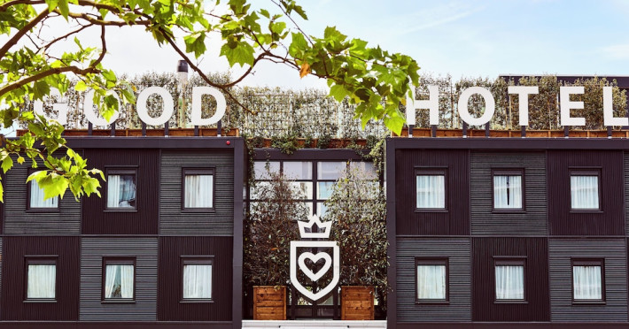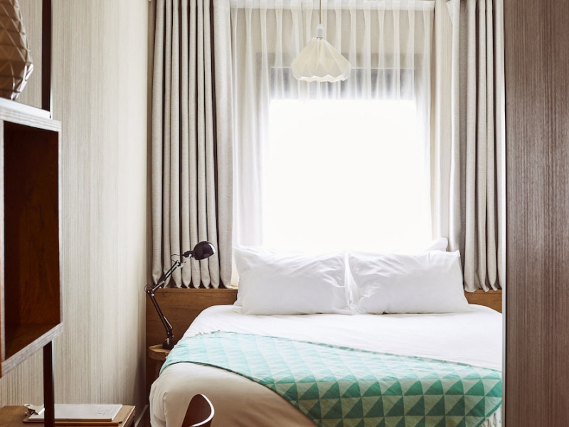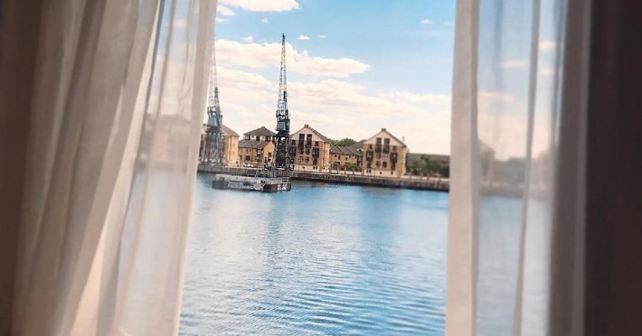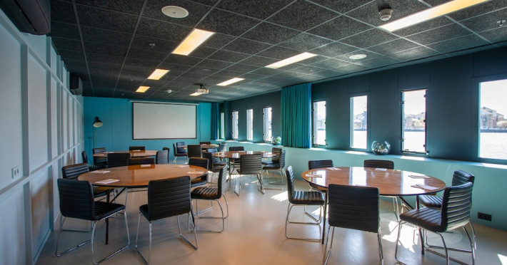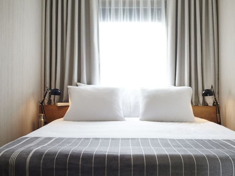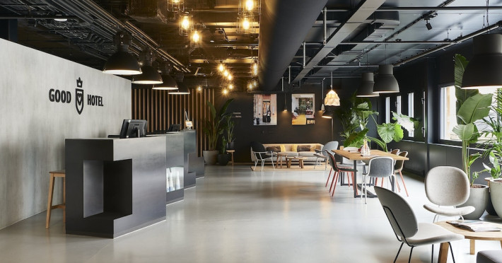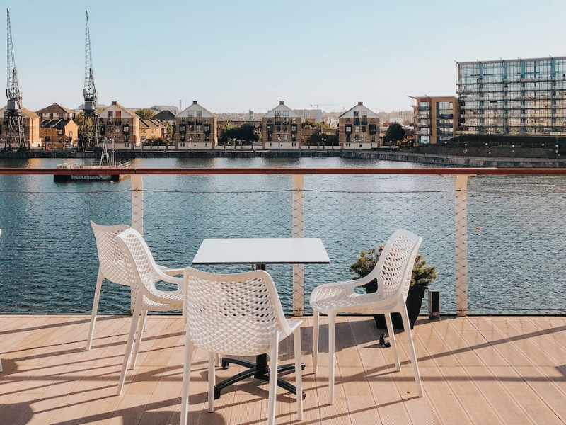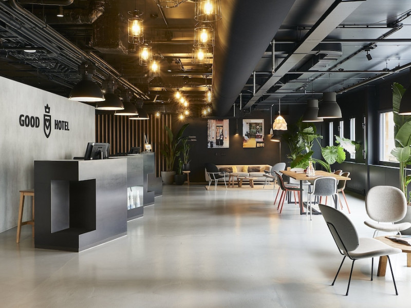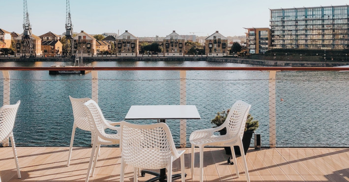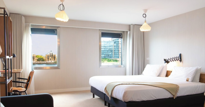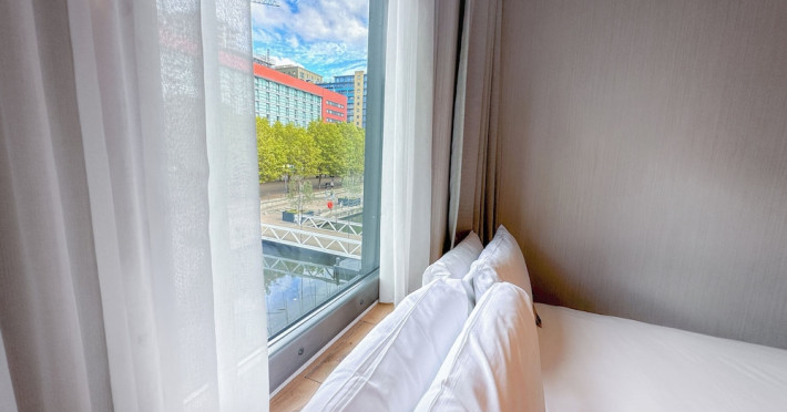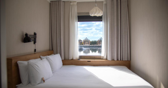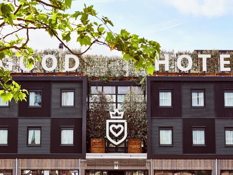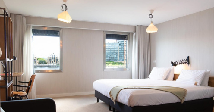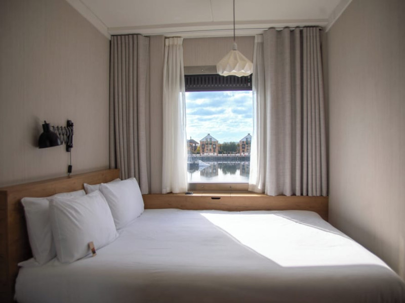 Good Hotel London is a unique, floating hotel on the Royal Victoria Docks, offering stunning views of the River Thames and the London skyline. Located near City Hall, ExCeL London, London City Airport, the O2 Arena, Stratford London Stadium, and Canary Wharf, it provides easy access to central London via the Elizabeth Line and DLR. The hotel features a rooftop terrace, a living room, and minimalist design throughout. Amenities include complimentary Wi-Fi, concierge services, a snack bar/deli, two bars/lounges, and a restaurant (The Living Room). A buffet breakfast is served daily (weekdays 7:00 AM-10:30 AM, weekends 7:30 AM-10:30 AM, fee applies). Other amenities include dry cleaning/laundry services, a 24-hour front desk, multilingual staff, conference space, and nine meeting rooms. Rooms are air-conditioned and include private bathrooms with showers, complimentary toiletries, hair dryers, safes, desks, and daily housekeeping. Note that TVs are not currently available in rooms. The minimum age for check-in is 18. Good Hotel is a social business; profits support training programs for the long-term unemployed in London and education for disadvantaged children in Guatemala. The hotel is approximately 0.5 km from ExCeL London and 3.5 km from London City Airport. The Good Hotel London is a hotel.