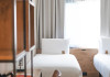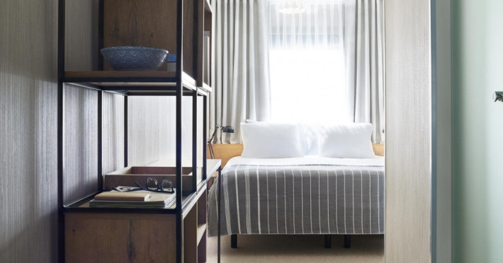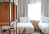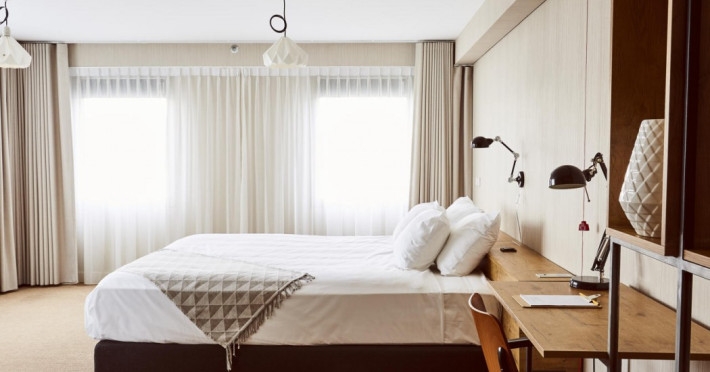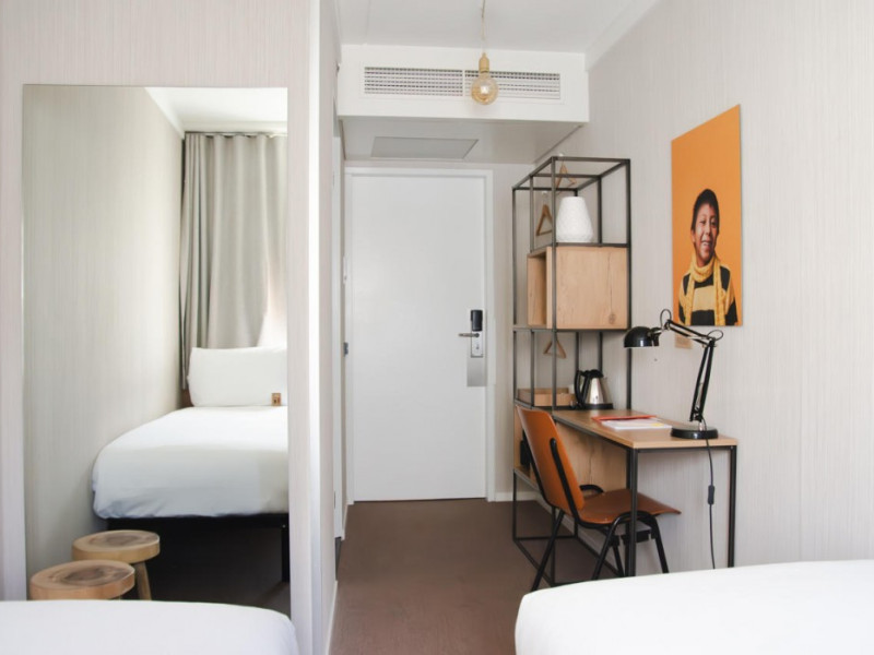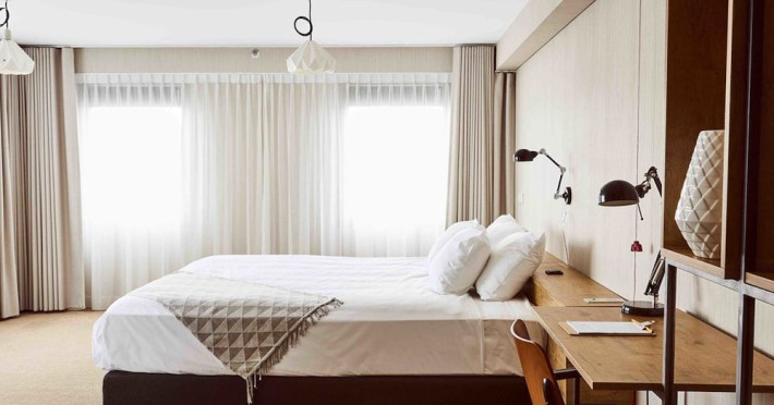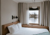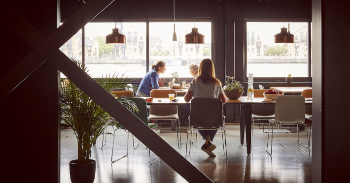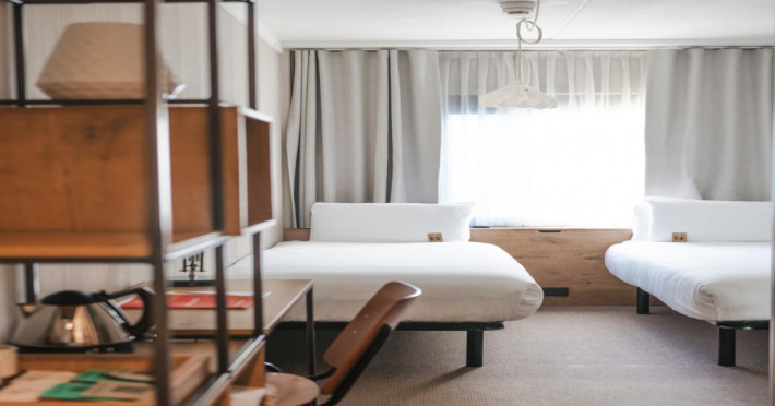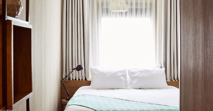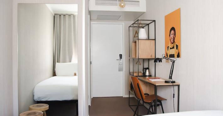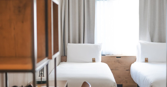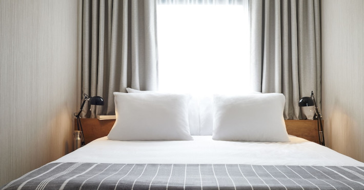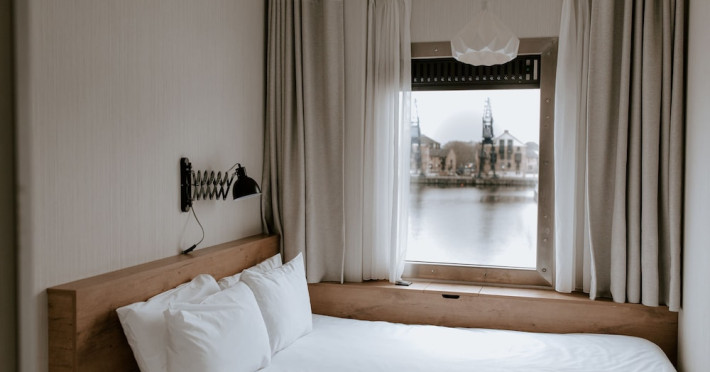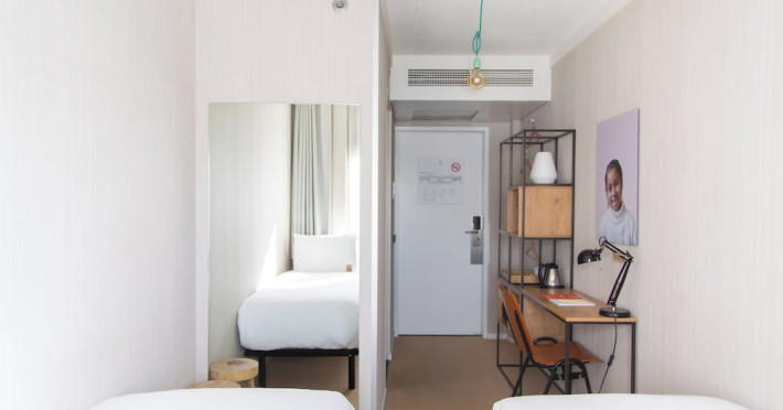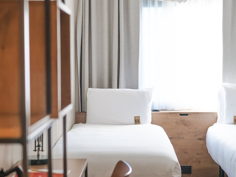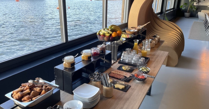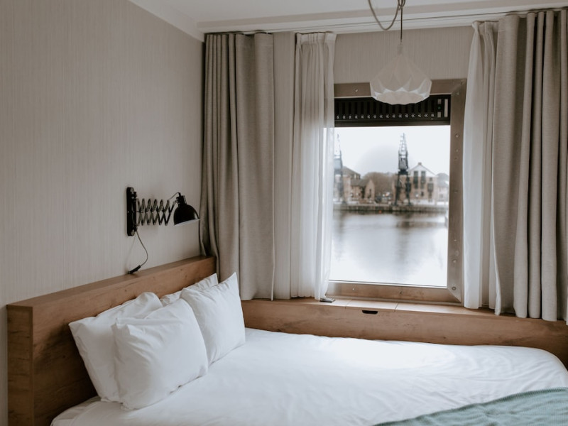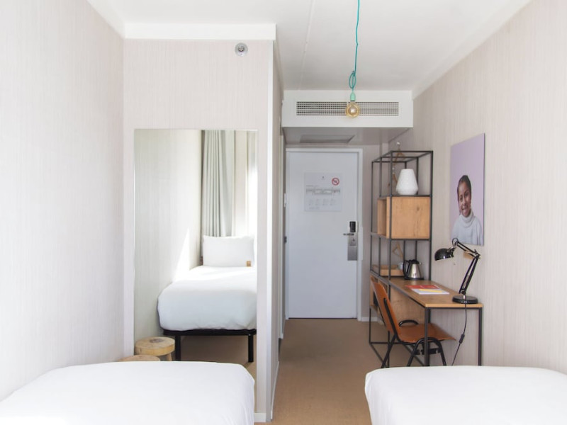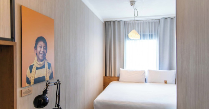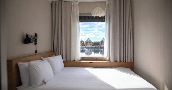 Good Hotel London is a unique, floating hotel on the Royal Victoria Docks, offering stunning views of the River Thames and the London skyline. Located near City Hall, ExCeL London, London City Airport, the O2 Arena, Stratford London Stadium, and Canary Wharf, it provides easy access to central London via the Elizabeth Line and DLR. The hotel features a rooftop terrace, a living room, and minimalist design throughout. Amenities include complimentary Wi-Fi, concierge services, a snack bar/deli, two bars/lounges, and a restaurant (The Living Room). A buffet breakfast is served daily (weekdays 7:00 AM-10:30 AM, weekends 7:30 AM-10:30 AM, fee applies). Other amenities include dry cleaning/laundry services, a 24-hour front desk, multilingual staff, conference space, and nine meeting rooms. Rooms are air-conditioned and include private bathrooms with showers, complimentary toiletries, hair dryers, safes, desks, and daily housekeeping. Note that TVs are not currently available in rooms. The minimum age for check-in is 18. Good Hotel is a social business; profits support training programs for the long-term unemployed in London and education for disadvantaged children in Guatemala. The hotel is approximately 0.5 km from ExCeL London and 3.5 km from London City Airport. The Good Hotel London is a hotel.