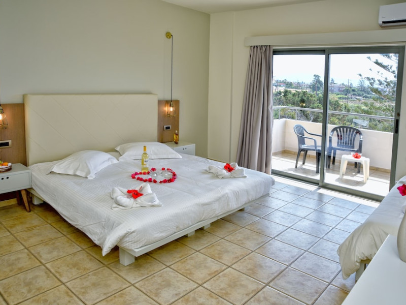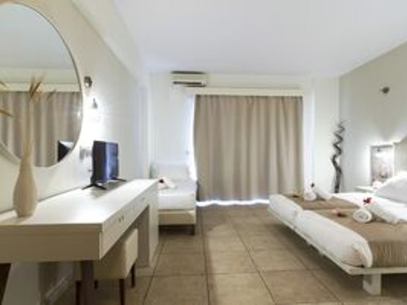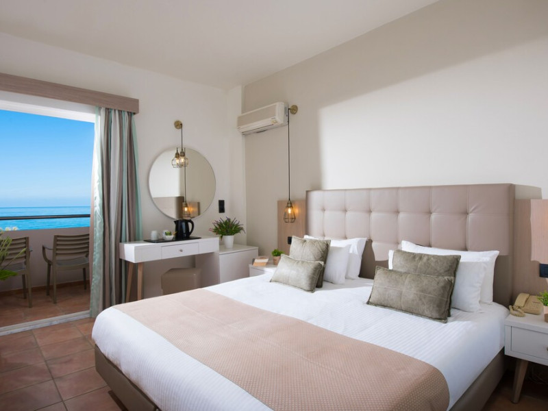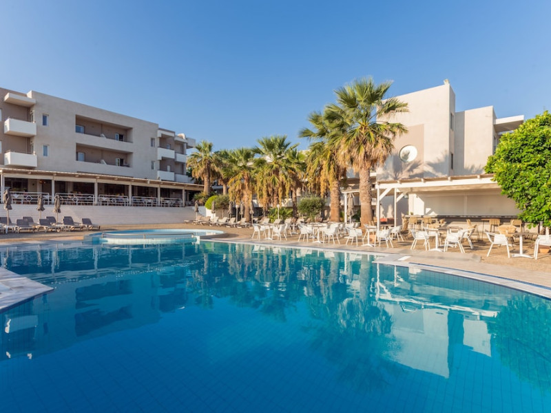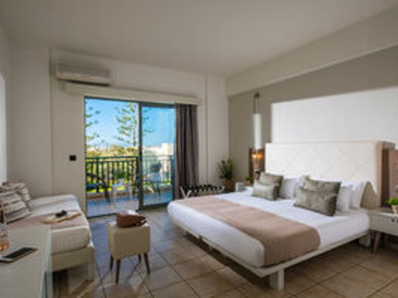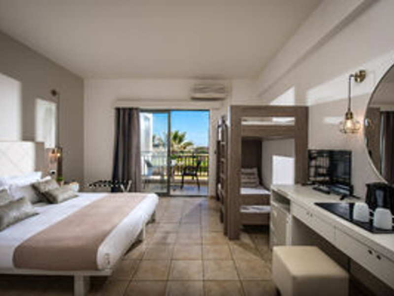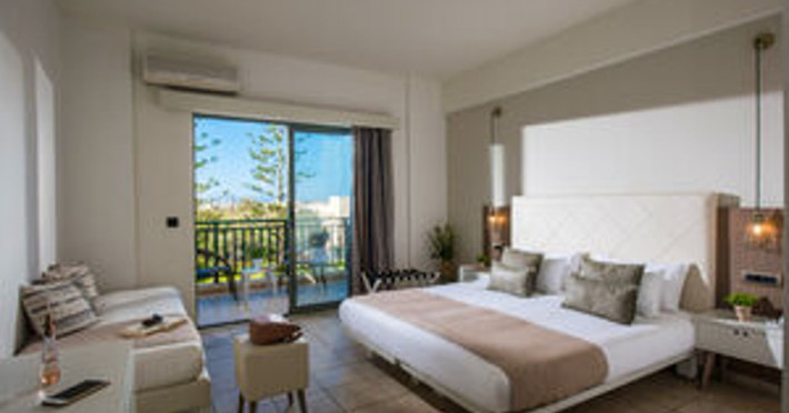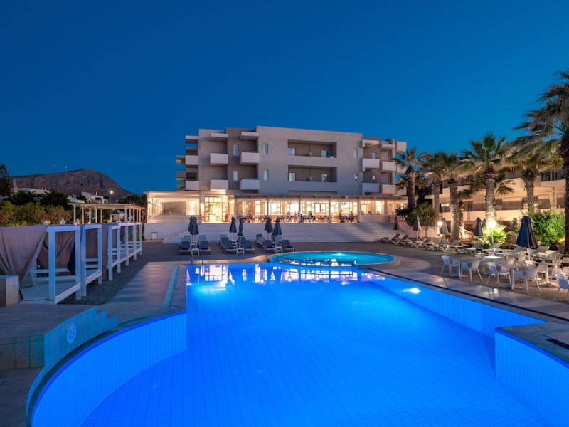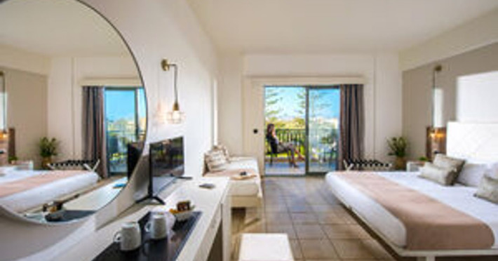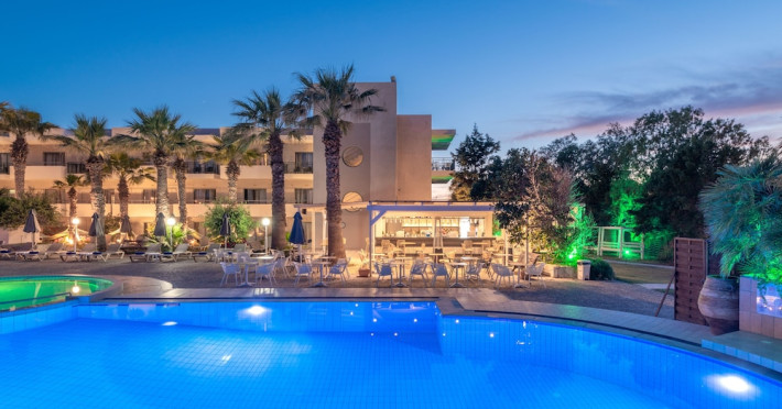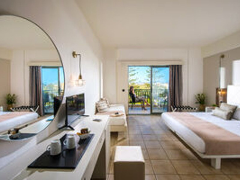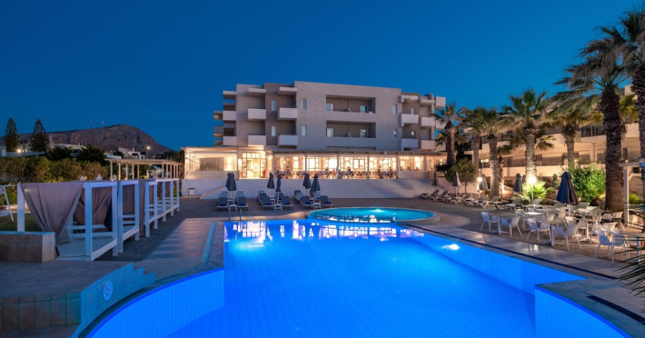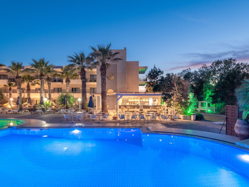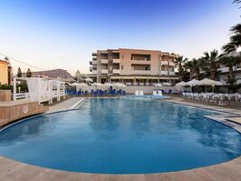 Facilities and services include 24-hour reception, lobby, luggage transfer, luggage room, Wi-Fi in public areas (free), elevator, mini market, souvenir shop, swimming pool, pool/beach towels (free), sunbeds & umbrellas (free at the pool, with extra charge at the beach by an off-site third party), sun terrace, car & bike rental, courtesy room, private parking (free), business center, fax/photocopy service (extra charge), secretarial services, currency exchange, airport transfer service (extra charge), doctor on call (extra charge), first aid, restaurant, bar, safe (extra charge) and gym/fitness facilities.Room features include individual air-conditioning (free), direct-dial telephone (extra charge), electronic safety deposit box (extra charge per day), 21-inch plasma TV (satellite channels), radio, mini fridge, electric kettle, coffee & tea facilities, shower/WC, hairdryer, bathrobe, balcony, wake-up service, 12-hour room service (extra charge), maid service (daily), towel change (daily & on request), linen change (every 2 days), and laundry & ironing service (extra charge).In case of choosing the option of all inclusive:The All Inclusive-concept includes all meals (breakfast, lunch, dinner and snacks) and mealtime drinks such as soft drinks, beer, wine, water and alcoholic drinks, all of local brands. Drinks are served from morning until late evening (approx until 22.-24.00 hrs). Opening times vary between different hotels. In certain hotels the activities program is also included.Please note that some of the above facilities may be closed due to weather / seasonal conditions.Address: Agiou Konstantinou, Crete Island, 70014 Gouves, Greece.
