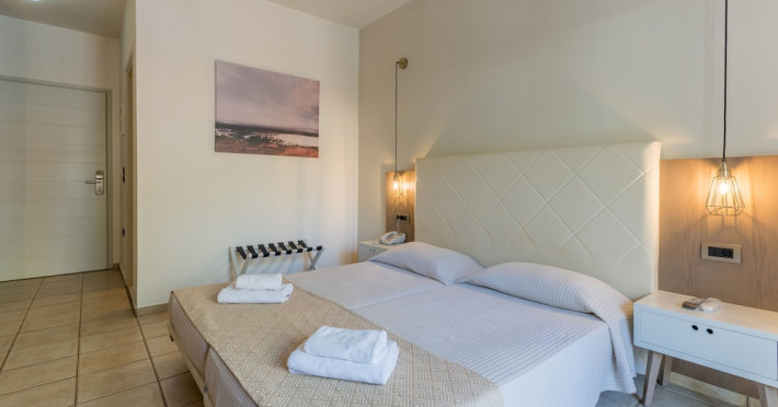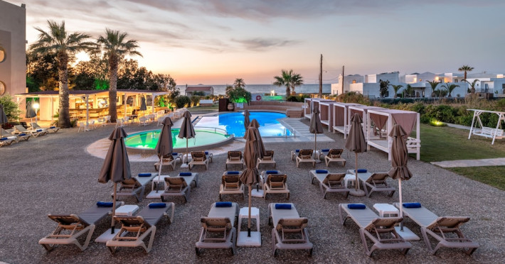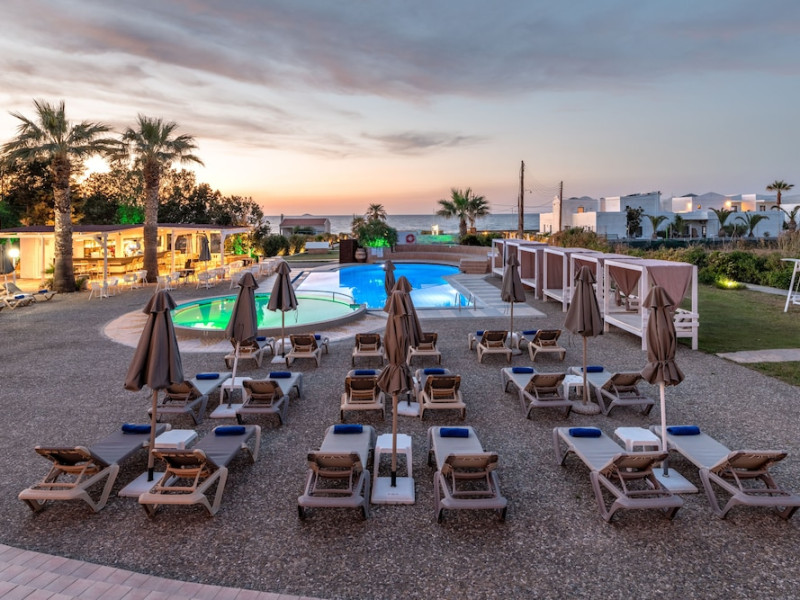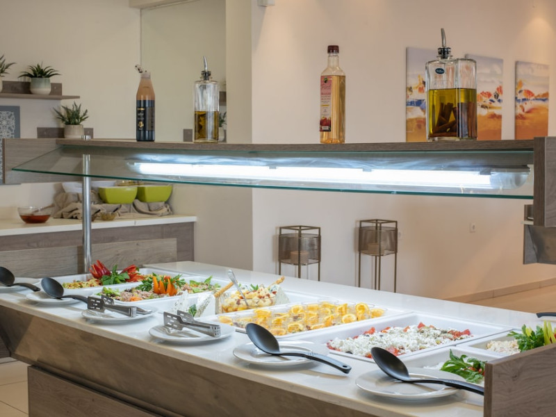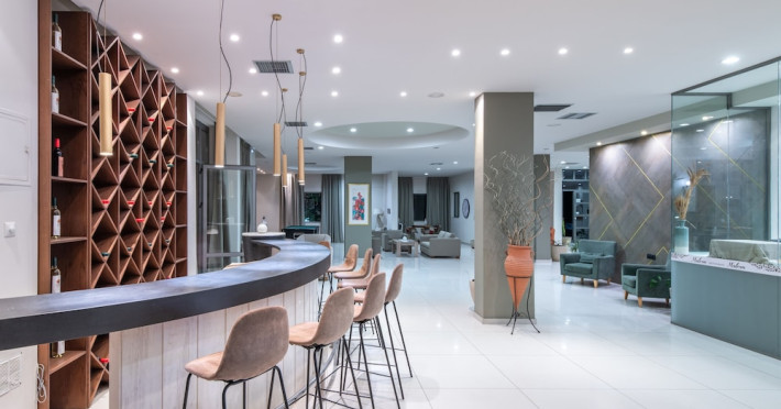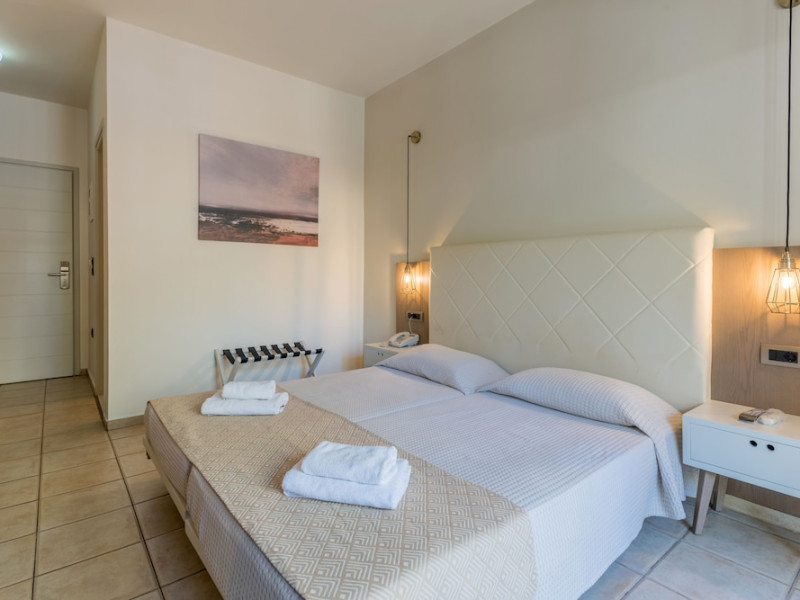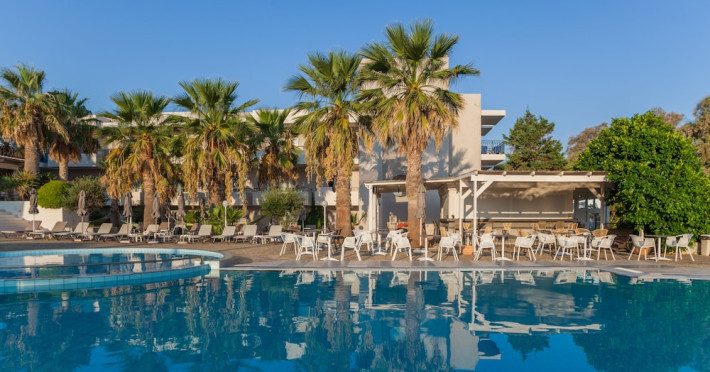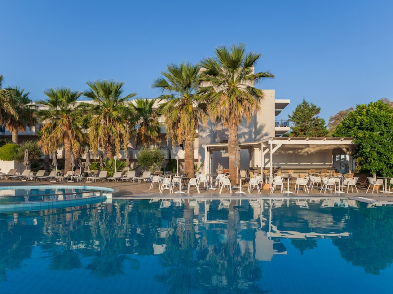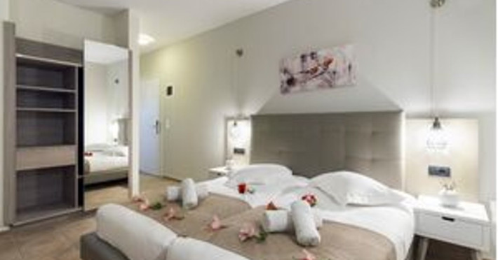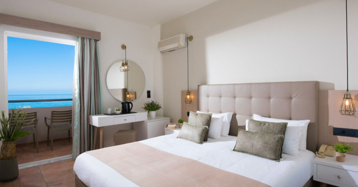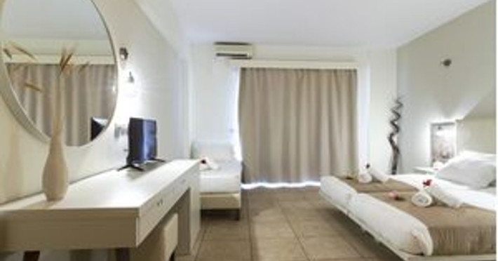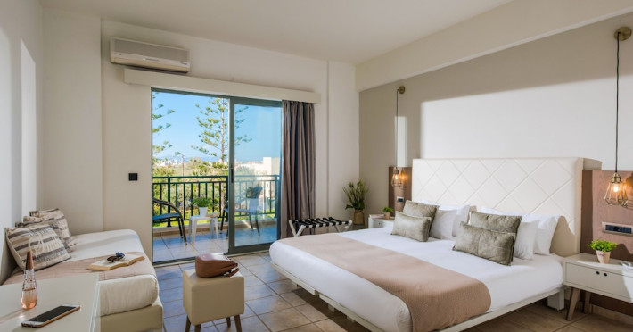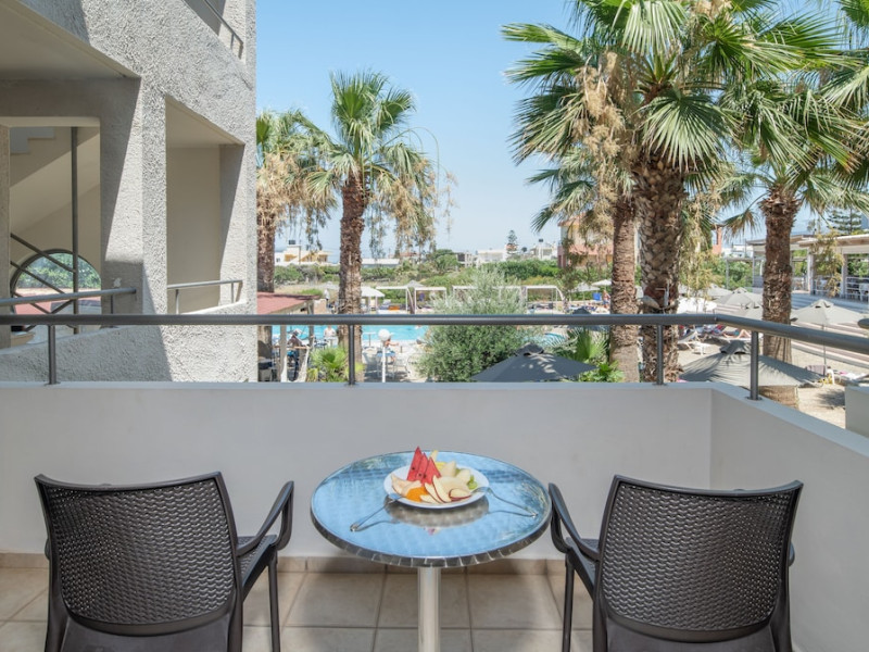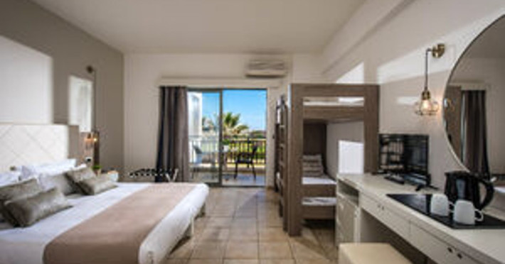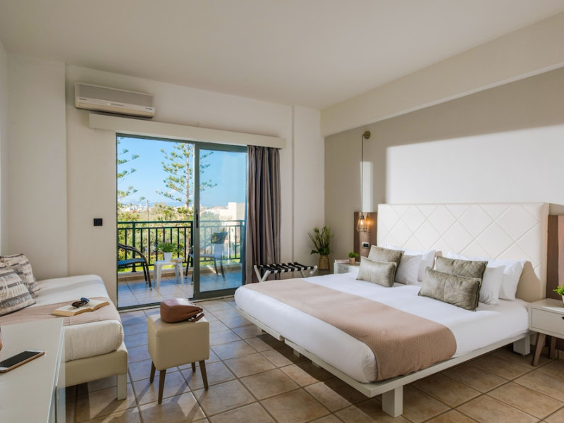 Facilities and services include 24-hour reception, lobby, luggage transfer, luggage room, Wi-Fi in public areas (free), elevator, mini market, souvenir shop, swimming pool, pool/beach towels (free), sunbeds & umbrellas (free at the pool, with extra charge at the beach by an off-site third party), sun terrace, car & bike rental, courtesy room, private parking (free), business center, fax/photocopy service (extra charge), secretarial services, currency exchange, airport transfer service (extra charge), doctor on call (extra charge), first aid, restaurant, bar, safe (extra charge) and gym/fitness facilities.Room features include individual air-conditioning (free), direct-dial telephone (extra charge), electronic safety deposit box (extra charge per day), 21-inch plasma TV (satellite channels), radio, mini fridge, electric kettle, coffee & tea facilities, shower/WC, hairdryer, bathrobe, balcony, wake-up service, 12-hour room service (extra charge), maid service (daily), towel change (daily & on request), linen change (every 2 days), and laundry & ironing service (extra charge).In case of choosing the option of all inclusive:The All Inclusive-concept includes all meals (breakfast, lunch, dinner and snacks) and mealtime drinks such as soft drinks, beer, wine, water and alcoholic drinks, all of local brands. Drinks are served from morning until late evening (approx until 22.-24.00 hrs). Opening times vary between different hotels. In certain hotels the activities program is also included.Please note that some of the above facilities may be closed due to weather / seasonal conditions.Address: Agiou Konstantinou, Crete Island, 70014 Gouves, Greece.