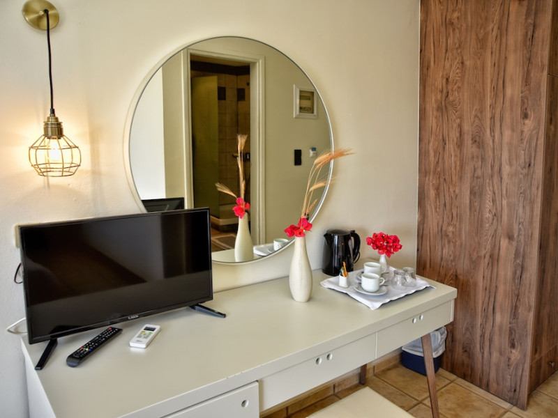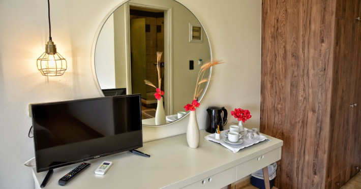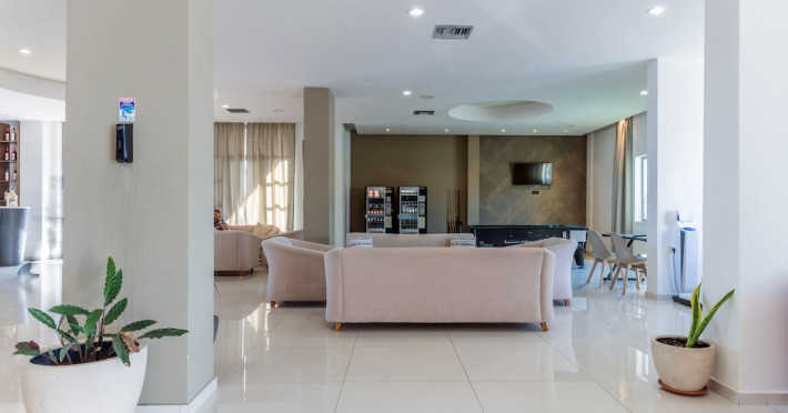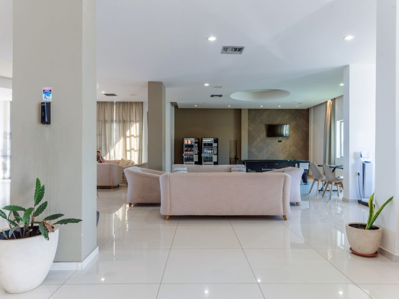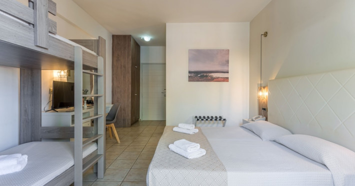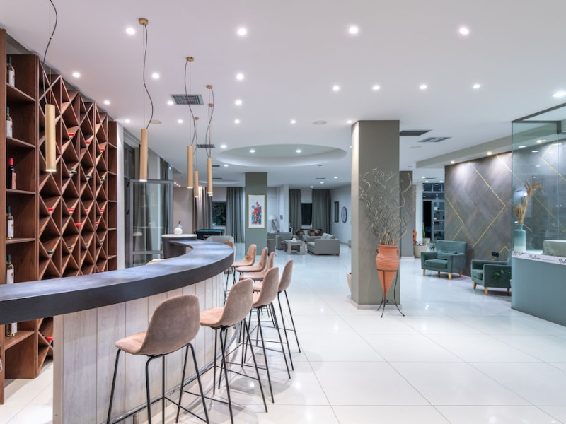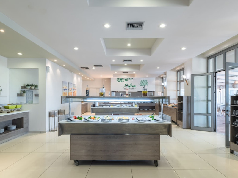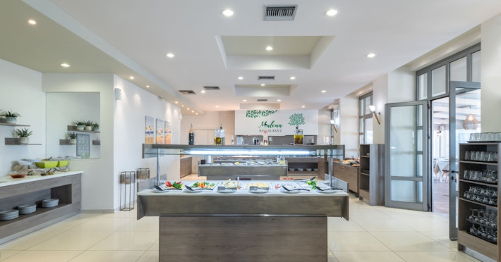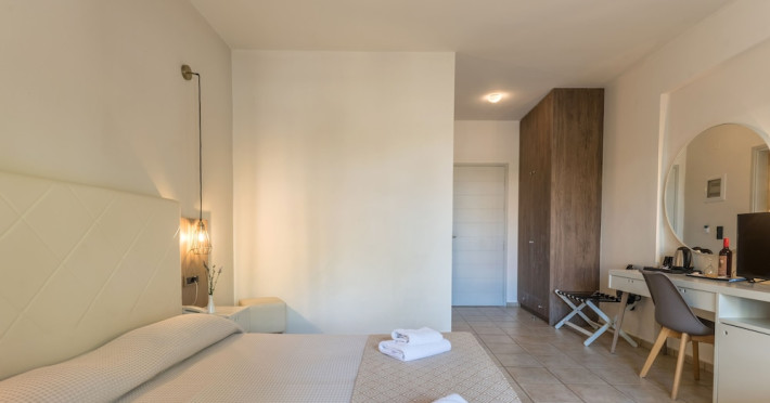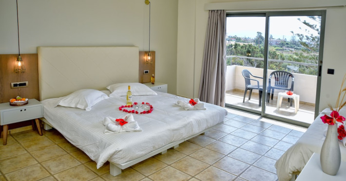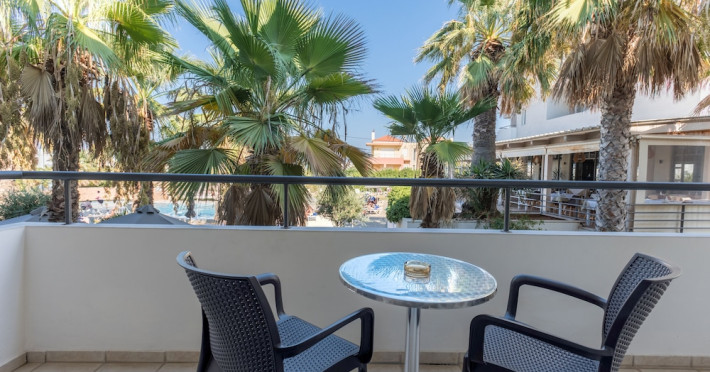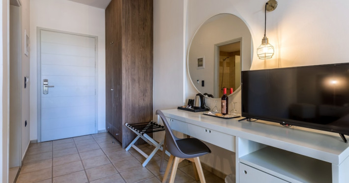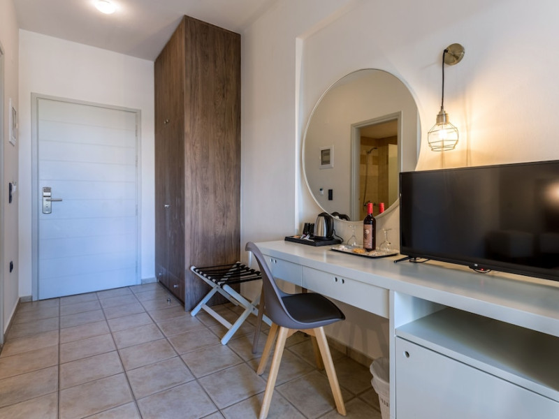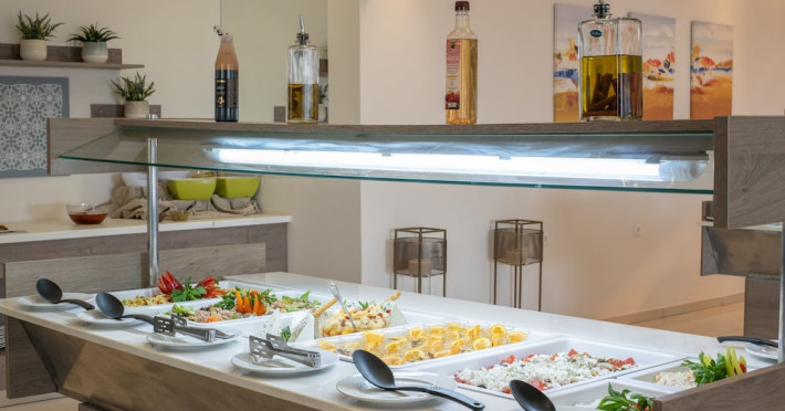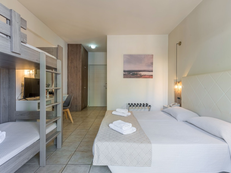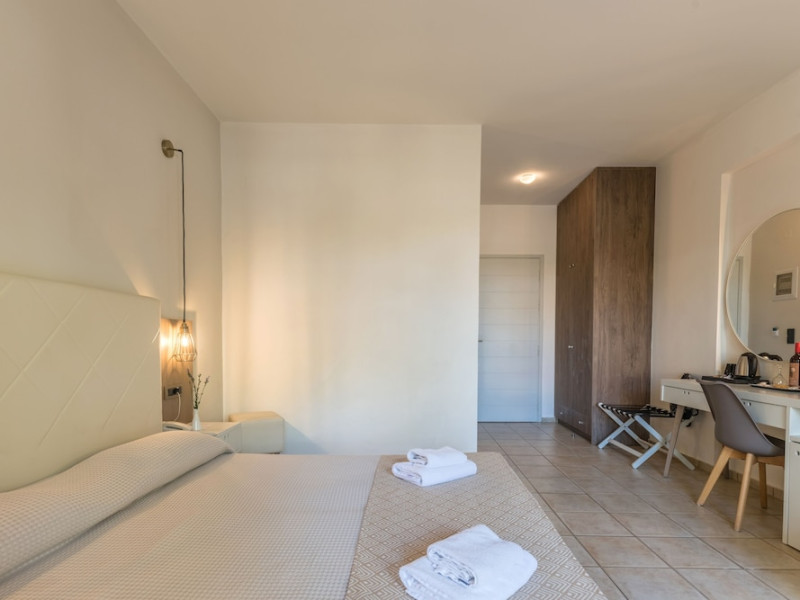 Facilities and services include 24-hour reception, lobby, luggage transfer, luggage room, Wi-Fi in public areas (free), elevator, mini market, souvenir shop, swimming pool, pool/beach towels (free), sunbeds & umbrellas (free at the pool, with extra charge at the beach by an off-site third party), sun terrace, car & bike rental, courtesy room, private parking (free), business center, fax/photocopy service (extra charge), secretarial services, currency exchange, airport transfer service (extra charge), doctor on call (extra charge), first aid, restaurant, bar, safe (extra charge) and gym/fitness facilities.Room features include individual air-conditioning (free), direct-dial telephone (extra charge), electronic safety deposit box (extra charge per day), 21-inch plasma TV (satellite channels), radio, mini fridge, electric kettle, coffee & tea facilities, shower/WC, hairdryer, bathrobe, balcony, wake-up service, 12-hour room service (extra charge), maid service (daily), towel change (daily & on request), linen change (every 2 days), and laundry & ironing service (extra charge).In case of choosing the option of all inclusive:The All Inclusive-concept includes all meals (breakfast, lunch, dinner and snacks) and mealtime drinks such as soft drinks, beer, wine, water and alcoholic drinks, all of local brands. Drinks are served from morning until late evening (approx until 22.-24.00 hrs). Opening times vary between different hotels. In certain hotels the activities program is also included.Please note that some of the above facilities may be closed due to weather / seasonal conditions.Address: Agiou Konstantinou, Crete Island, 70014 Gouves, Greece.