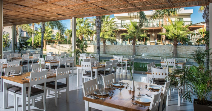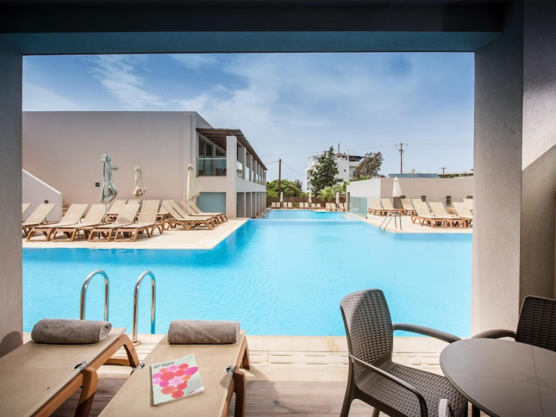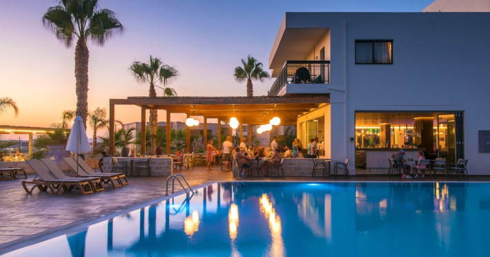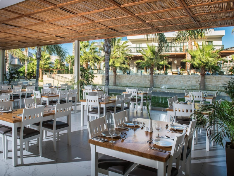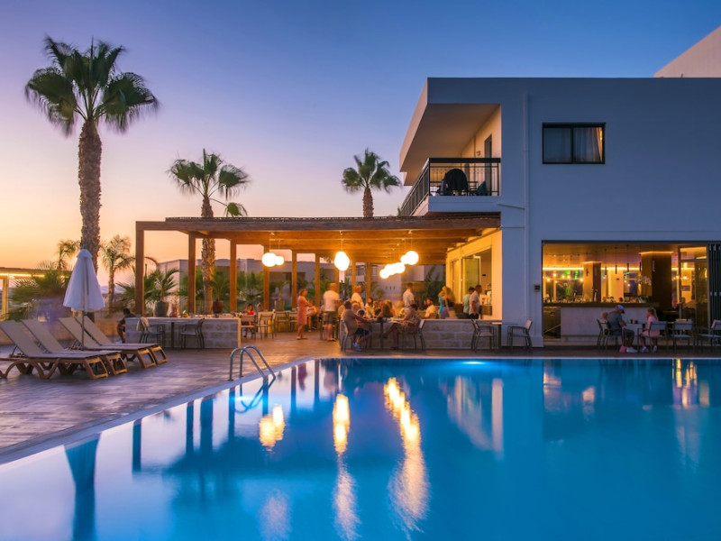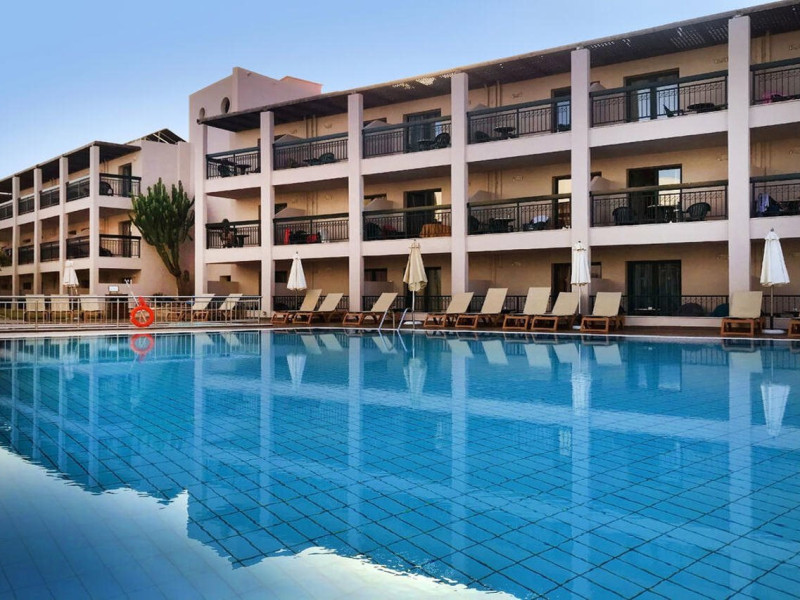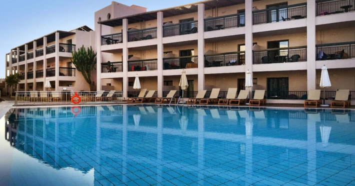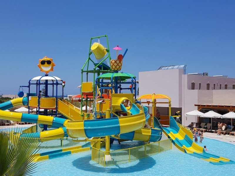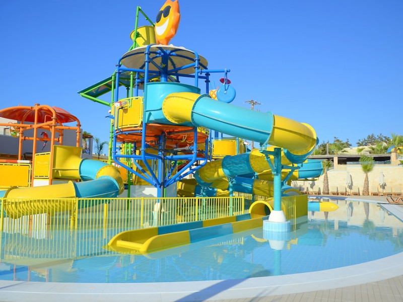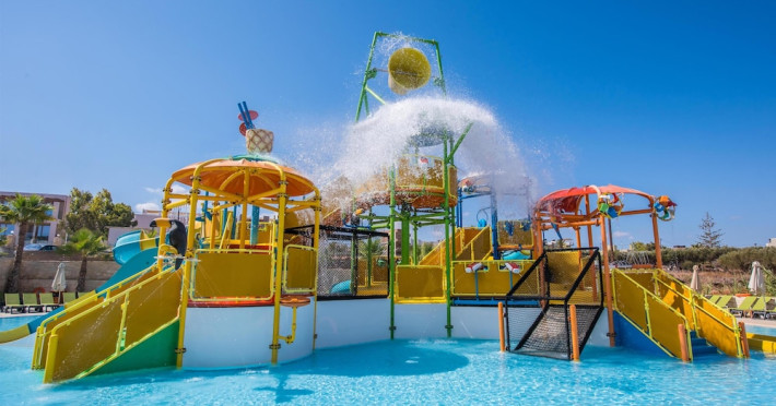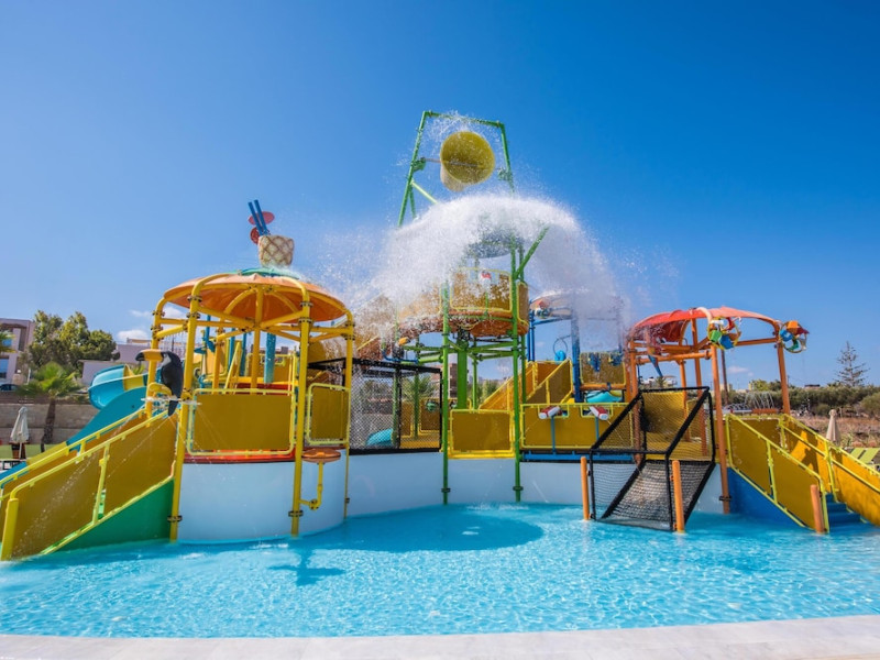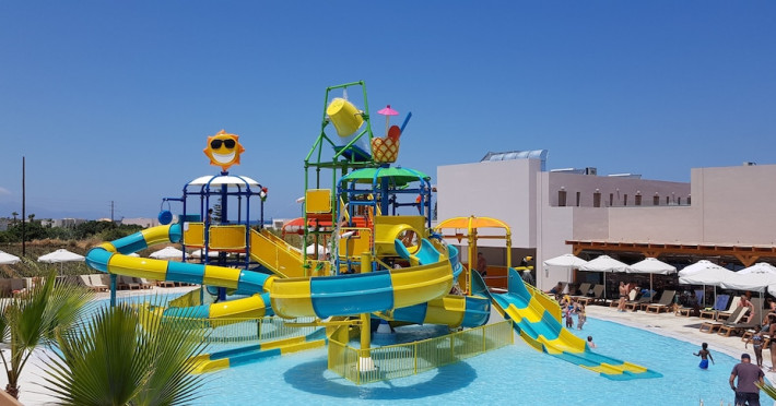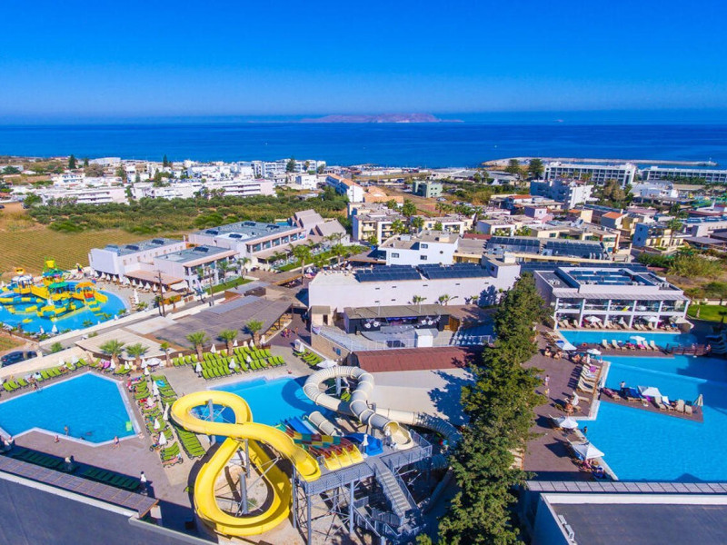 Facilities and services include 24-hour reception, luggage room, elevator (in 5 of the 30 buildings), lobby, Wi-Fi in all areas (free), mini market (07:00-23:00), 5 outdoor, swimming pools (10:00-18:00), waterpark with 6 waterslides (min. height 1.20m & min. age 6 years, daily from 11:00-18:00), pool/beachtowels (free), sunbeds & umbrellas (free at the pool, with extra charge at the beach), outdoor shower, pool lifeguard, amphitheater, parking, conference room, courtesy room, banqueting facilities, outdoor parking, doctor on call (extra charge), restaurants and bars. Room features individual air-conditioning/heating (free), direct-dial telephone, safety deposit box (free), satellite TV, Wi-Fi (free), mini fridge, mini bar (refilled every 2nd day with soft drinks), coffee & tea facilities, shower/WC, hairdryer, balcony/terrace, maid service (daily), towel change (3 times per week), linen change (3 times per week), laundry service (extra charge).*Wellness(extra charge): Spa center (10:00-18:00) with massages, beauty & facial treatments, manicure & pedicure, mud wraps, anti-ageing treatments, sauna, steam bath, jacuzzi & soap therapy.*Upon check-in guests are kindly requested to provide the credit card with which they made the reservation.*The operation of certain services & facilities is subject to weather conditions & occupancyPremium All Inclusive:Operation hours from 07:30-23:00Breakfast is American buffet at Dionyssos main restaurant (07:30-10:30)Late continental breakfast at Dionyssos main restaurant (10:30-11:00)Drinks at the designated bars (10:00-22:45) include a selection of international branded soft drinks, coffee, (filter coffee, espresso, cappuccino), tea, local draught beer, house wine (red, white & rose), spirits (raki, brandy, ouzo, rum, gin, tequila, whiskey, vodka), long drinks & selected cocktails. All orders after 23:00 & all premium branded spirits are with extra chargeGyros station, burgers & fresh pizza from the oven at Il Camino Pizza station (12:00-18:00)Lunch is full buffet at Dionyssos main restaurant (12:30-14:30)Dinner is buffet with show cooking at Dionyssos main restaurant (18:30-21:30)One (1) complimentary a la carte dinner valid once per stay at Umami Asian restaurant & Greek restaurant (18:30-22:30, advance reservation required, includes bottled mineral water, all drinks are with extra charge) Vegetarian & special diet options on requestWeekly theme nights at Dionysos main restaurantSmart casual dress code is required for dinner at the restaurantsAddress: Address: Gouves Hersonissos, Crete - Greece 70014.