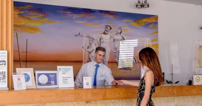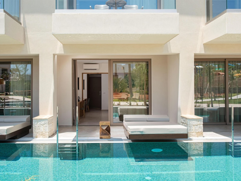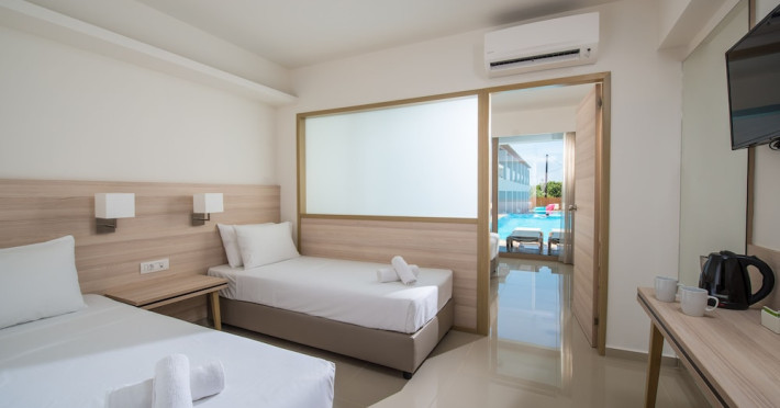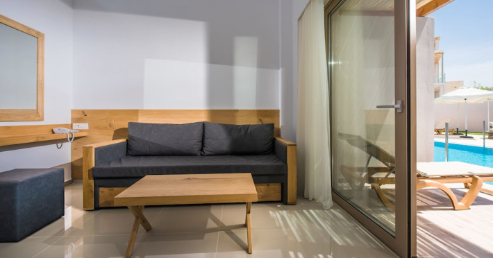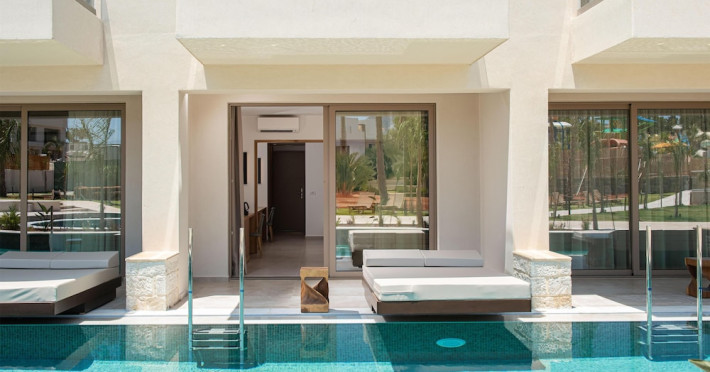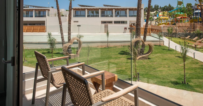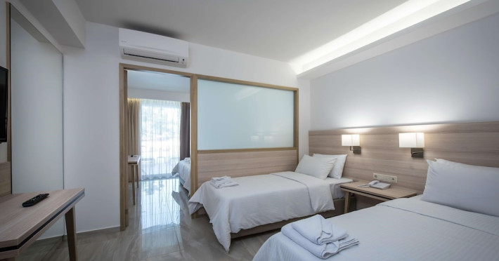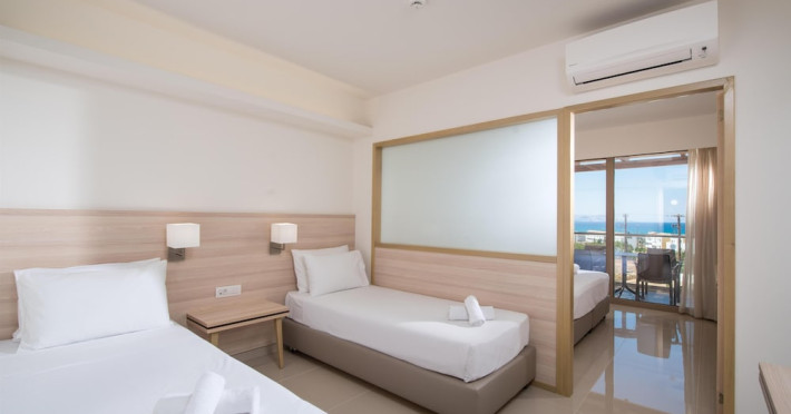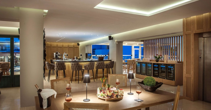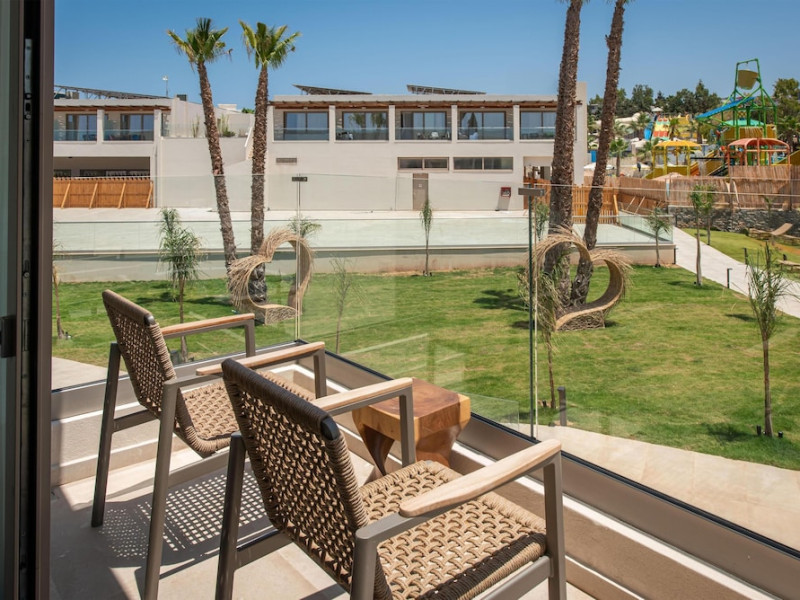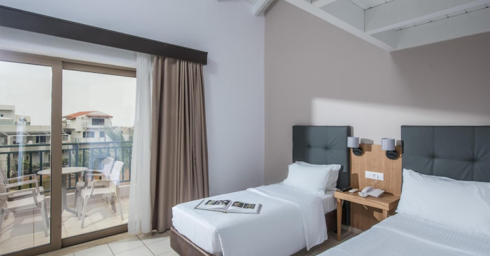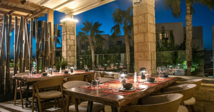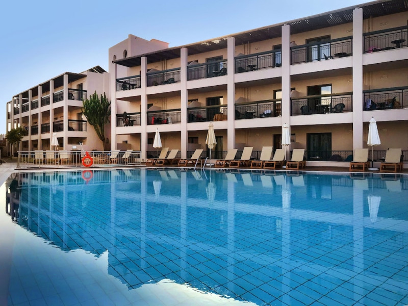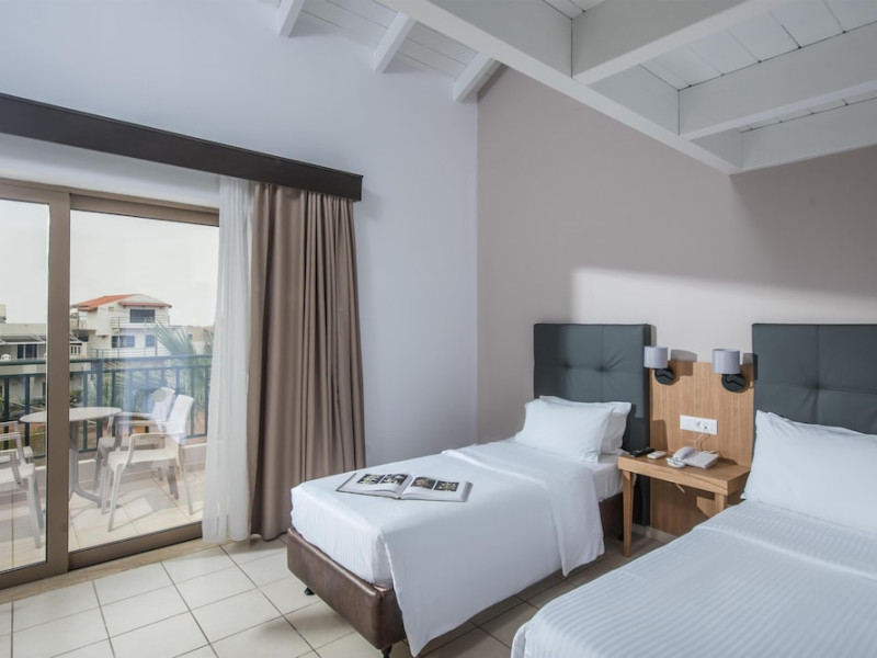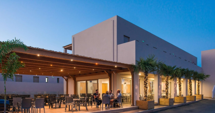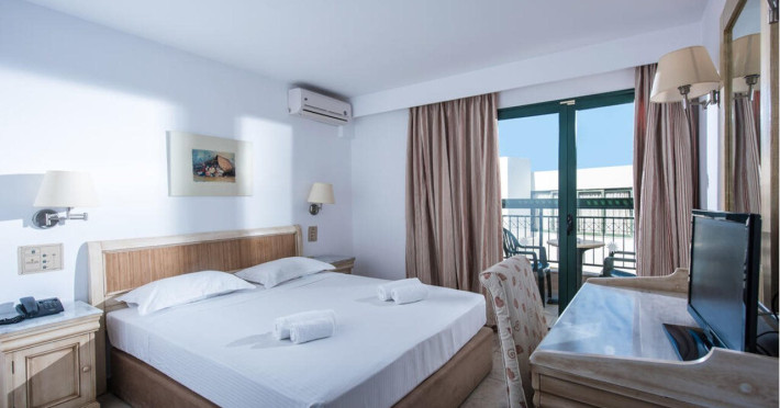 Facilities and services include 24-hour reception, luggage room, elevator (in 5 of the 30 buildings), lobby, Wi-Fi in all areas (free), mini market (07:00-23:00), 5 outdoor, swimming pools (10:00-18:00), waterpark with 6 waterslides (min. height 1.20m & min. age 6 years, daily from 11:00-18:00), pool/beachtowels (free), sunbeds & umbrellas (free at the pool, with extra charge at the beach), outdoor shower, pool lifeguard, amphitheater, parking, conference room, courtesy room, banqueting facilities, outdoor parking, doctor on call (extra charge), restaurants and bars. Room features individual air-conditioning/heating (free), direct-dial telephone, safety deposit box (free), satellite TV, Wi-Fi (free), mini fridge, mini bar (refilled every 2nd day with soft drinks), coffee & tea facilities, shower/WC, hairdryer, balcony/terrace, maid service (daily), towel change (3 times per week), linen change (3 times per week), laundry service (extra charge).*Wellness(extra charge): Spa center (10:00-18:00) with massages, beauty & facial treatments, manicure & pedicure, mud wraps, anti-ageing treatments, sauna, steam bath, jacuzzi & soap therapy.*Upon check-in guests are kindly requested to provide the credit card with which they made the reservation.*The operation of certain services & facilities is subject to weather conditions & occupancyPremium All Inclusive:Operation hours from 07:30-23:00Breakfast is American buffet at Dionyssos main restaurant (07:30-10:30)Late continental breakfast at Dionyssos main restaurant (10:30-11:00)Drinks at the designated bars (10:00-22:45) include a selection of international branded soft drinks, coffee, (filter coffee, espresso, cappuccino), tea, local draught beer, house wine (red, white & rose), spirits (raki, brandy, ouzo, rum, gin, tequila, whiskey, vodka), long drinks & selected cocktails. All orders after 23:00 & all premium branded spirits are with extra chargeGyros station, burgers & fresh pizza from the oven at Il Camino Pizza station (12:00-18:00)Lunch is full buffet at Dionyssos main restaurant (12:30-14:30)Dinner is buffet with show cooking at Dionyssos main restaurant (18:30-21:30)One (1) complimentary a la carte dinner valid once per stay at Umami Asian restaurant & Greek restaurant (18:30-22:30, advance reservation required, includes bottled mineral water, all drinks are with extra charge) Vegetarian & special diet options on requestWeekly theme nights at Dionysos main restaurantSmart casual dress code is required for dinner at the restaurantsAddress: Address: Gouves Hersonissos, Crete - Greece 70014.