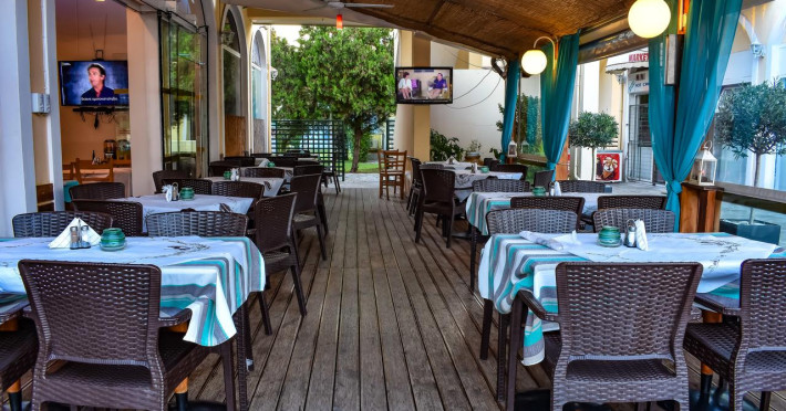 the village of Gouvia with various means of entertainment as taverns,