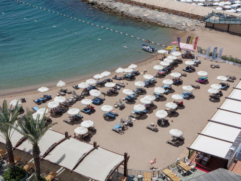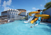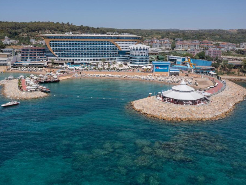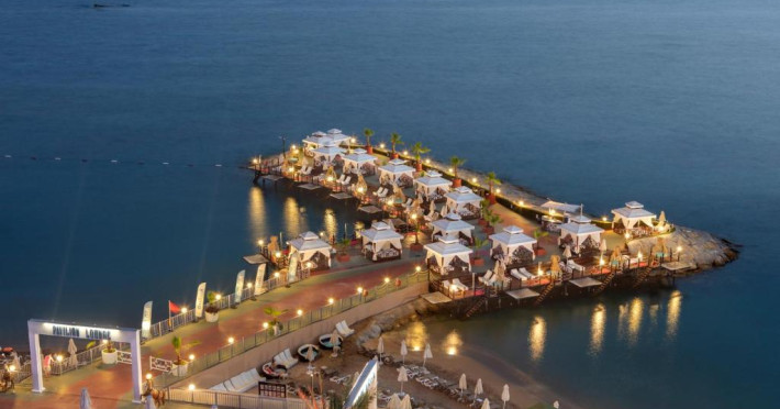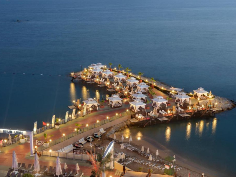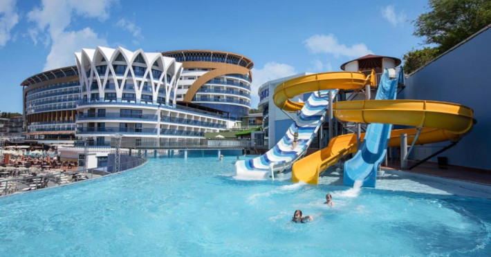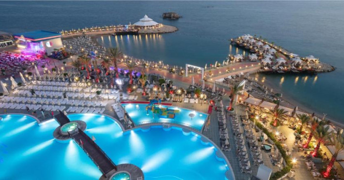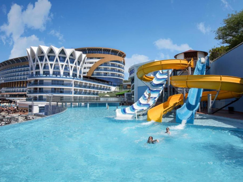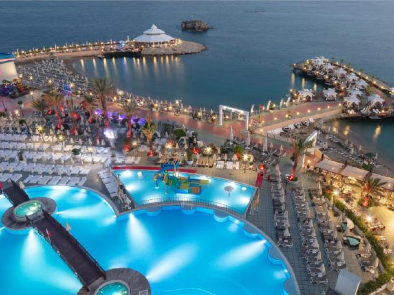 Restaurant principal, meniu dietetic, meniu vegetarian, 8 restaurante A la Carte( italian, chinezesc, turcesc, pescaresc, rusesc, libanez, sushi), 3 piscine exterioare cat si o piscina interioara, 3 tobogane acvatice, centru SPA, centru thalasso, baie turceasca, sauna, baie cu aburi, sala de fitness, aerobic, aqua aerobic, 2 terenuri de tenis cu suprafata dura, tenis de masa, darts, program de animatie, muzica live, discoteca, masaj, biliard, bowling, sporturi nautice. Plaja proprie cu nisip.pietris, ponton, platforma. Pentru copii: piscina, loc de joaca, mini club.
