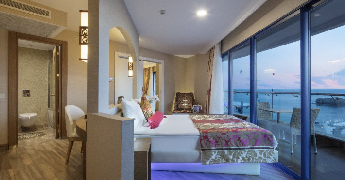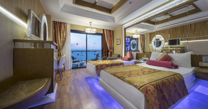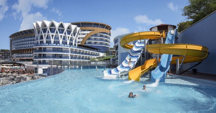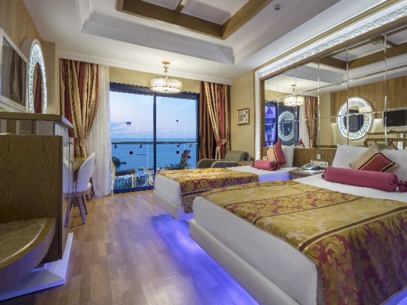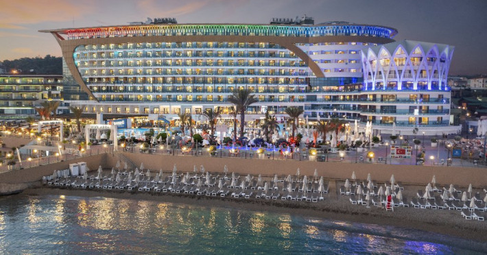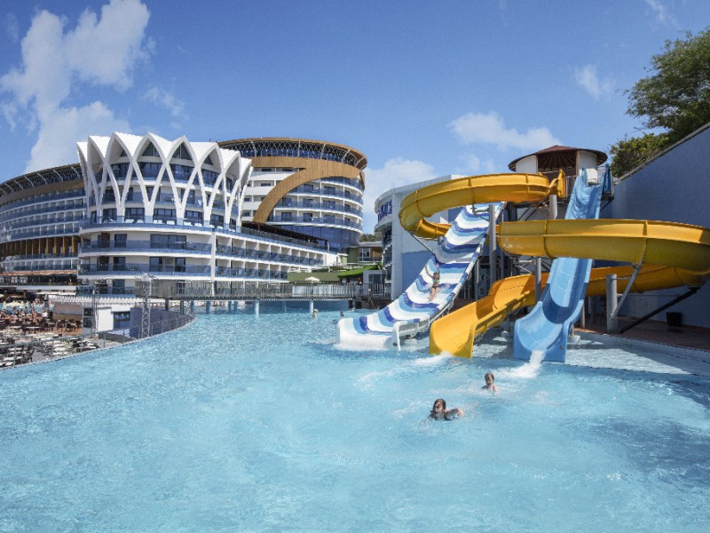 Facilitati hotel: Hotelul ofera oaspetilor sai urmatoarele facilitati: restaurant principal, 6 restaurante a la carte, patiserie, baruri, discoteca, piscina principala, piscina pentru copii, aquapark, piscina interioara, sauna, baie turceasca, centru SPA, centru fitness, darts, tenis de masa, teren de tenis, programe de animatie, muzica live, seara turceasca, cinema, internet wi-fi, mini club 4-12 ani, mini disco, mini cinema. Servicii cu plata: restaurantele a la carte, bauturi premium, bauturi imbuteliate, vitamin bar, fresh-uri din fructe, internet cafe, sala de jocuri, masaj, spa si welness, servicii medicale, nocturna pentru terenul de tenis, sporturi acvatice, room service.