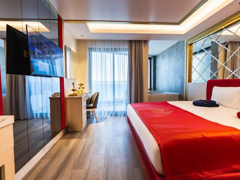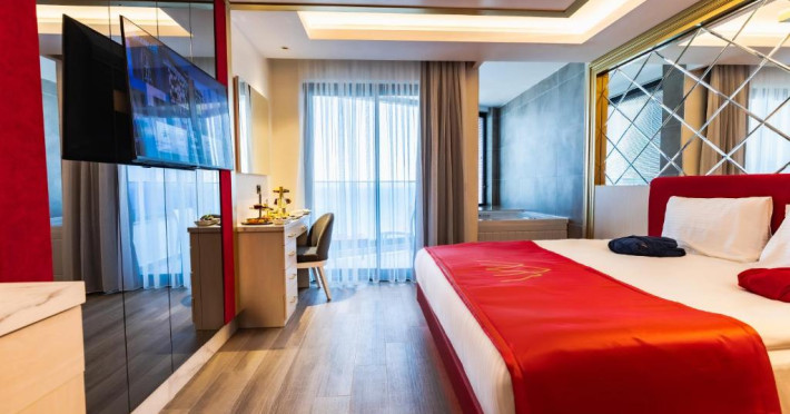 Granada Luxury Red Adult Only se află în Alanya, la 5 minute de mers pe jos de Plaja publică Avsallah, și pune la dispoziție o grădină, o terasă, un bar și parcare privată gratuită. Printre facilitățile disponibile la această proprietate se numără un restaurant, room-service și o recepție deschisă nonstop, precum și WiFi gratuit în întreaga proprietate. Anumite camere de la proprietate includ un balcon cu o vedere la mare.