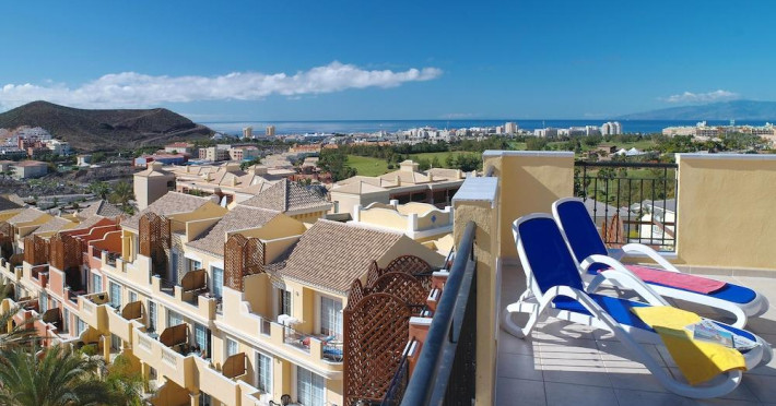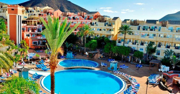 This charming apartment complex is located in Playa de las Americas beach, on the south coast of Tenerife. Located next to a golf course and just 15 minutes from the popular Los Cristianos town, in the municipality of Arona, this resort is the best place to enjoy a truly unforgettable stay in this beautiful region. Surrounded by tropical gardens, the fully-equipped apartments offer all the necessary services and amenities to guarantee a relaxing stay. They all feature a functional décor and come with 1 or 2 bedrooms, terrace, as well as a sitting area. Some accommodation units boast a private solarium, ideal to sunbathe, relax or enjoy a refreshing drink. Visitors staying at this charming resort may take advantage of the two sparkling swimming-pools, ideal to take a refreshing dip in the warmest summer days.For kids, there is a mini golf and a recreational area next to the swimming pool. Breakfast and dinner are served in the buffet restaurant Arona. Also, there is a central solarium with its 3 swimming pools which are idea to spend the day sunbathing and to enjoy a snack and drink in the pool side bar. The breakfast and the dinner are served in the buffet restaurant Arona