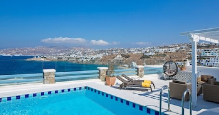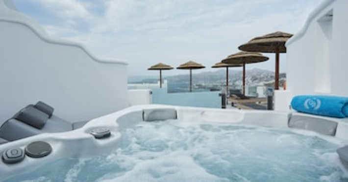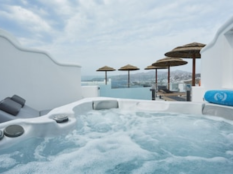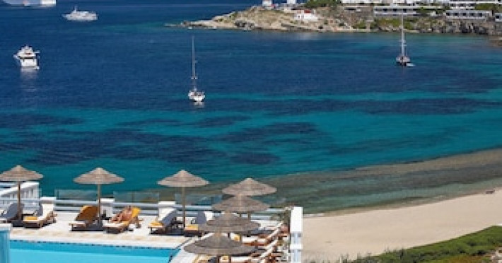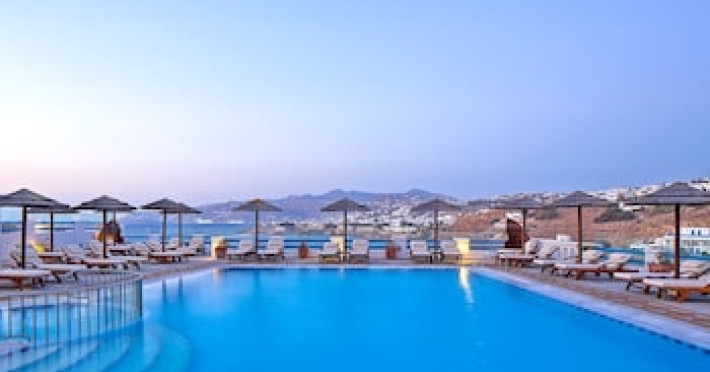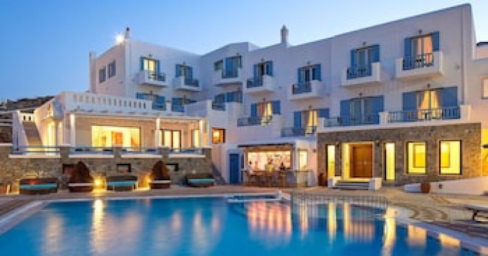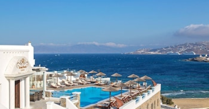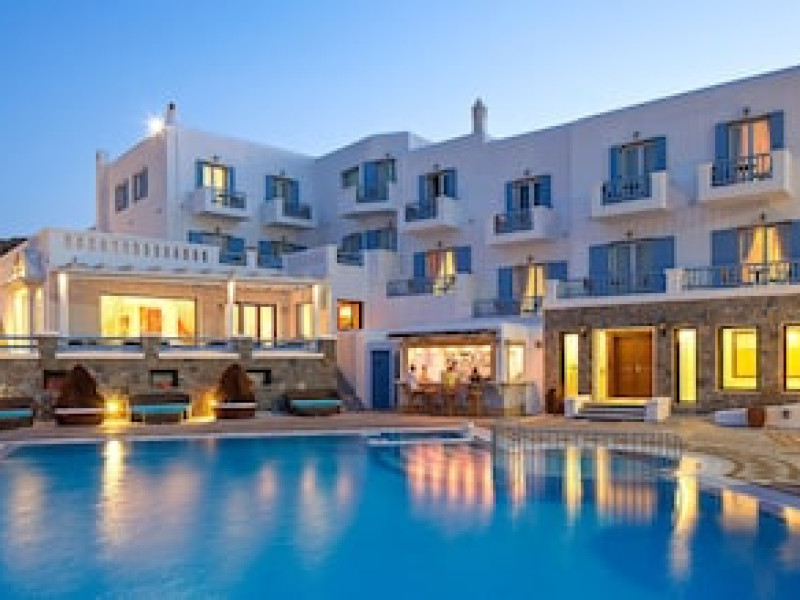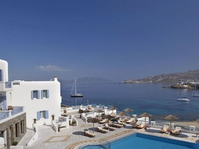 Property Location When you stay at Grand Beach Mykonos in Mykonos, you'll be on the waterfront, within a 5-minute drive of Windmills of Mykonos and Ornos Beach. This hotel is 3.6 mi (5.7 km) from Paradise Beach and 4.2 mi (6.7 km) from Mykonos New Port.