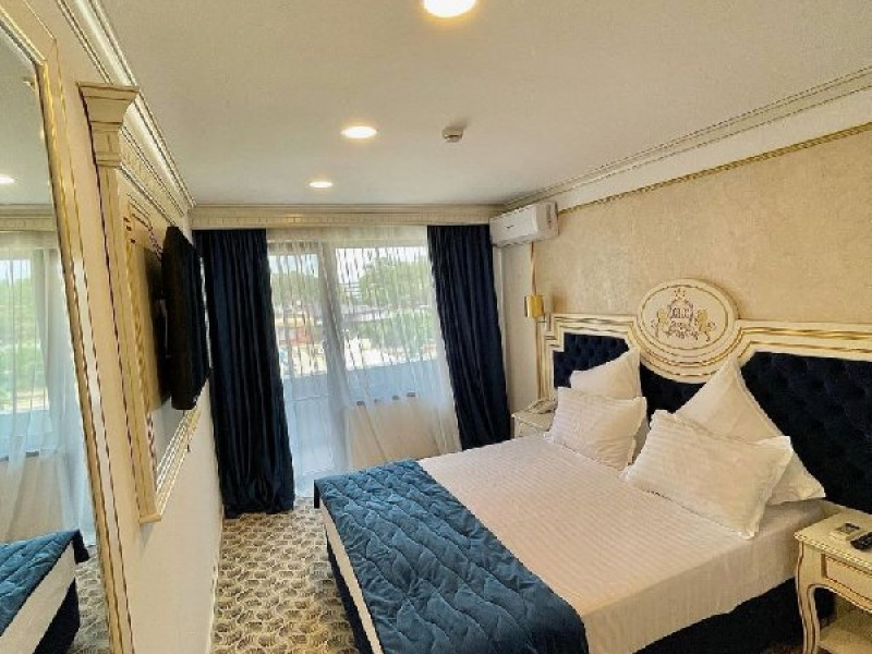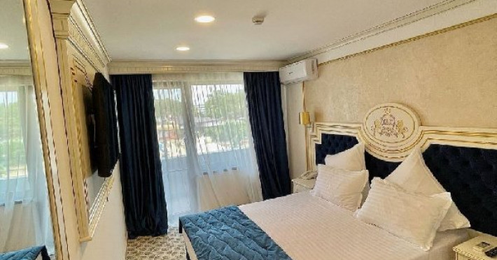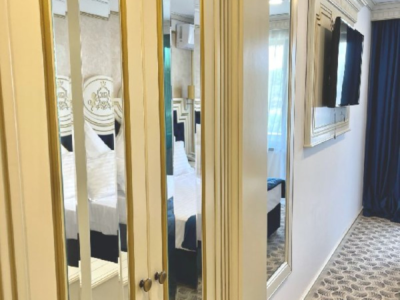 Dotari camere Facilitatile tuturor spatiilor de cazare: Conexiune de internet WI-FI; Control independent aer conditionat; Televiziune digitala; Internet Wireless; Minibar; Paturi spatioase, cu saltele confortabile; Acces in camera cu card margnetic. Fiecare camera are baie cu cabina de dus si toate dotarile necesare: cosmetice, feon, prosoape, halat, papuci de unica folosinta.