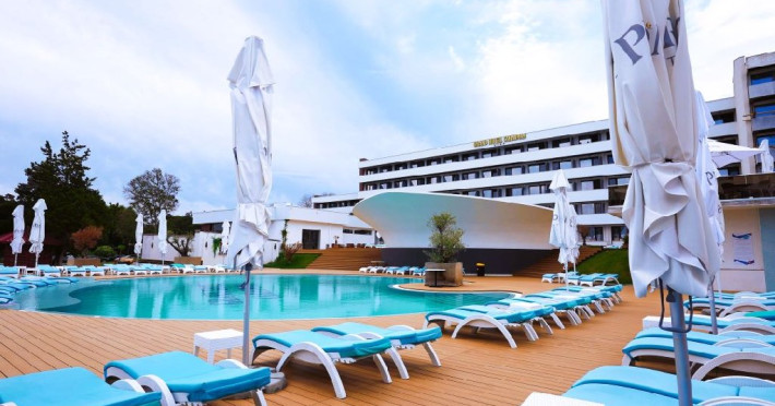 - Piscina adulti (suprafata 320mp si adancime 1.5 m). Decorata intr-un stil exotic, intr-un cadru ce domina splendida priveliste a Neptunului, este la dispozitia clientilor, odata ce razele soarelui incep sa straluceasca.