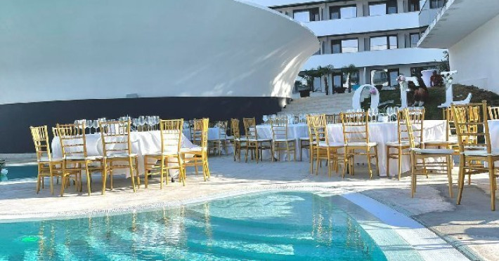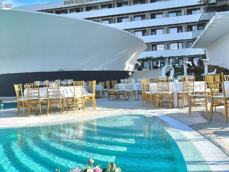 PISCINA TERASA Cei cu adevarat pasionati de apa, dornici sa se bucure de placerea inotului, si nu numai, se pot relaxa la zona de piscine in aer liber a hotelului. Pentru oaspetii cazati la Grand Hotel Caraiman, accesul la piscina este gratuit, intre orele de functionare a acesteia 8am-8pm Piscina adulti (suprafata 320mp si adancime 1.5 m). Decorata intr-un stil exotic, intr-un cadru ce domina splendida priveliste a Neptunului, este la dispozitia clientilor, odata ce razele soarelui incep sa straluceasca. Piscina copii (suprafata 140 mp si adancime de 0.75m). Are un design futurist si pune la dispozitia celor mici jucarii gonflabile de apa, in limita disponibilitatii. Prin amplasare si amenajare, piscina exterioara ofera cea mai facila si relaxanta experienta cu efecte benefice asupra corpului. Pe cele doua terase exterioare sunt disponibile sezlonguri confortabile si prosoape de piscina, masute si umbrele, in limita disponibilitatii.