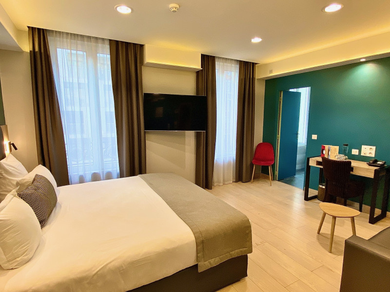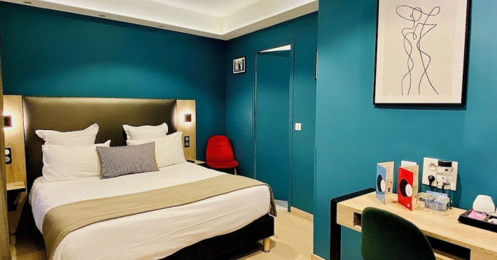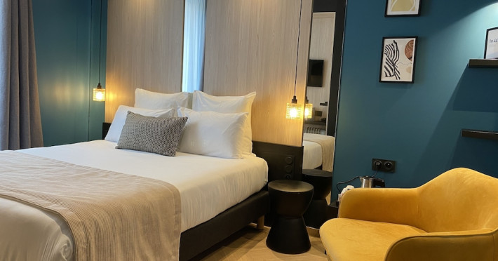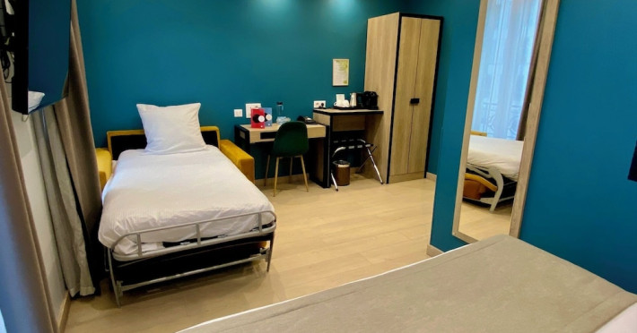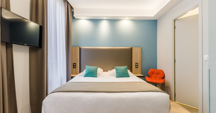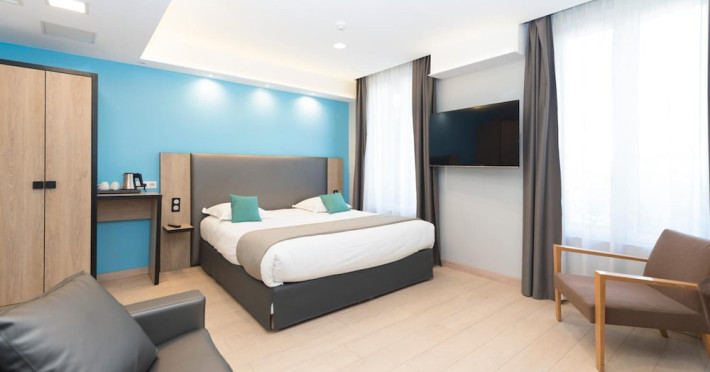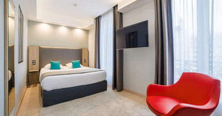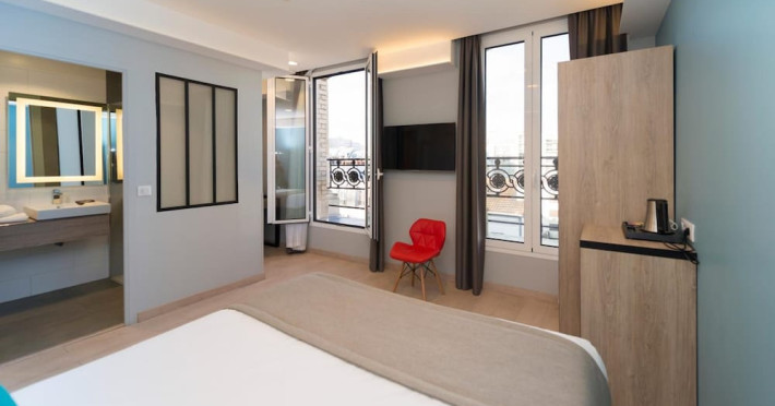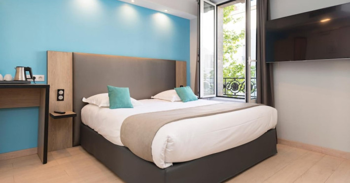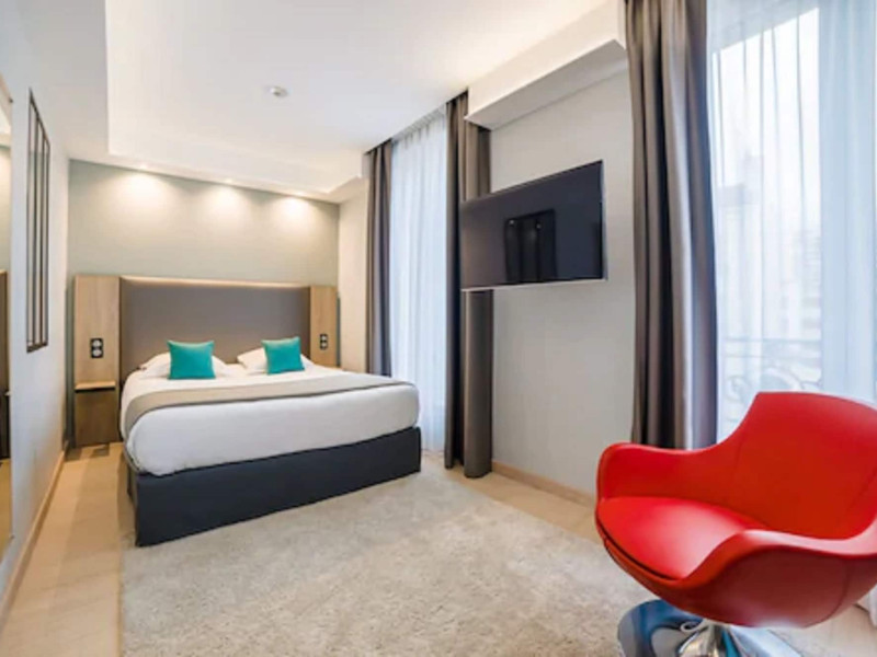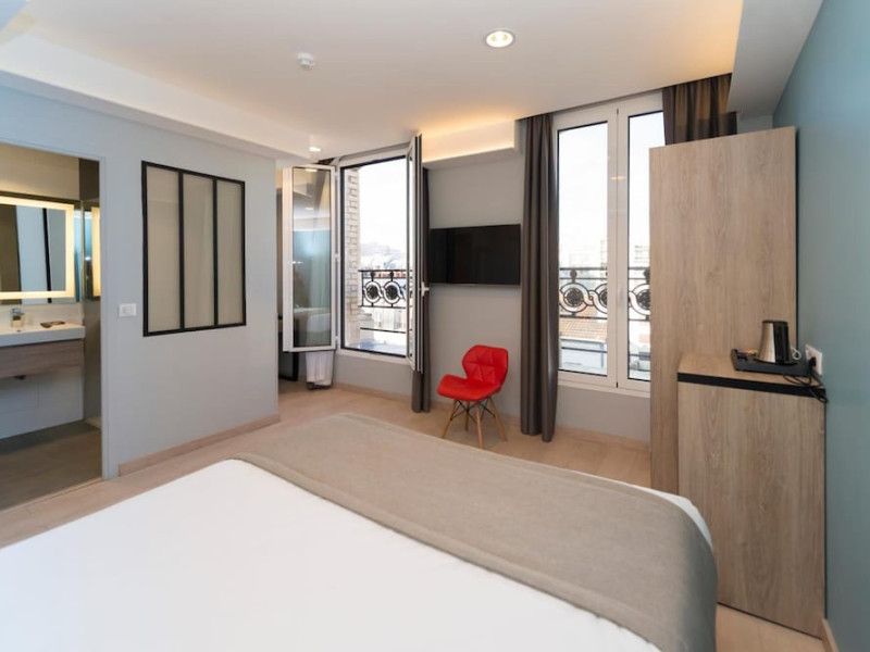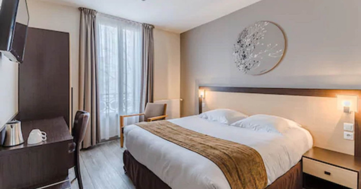 Located in Clichy, near Montmartre and with access to Paris's attractions via public transport, the Grand Hotel Clichy offers complimentary wireless internet access throughout the property. The hotel features soundproofed rooms equipped with air conditioning, a safety deposit box, and a flat-screen TV. Bathrooms include showers, complimentary toiletries, and hair dryers. A continental or cooked-to-order breakfast is available for a fee. Guests can enjoy the bar/lounge, snack bar/deli, and room service (during limited hours). Amenities include a 24-hour front desk, concierge services, a vending machine, and complimentary newspapers in the lobby. Enhanced health and safety measures are in place, including stringent room disinfection protocols and readily available hand sanitizer. Self-parking is available for a surcharge. The hotel is a short walk from the Courthouse of Paris Batignolles. The GRAND HOTEL CLICHY is a hotel.