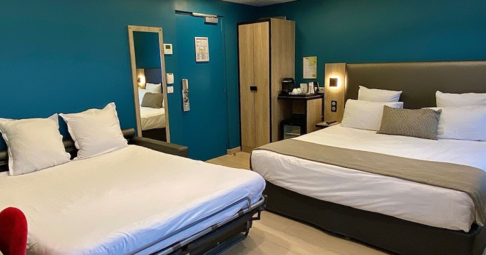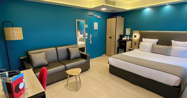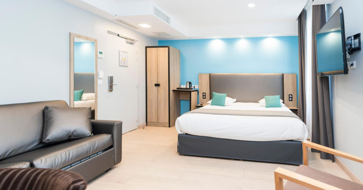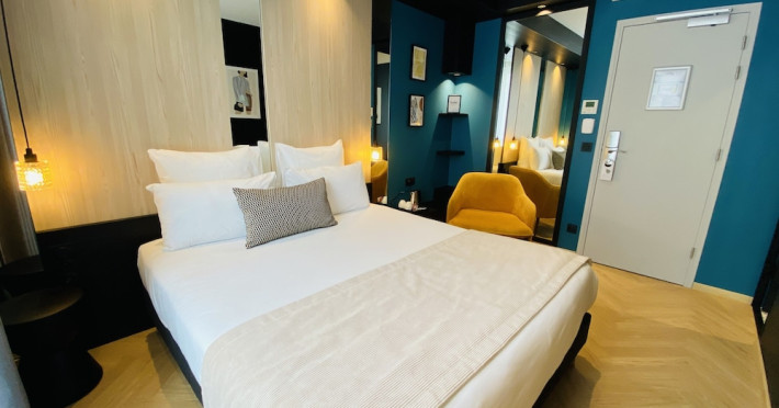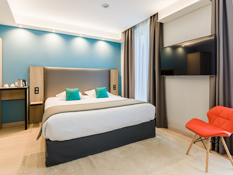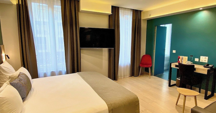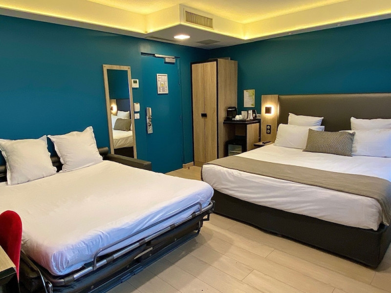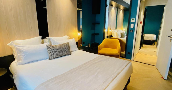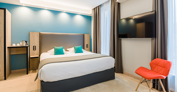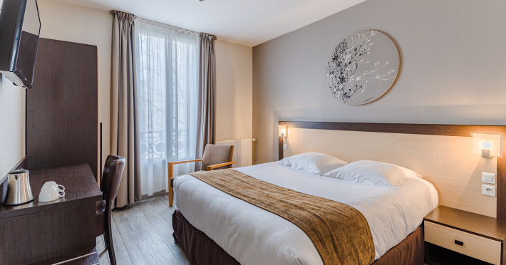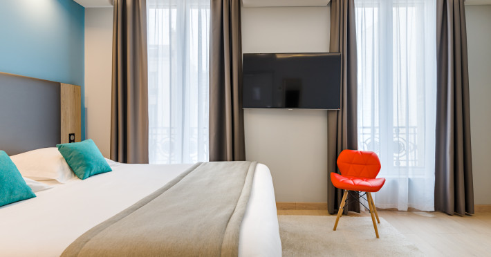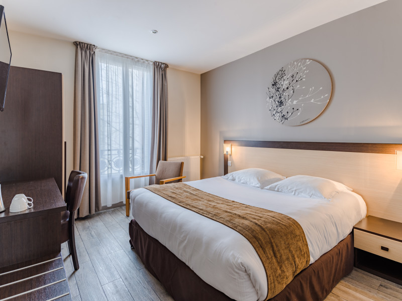 Located in Clichy, near Montmartre and with access to Paris's attractions via public transport, the Grand Hotel Clichy offers complimentary wireless internet access throughout the property. The hotel features soundproofed rooms equipped with air conditioning, a safety deposit box, and a flat-screen TV. Bathrooms include showers, complimentary toiletries, and hair dryers. A continental or cooked-to-order breakfast is available for a fee. Guests can enjoy the bar/lounge, snack bar/deli, and room service (during limited hours). Amenities include a 24-hour front desk, concierge services, a vending machine, and complimentary newspapers in the lobby. Enhanced health and safety measures are in place, including stringent room disinfection protocols and readily available hand sanitizer. Self-parking is available for a surcharge. The hotel is a short walk from the Courthouse of Paris Batignolles. The GRAND HOTEL CLICHY is a hotel.