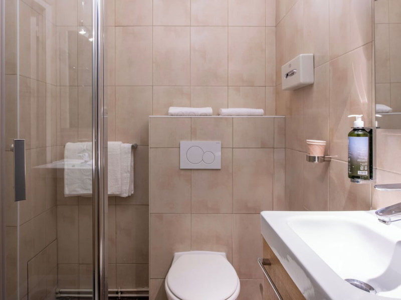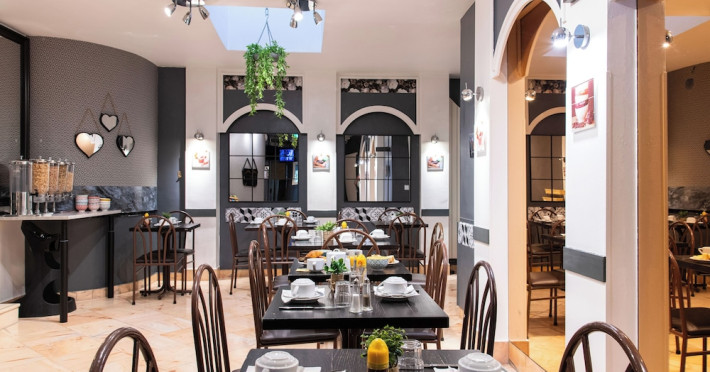 Located 100 meters from Gare de l'Est in Paris's 10th Arrondissement, the family-friendly Grand Hotel de Paris is housed in a classic six-story Parisian building with a white facade and wrought-iron balconies. It offers 49 individually decorated guestrooms, ranging in size from single to quadruple, each equipped with satellite TV, Wi-Fi, a phone, a safe, and a desk. Bathrooms include bathtubs or showers and hair dryers. Guests can enjoy convenient amenities such as a 24-hour front desk, multilingual staff, luggage storage, concierge service, and vending machines. A continental/buffet breakfast is available for a fee, and the hotel also features a coffee shop and on-site eateries. Additional services include daily housekeeping, ticket assistance, and tour bookings. The hotel has a lift. Some rooms feature balconies, blackout curtains and toiletries. Smoking is restricted to assigned zones. Safety deposit boxes and room service are available. The hotel does not have any PMR rooms. The Grand Hotel De Paris is a Tourist hotel. The nightlife/restaurants are located in the hotel.