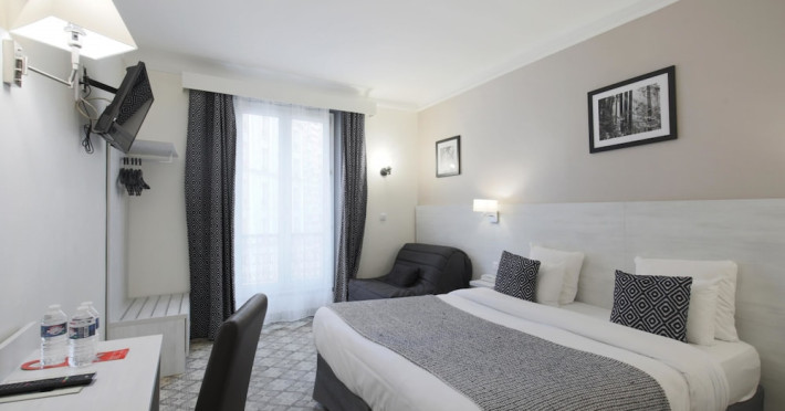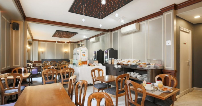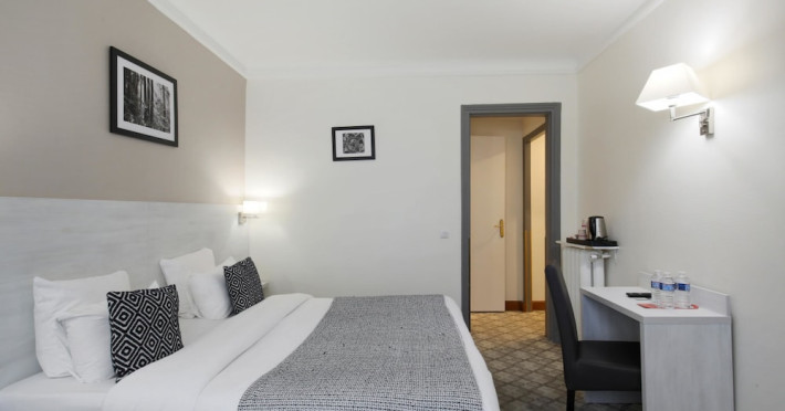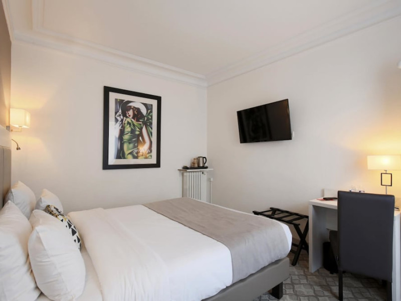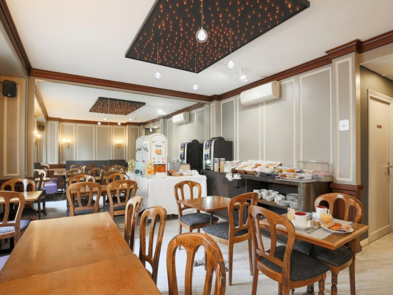 The Grand Hotel des Gobelins, a Beaux Arts hotel centrally located in Paris, offers 45 air-conditioned rooms with flat-screen televisions, satellite programming, complimentary wireless internet access, a safe, and a desk. Private bathrooms include showers, complimentary toiletries, and hair dryers. Housekeeping is provided daily. Guests can enjoy a drink at the bar/lounge and take advantage of room service during limited hours. A buffet breakfast is available daily from 7 AM to 10:30 AM for a fee. The hotel features concierge services, a television in a common area, a banquet hall, and a vending machine. For a surcharge, guests can use the area shuttle. Express check-in and check-out are available, and complimentary newspapers are offered in the lobby. The hotel is located near the Jardin des Plantes and Place d'Italie, with convenient access to public transportation. The GRAND HOTEL DES GOBELINS is a Tourist hotel. The nightlife/restaurants are easily accessible by taxi or bus from the hotel.