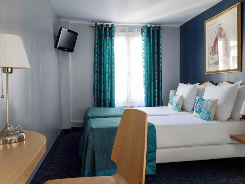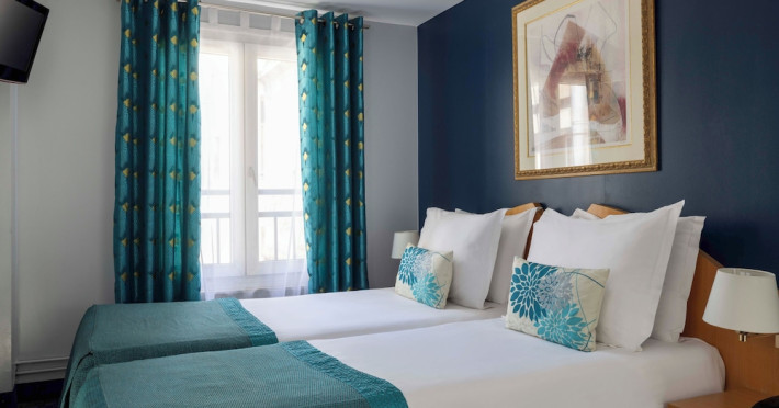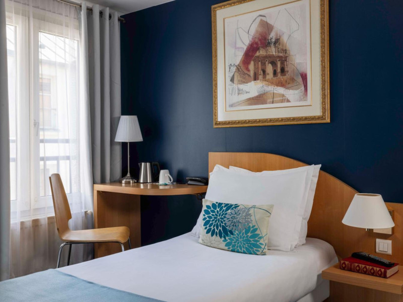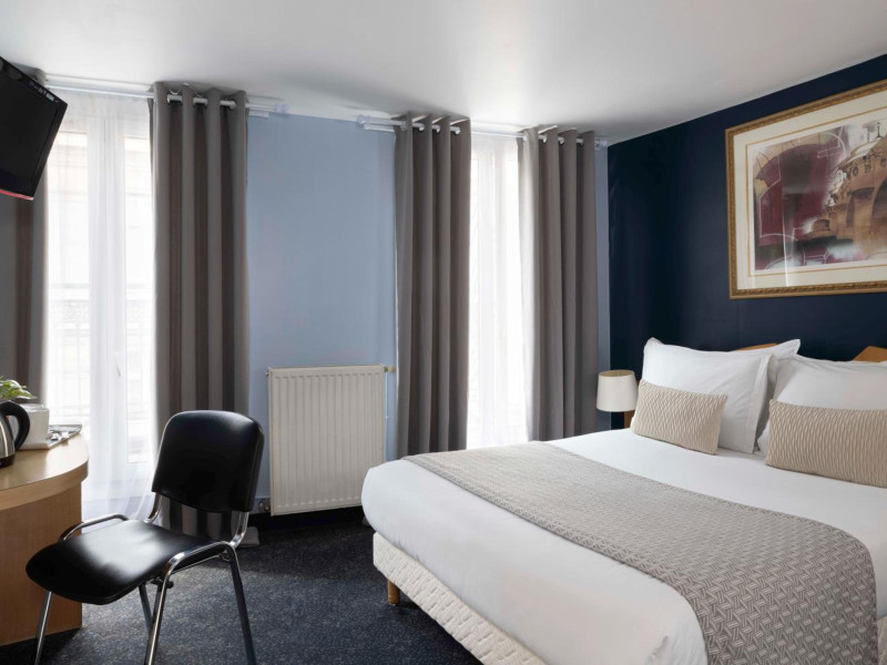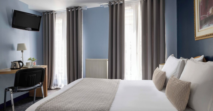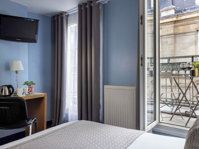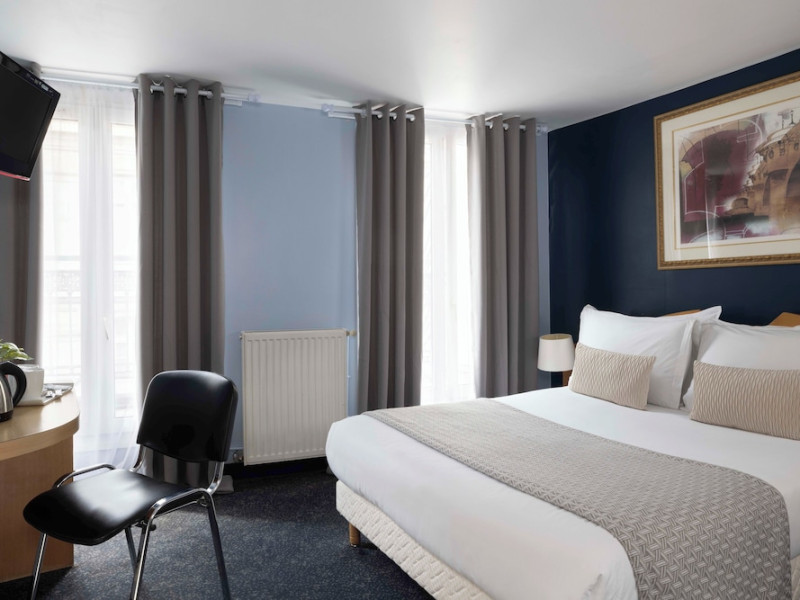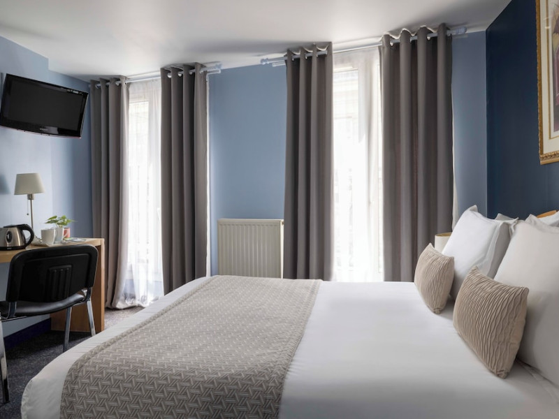 Located in the 9th arrondissement of Paris, near the Gare Saint-Lazare, Grand Hôtel du Calvados offers convenient access to public transport and is within walking distance of the Quartier de l'Europe, department stores like Printemps Haussmann and Galeries Lafayette, and cultural attractions such as the Palais Garnier. The hotel features complimentary wireless internet access, a 24-hour front desk, and luggage storage. Guests can enjoy a buffet breakfast daily (for a fee) in a Parisian vaulted room. The hotel also has a restaurant serving Italian cuisine. All rooms include a flat-screen television, phone, safe, desk, and a private bathroom with a bathtub or shower and hairdryer. Concierge services, ticket service, and tours are available. Smoking is prohibited throughout the property. Saint-Lazare Station is a one-minute walk away, and Liège Metro Station is 350 metres away, providing direct access to the Champs-Elysées. The Grand Hotel Du Calvados is a hotel.