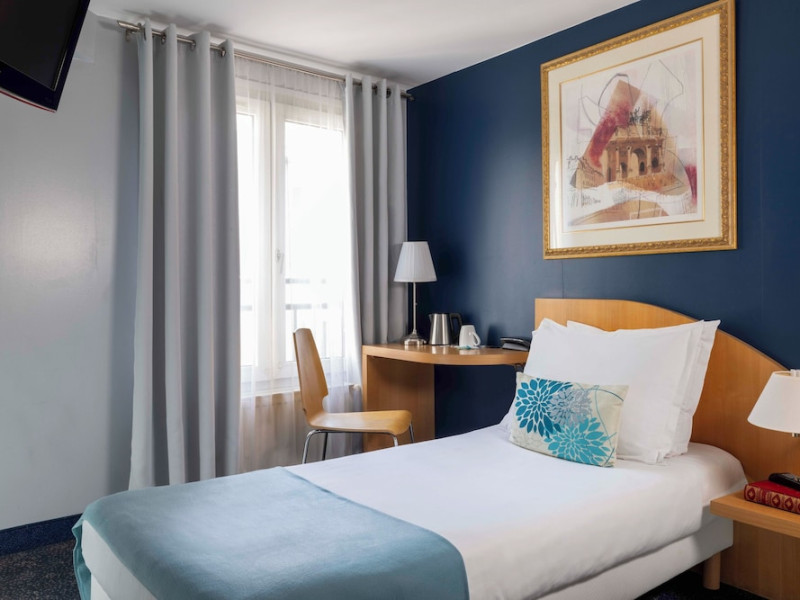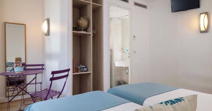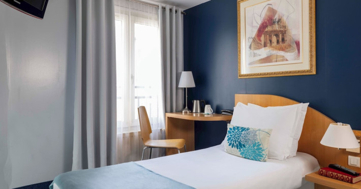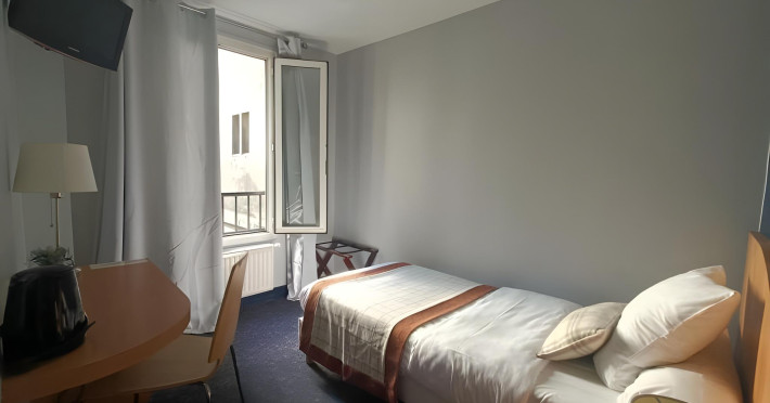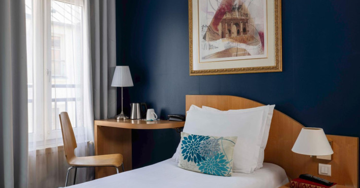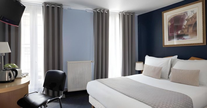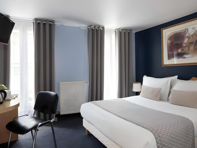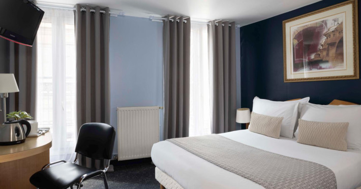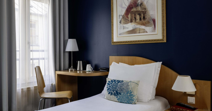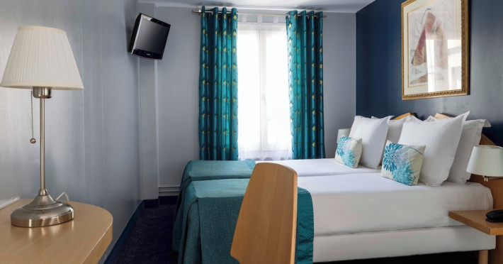 Located in the 9th arrondissement of Paris, near the Gare Saint-Lazare, Grand Hôtel du Calvados offers convenient access to public transport and is within walking distance of the Quartier de l'Europe, department stores like Printemps Haussmann and Galeries Lafayette, and cultural attractions such as the Palais Garnier. The hotel features complimentary wireless internet access, a 24-hour front desk, and luggage storage. Guests can enjoy a buffet breakfast daily (for a fee) in a Parisian vaulted room. The hotel also has a restaurant serving Italian cuisine. All rooms include a flat-screen television, phone, safe, desk, and a private bathroom with a bathtub or shower and hairdryer. Concierge services, ticket service, and tours are available. Smoking is prohibited throughout the property. Saint-Lazare Station is a one-minute walk away, and Liège Metro Station is 350 metres away, providing direct access to the Champs-Elysées. The Grand Hotel Du Calvados is a hotel.