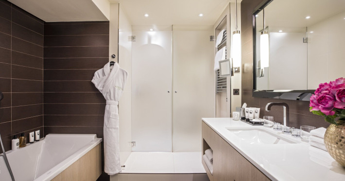 The 66 guestrooms offer minibars, espresso makers, pillowtop beds with down comforters and premium bedding, cable programming, DVD players, and complimentary wireless internet access. Bathrooms include designer toiletries and hair dryers.