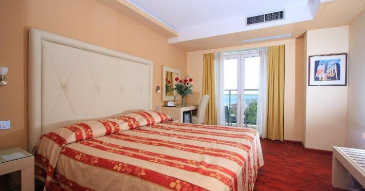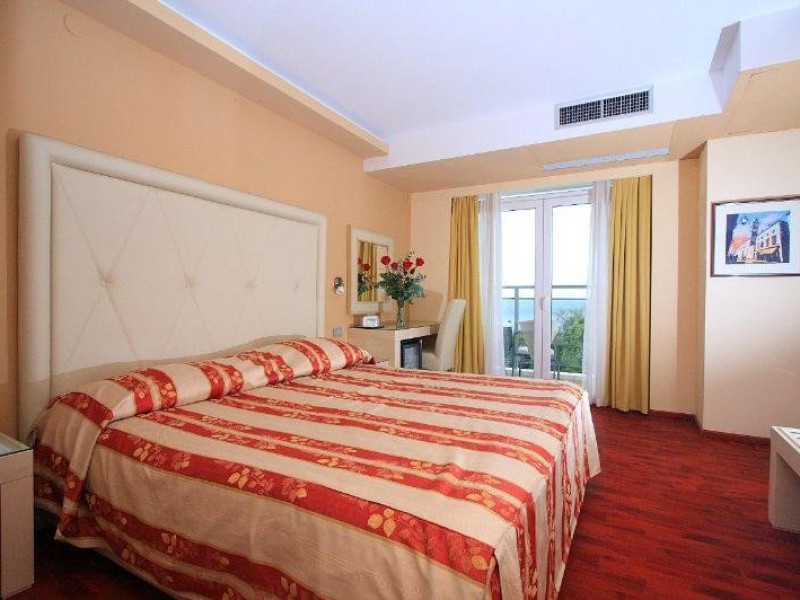 The air-conditioned beach hotel comprises a total of 244 rooms. Guests may gain access to the hotel gardens and terrace. Facilities include a foyer with a reception desk, a safe and a lift as well an Internet corner. Open 365 days a year and with its long catering experience the hotel offers guests top quality service throughout the holiday season as well as in the off-peak season. Further facilities include an apéritif bar and restaurant and a TV room. A diverse array of bars and restaurants as well as a bank, post office, shopping centre, etc. are to be found in the near vicinity. A variety of congress halls are available within the hotel: the Blue Room (seating for 220 persons in theatre style), Talir (50 persons in theatre style) and Romana (30 persons in theatre style). It is possible to adapt the hall shape into a U-shaped, banquet or classroom-style layout. The hotel is technically equipped for sound and video projections, and technical equipment can also be provided to cater to guests needs and requirements. Complimentary car parking is to be found in front of the hotel.