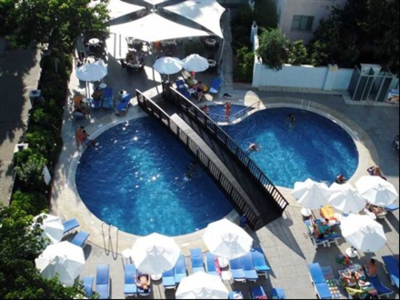 Hotelul dispune de aer conditionat, lift, recepție, lobby, baruri, restaurant și mini market. Grădină, Mini club pentru copii, 2 piscine, saună și centru de fitness.