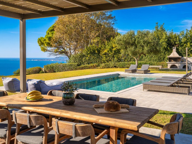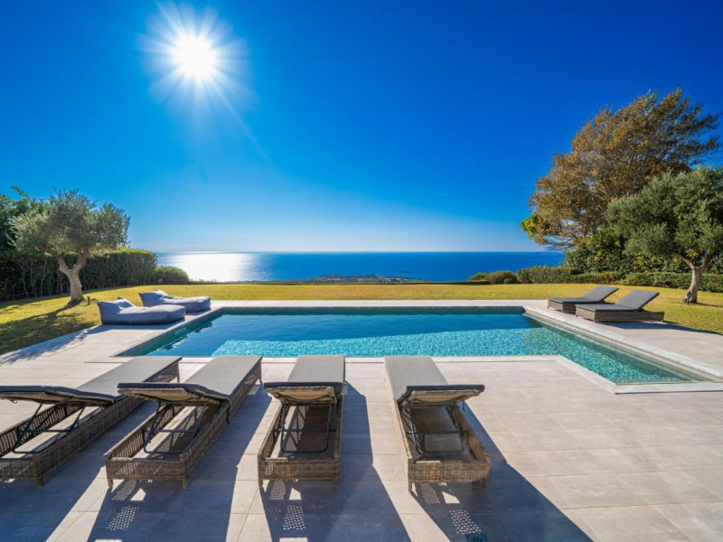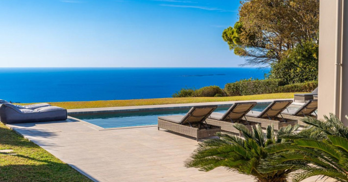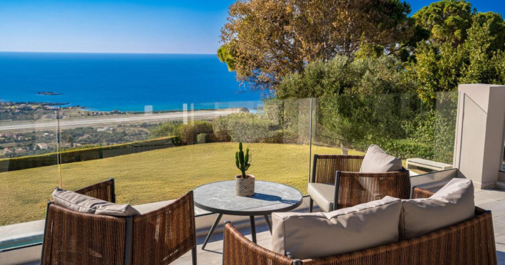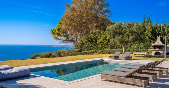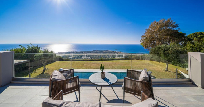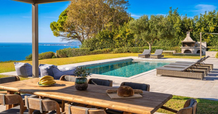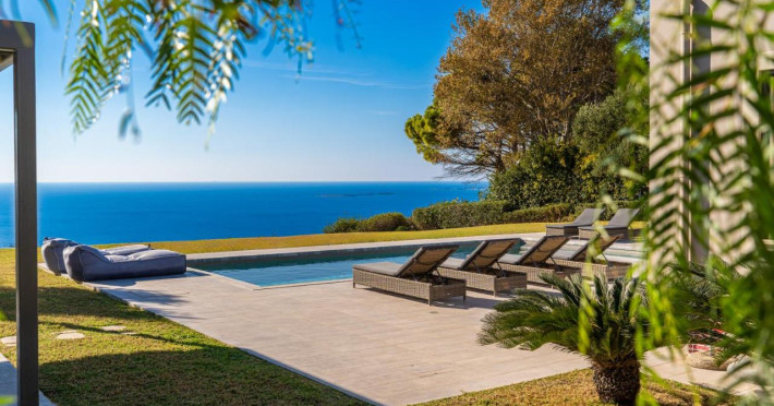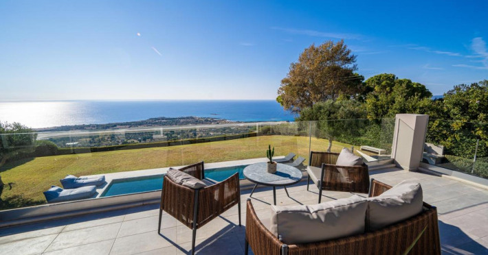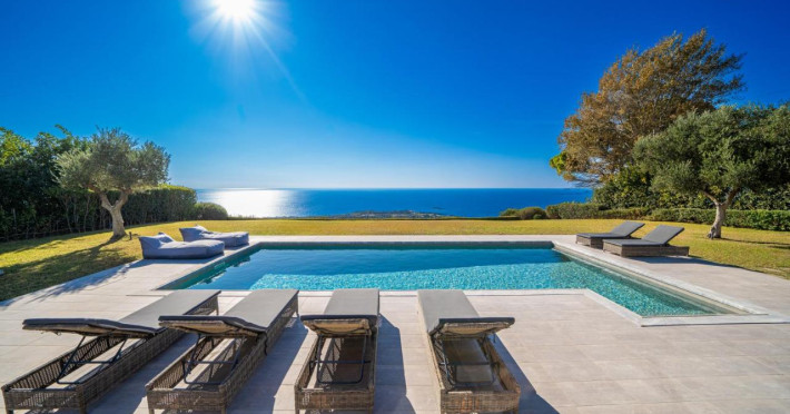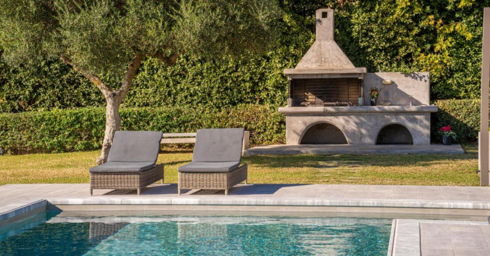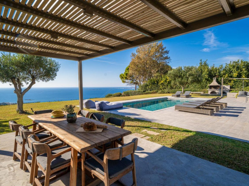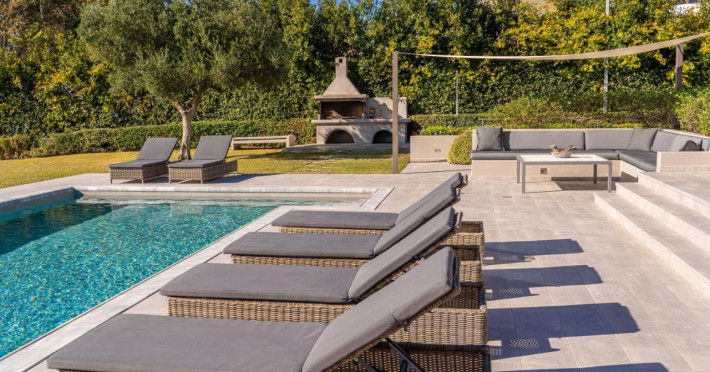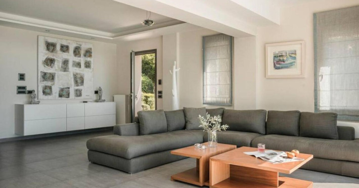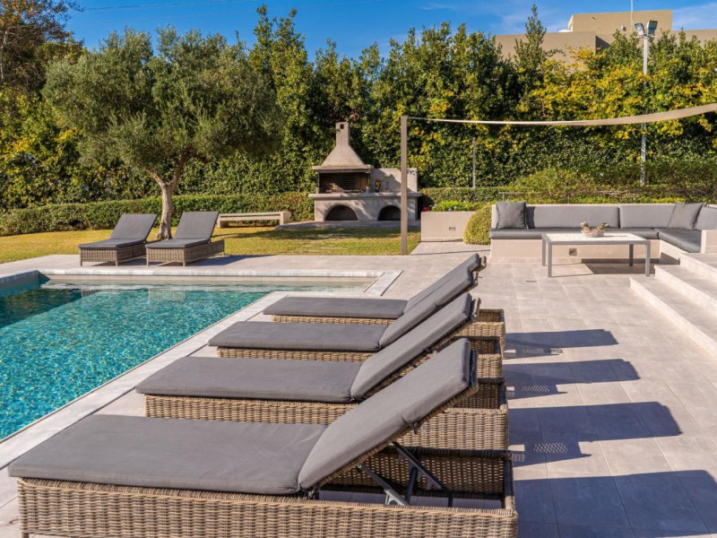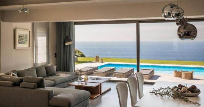 Set in its own large acre plot, Grande Azzurro is modern amp; minimalistic in design and can be honestly described as having the most breathtaking panoramic views of pretty much anywhere on the island and from every single aspect of the property. The extensive private grounds are fully landscaped and beautifully manicured all around, with the feature lawn area housing the patios, pool area, Al Fresco dining pergola, large external kitchen/BBQ area amp; an amazing more casual seating area: simply perfect for those mid-morning coffees and early evening cocktails alike. From every single area of the garden, the clear Blue Azure of the Ionian Sea is sure to dazzle and hypnotize in equal measures, as you sit or lie and just immerse yourself in these mesmerizing views.