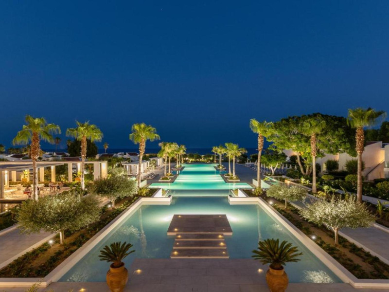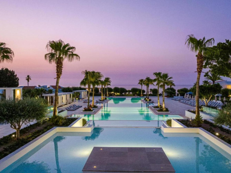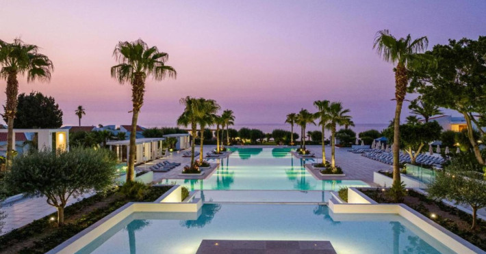 The resort is named after the dama-dama deer that lives on the island since antiquity and its marble idols stand proud on famous Rhodes harbour. Dama Dama lies on famous Faliraki beach & features sun-filled public spaces, a 100-meter pool and gardens with bungalows framed by a vast beach line.