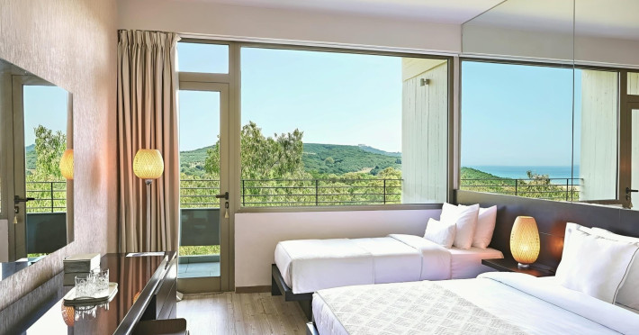 Grecotel LUXME Palms & Aquapark – un hotel relaxant in spatele complexului Grecotel Riviera Olympia, inconjurat de verdeata si liniste. Ideal pentru familii cu copii. Cazare in camere simple si confortabile, cu vedere la gradina sau la mare. Oaspetii pot folosi toate serviciile din vecinul Grecotel LUXME Oasis – restaurante, baruri, programe de animatie, wellness si acces la plaja. Complexul include si Olympia Aqua Park cu tobogane cu apa si atractii acvatice pentru copii si adulti.