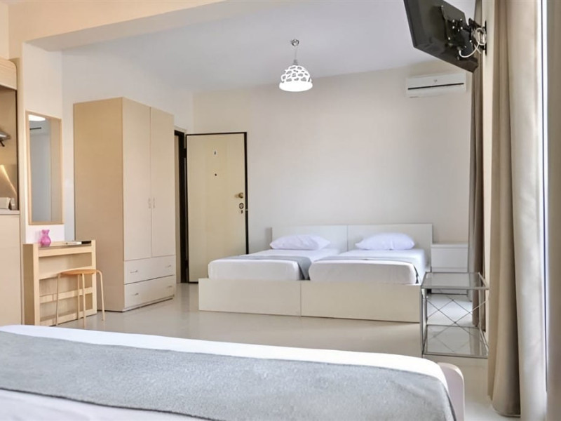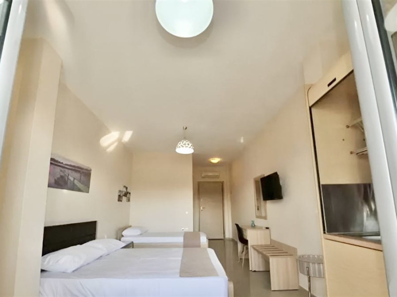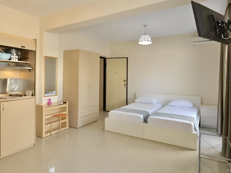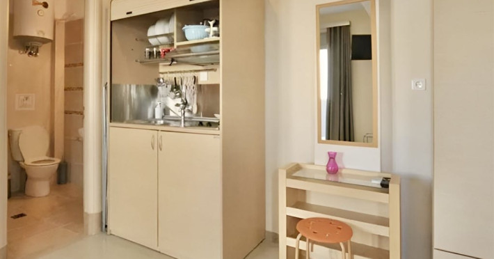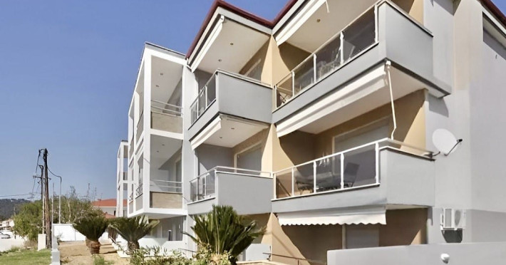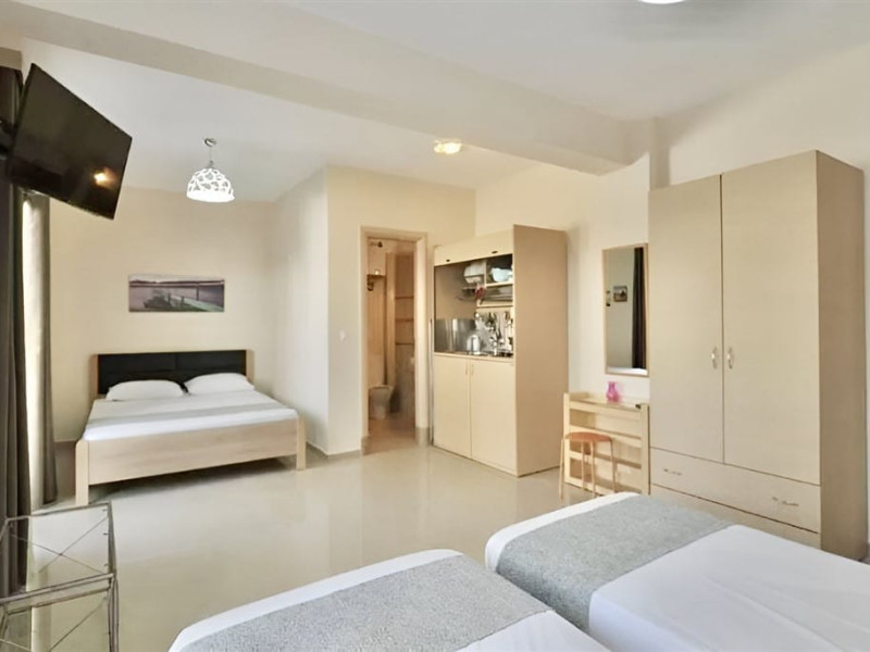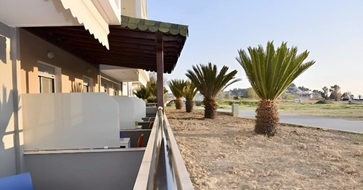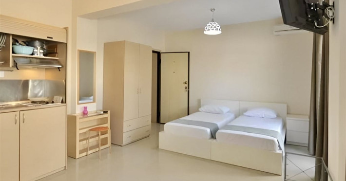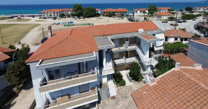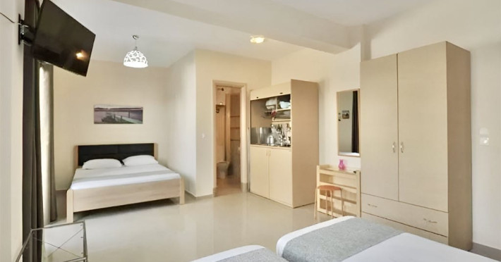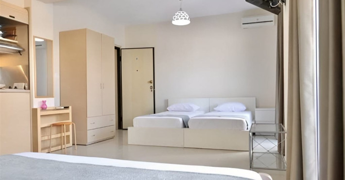 Greek Pride Panthea Studios in Skala Fourka, Kassandra, offer the ideal setting for safe and relaxing family vacations by the sea. The complex is facing towards the sea and all studios come equipped with air conditioning, a kitchenette with utensils, and Wi-Fi. Situated just 100 meters from the beach and a minute’s walk from the local village center, our studios provide convenience and comfort. The studios are located on the ground floor and consist of 8 units.