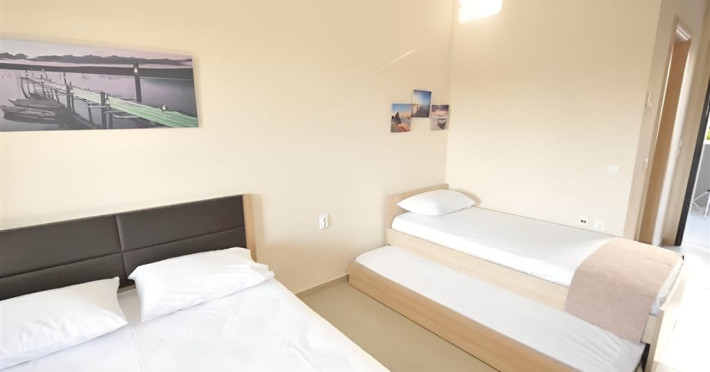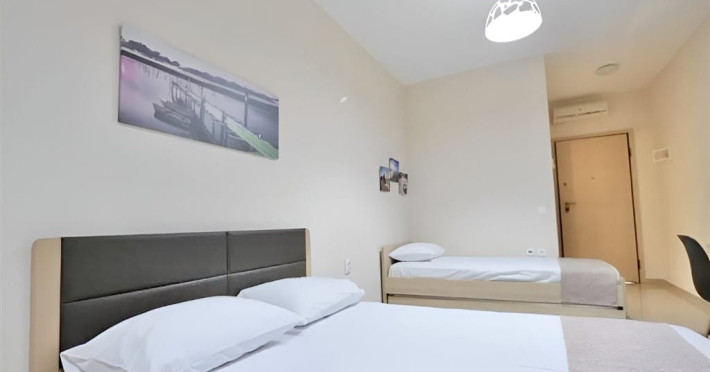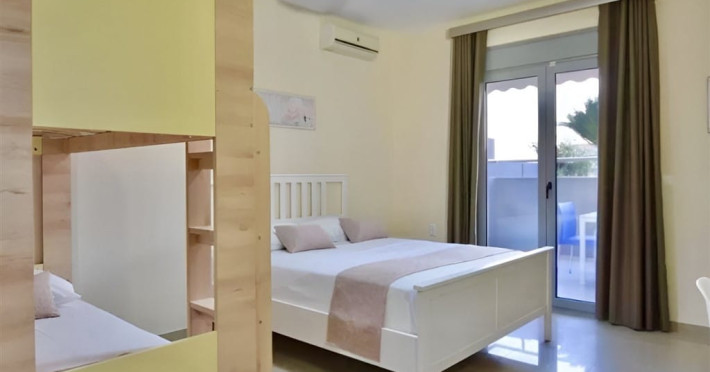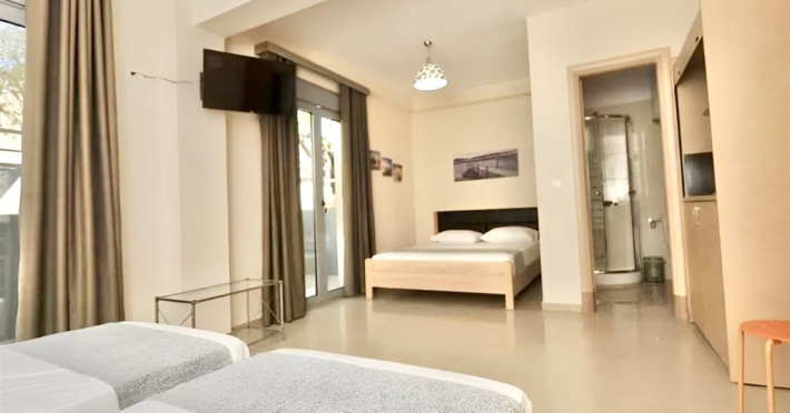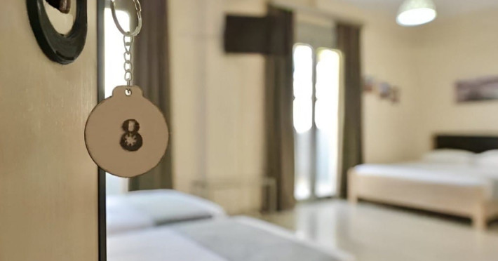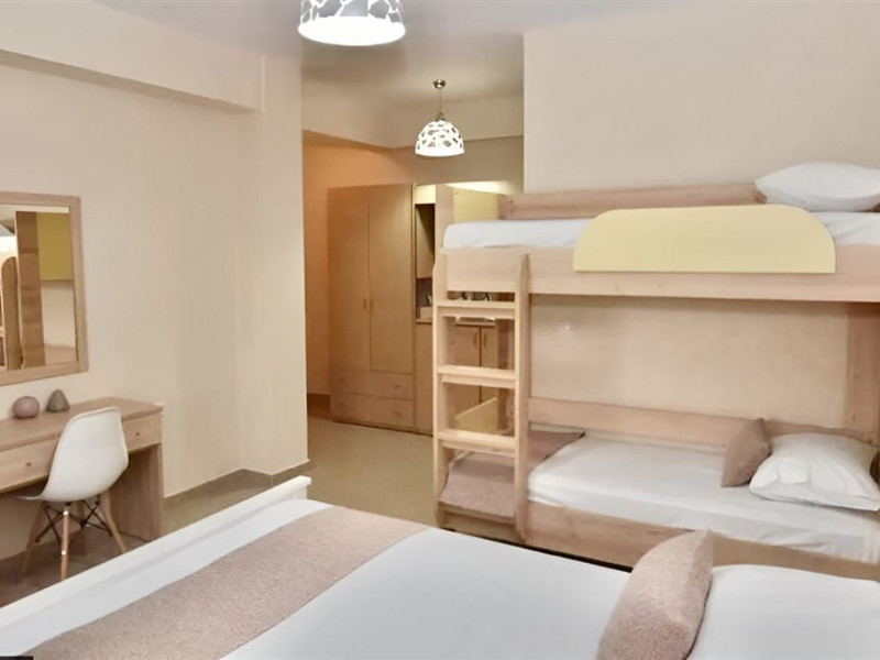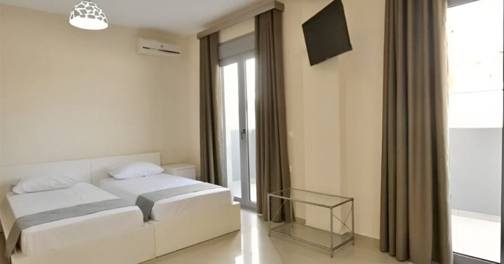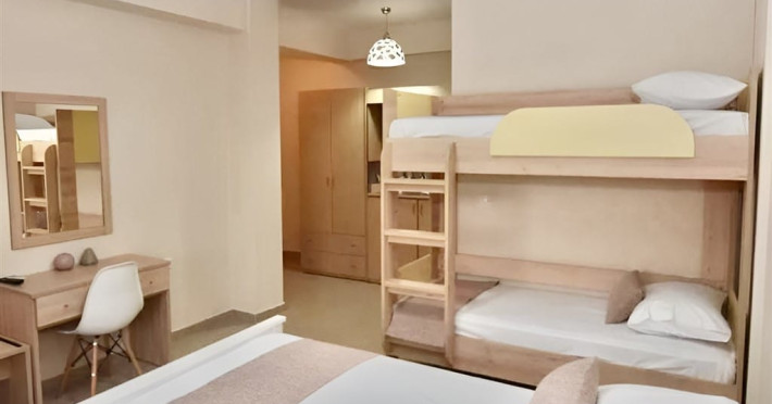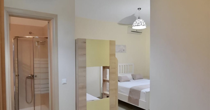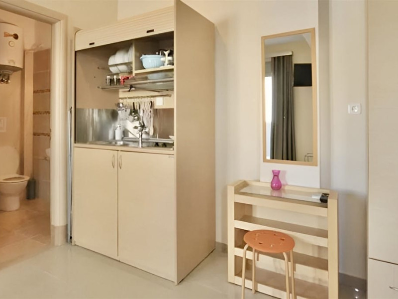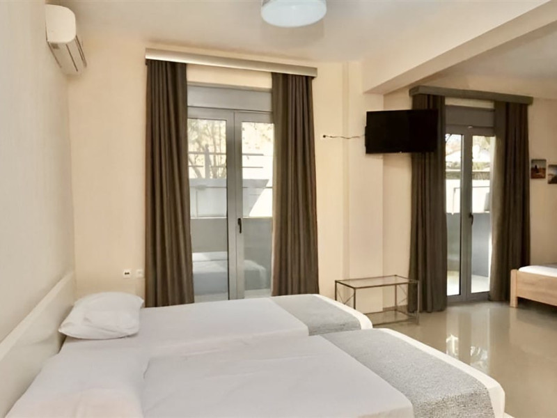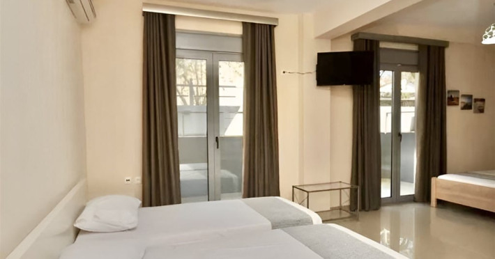 Greek Pride Panthea Studios in Skala Fourka, Kassandra, offer the ideal setting for safe and relaxing family vacations by the sea. The complex is facing towards the sea and all studios come equipped with air conditioning, a kitchenette with utensils, and Wi-Fi. Situated just 100 meters from the beach and a minute’s walk from the local village center, our studios provide convenience and comfort. The studios are located on the ground floor and consist of 8 units.