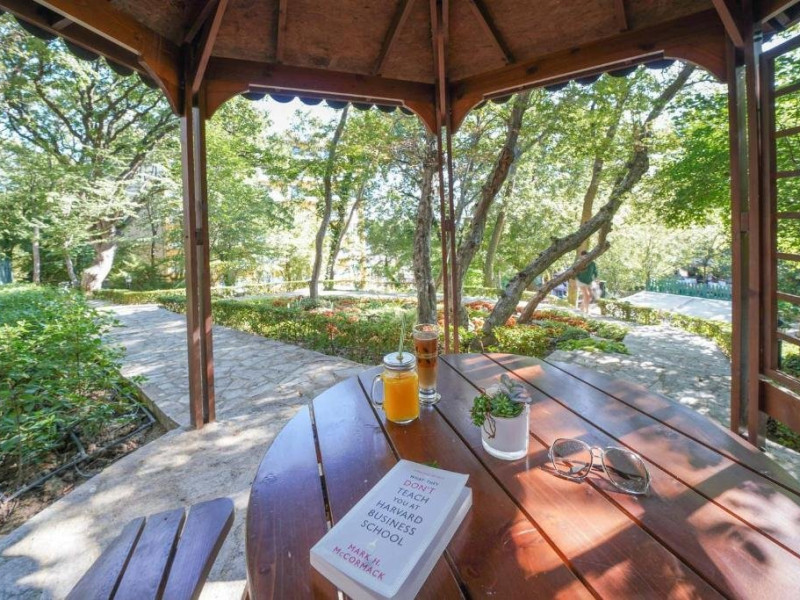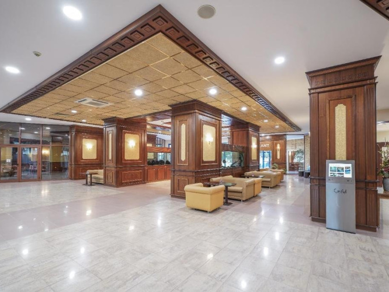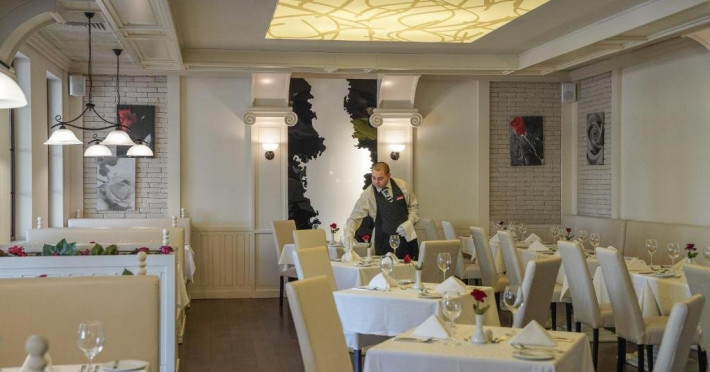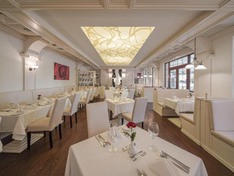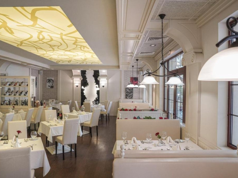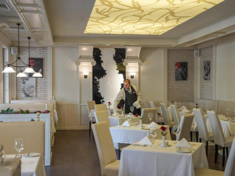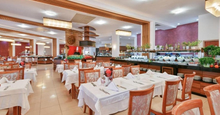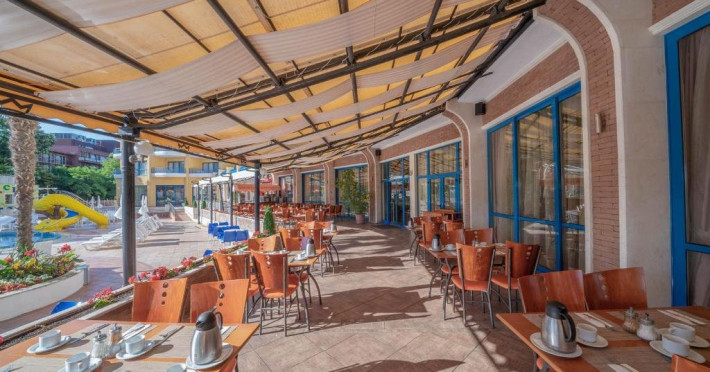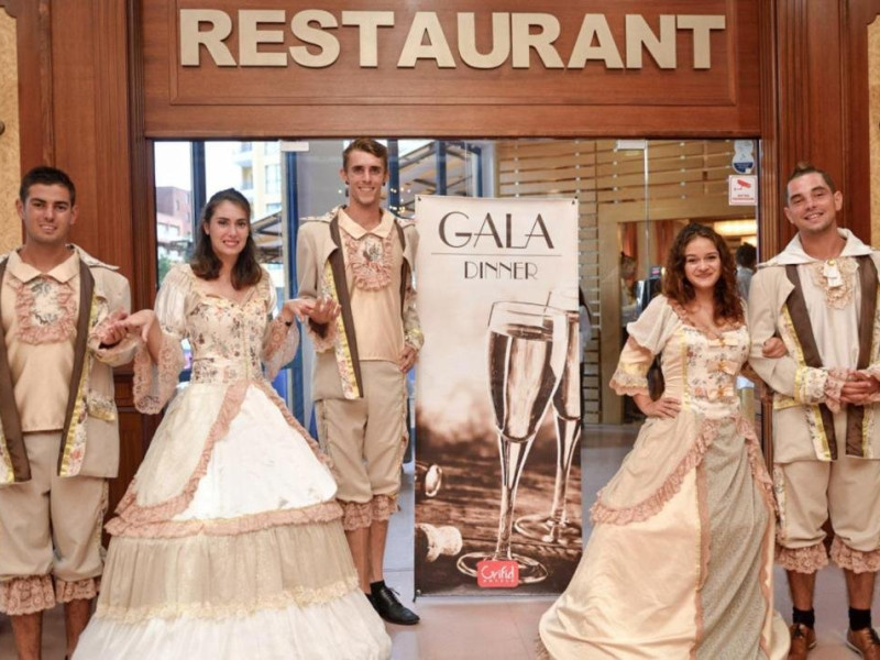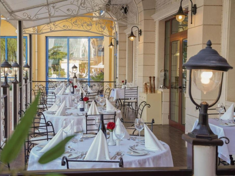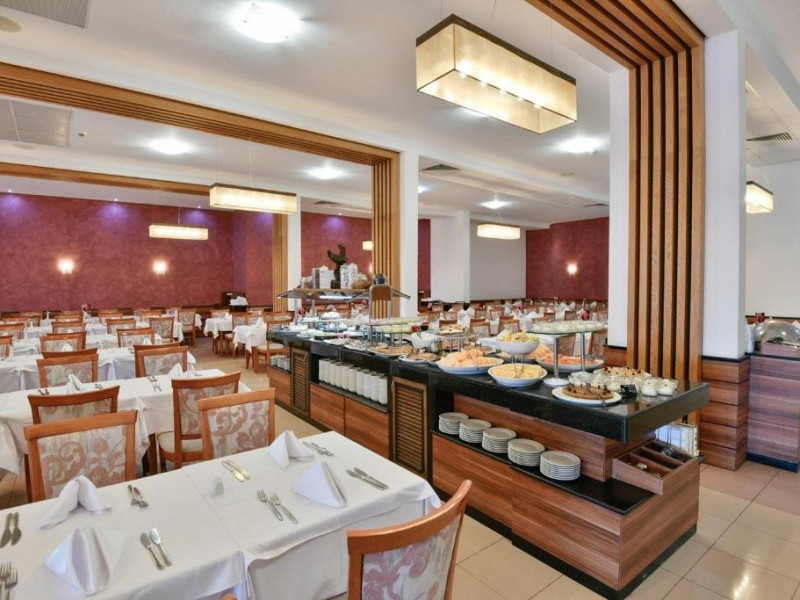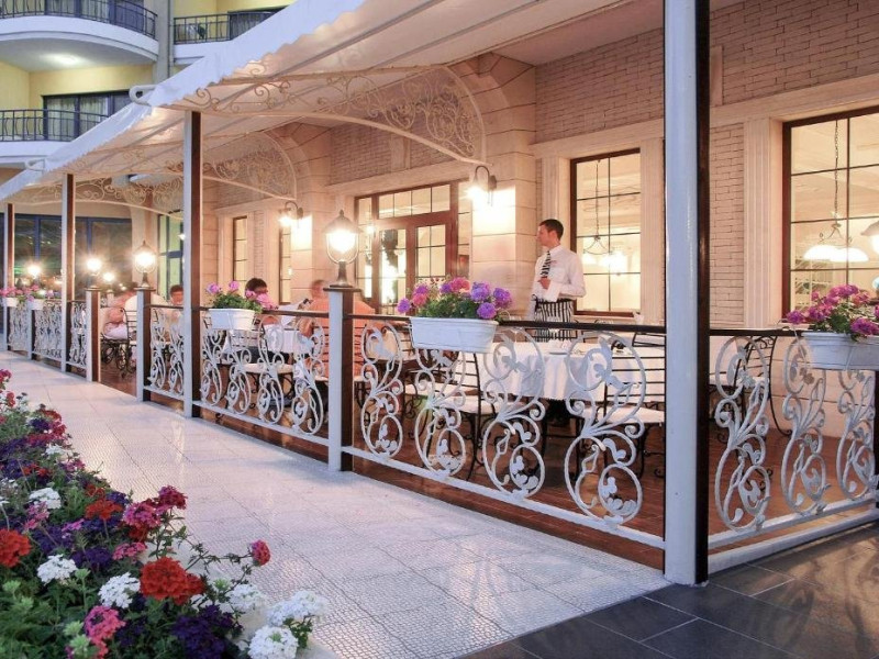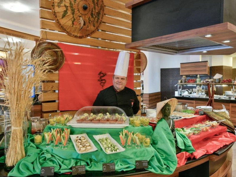 Restaurantul bulgaresc a-la-cart Horo /18:30 - 21:30/ - 56 locuri- meniu traditional bulgaresc pentru cina; meniu pentru copii, apa minerala, bauturi racoritoare, bere locala la halba si vin de tara. Cod vestimentar pentru cina: Smart Casual - sunt permise pantalonii scurti, cu exceptia costumelor de baie, a hainelor de plaja, a slapilor si a camasilor fara maneci. Restaurant asiatic a la carte /18:30 - 21:30/ - 60 de locuri, care ofera preparate din bucataria asiatica si specialitati culinare, meniu pentru copii, apa minerala, bauturi racoritoare, bere locala la halba si vin. Este necesara rezervare si sejur minim. Cod vestimentar pentru cina: Smart Casual - sunt permise pantalonii scurti, cu exceptia costumelor de baie, a hainelor de plaja, a slapilor si a camasilor fara maneci. Restaurantul italian a-la-carte Prego /18:30 - 21:30/ - ofera un tur culinar al Italiei, cu 60 de locuri si 28 de locuri pe terasa - bucatarie italiana, lounge alb elegant, si terasa in aer liber cu vedere la piscina; o varietate de specialitati italiene, pizza si paste de casa; meniu pentru copii, apa minerala, bauturi racoritoare, bere locala la halba si vin. Este necesara rezervare si sejur minim. N.B. Sejur minim necesar pentru restaurantele a-la-cart: -Sejur de 4 nopti si mai mult - acces nelimitat. * Este necesara rezervare in avans. * Cod vestimentar pentru cina: Smart Casual: sunt permise pantalonii scurti, cu exceptia costumelor de baie, a tinutei de plaja, a slapilor si a camasilor fara maneci. Lobby bar /10:00 - 23:00/ - 140 de locuri si 70 de locuri pe terasa - apa minerala, bauturi alcoolice internationale si locale, bauturi racoritoare, cocktail-uri racoritoare, cafea, ceai, bere la halba si vin local. * Livrarea de bauturi pe terasa piscinei si in salonul elegant al barului din hol. Bar Salon /22:00 - 00:00/ - alcool international si local, bauturi racoritoare, cafea, ceai, bere la halba, vin de tara * Sala spatioasa cu caracter si atmosfera proprie. Locul perfect pentru programe de divertisment si spectacole de seara. Grifid Coffee Shop /10:00 - 12:00/ si /14:30 - 17:00/ - prajituri, prajituri, crema, tartele, inghetata, apa minerala, bauturi nealcoolice, cafea si ceai * In aer liber, zona verde, aproape de piscina. Mini bar - gratuit si ofera apa minerala, bauturi racoritoare, bere. Reaprovizionat zilnic.