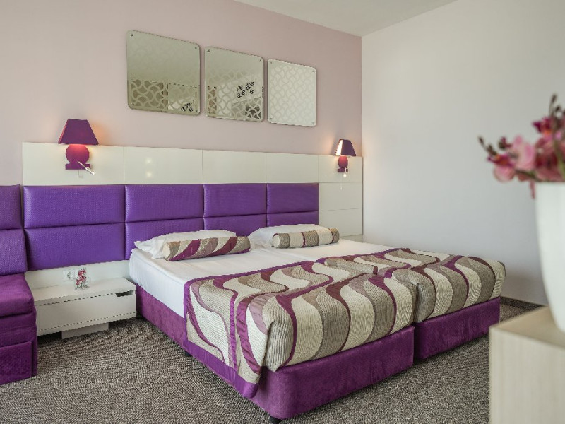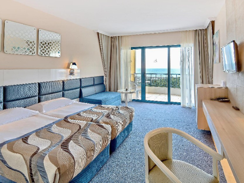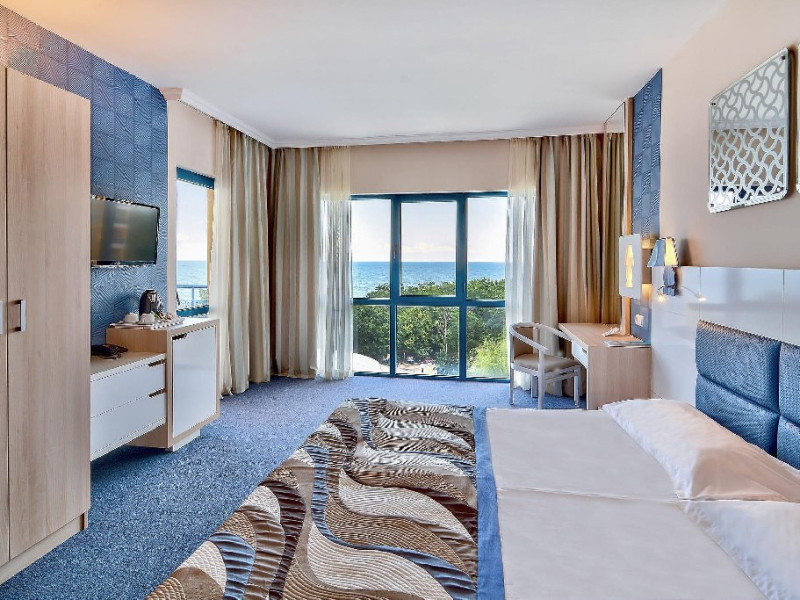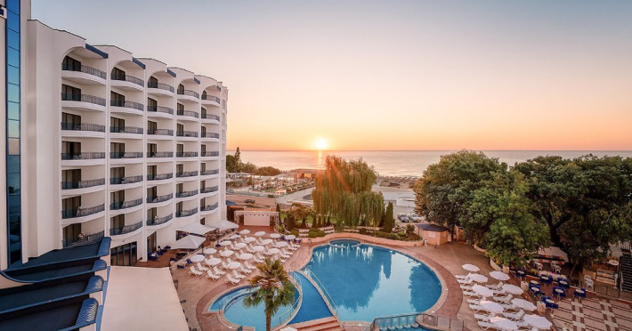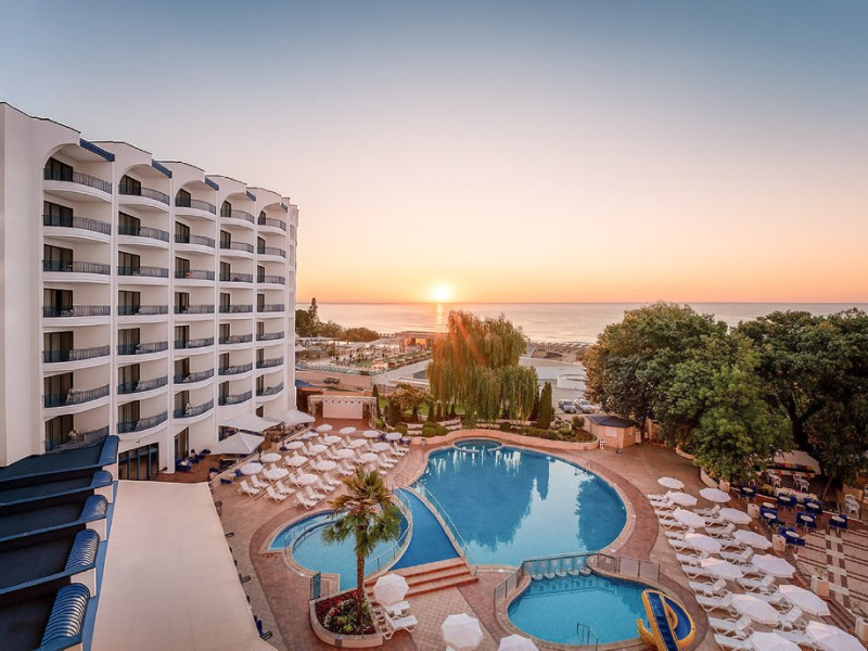 Plaja: la aproximativ 100 de metri. Intrarea treptata in mare. Acces pe scari de la hotel la promenada si aleea de pe plaja. Bucurati-va de cea mai frumoasa si curata plaja de pe coasta bulgara a Marii Negre, distinsa cu Steagul Albastru.