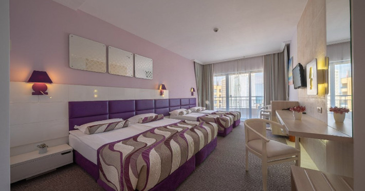 DBL 2+1 SEA SIDE: Aproximativ 26 - 30 mp. Doua paturi combinate ca un pat dublu. Patul suplimentar este o canapea extensibila. Toate camerele au bai cu dus si cada. Uscator de par si oglinda cosmetica. Telefon cu apelare internationala. Sistem central de climatizare. TV prin satelit. Conexiune Wi-Fi gratuita. Seif in camera. Mini bar - reaprovizionat zilnic (apa, bauturi racoritoare, bere). Camere cu mocheta, cu balcon. Capacitatea maxima este de 2 adulti si 1 copil sau 3 adulti.