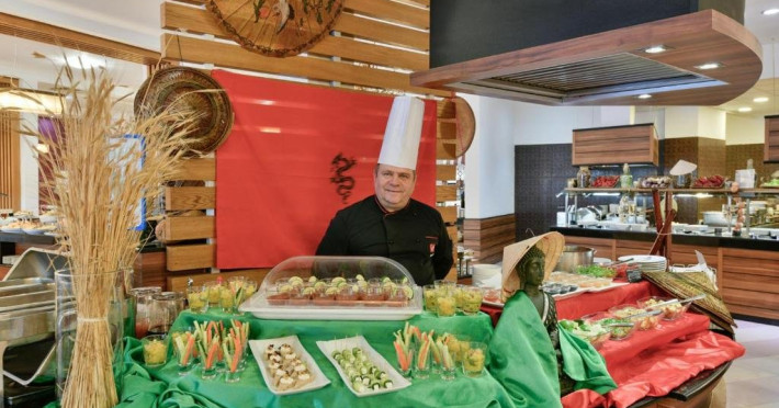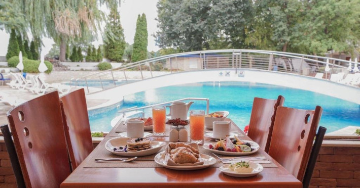 ULTRA ALL INCLUSIVE in Hotel Grifid Arabella **** pentru sezonul de vara 2025 INCLUDE: Check-in: dupa ora 15:00 Check-out: inainte de ora 11:00 Ultra all inclusive incepe cu o gustare de dupa-amiaza si se termina cu un mic dejun continental. Mancare si bauturi la restaurantul principal Arabella: 250 de locuri si 90 de locuri pe terasa - Mic dejun tip bufet /07:30 - 10:00/ - diverse fructe si legume proaspete, branza, fulgi de porumb, croissante, clatite, oua, bauturi reci si calde - Pranz tip bufet /12:30 - 14:00/ - o varietate de delicii culinare; Statii de bucatarie deschisa, sculptura, pizza si paste; bufet dietetic, bufet de salate si deserturi delicioase; bufet de bauturi cu apa minerala, bauturi racoritoare, bere la halba si vin local - Cina bufet /18:00 - 21:30/ - o varietate de delicii culinare; Statii de bucatarie deschisa, sculptura, pizza si paste; bufet dietetic, bufet de salate si deserturi delicioase; bufet de bauturi cu apa minerala, bauturi racoritoare, bere la halba si vin local * Bufet pentru bebelusi (lapte, piureuri, cereale, lapte pentru bebelusi) * Bufete tematice culinare - de 2 ori pe saptamana * Cina festiva - o data la 10 zile * Cod vestimentar pentru cina: Smart Casual: sunt permise pantalonii scurti, cu exceptia costumelor de baie, a tinutei de plaja, a slapilor si a camasilor fara maneci. Restaurant cu gustari: Situata in zona piscinei in aer liber, in afara cladirii principale. Ofera mese pe terasa primitoare in aer liber si insorita. - Mic dejun continental /10:00 - 12:00/ - serviciu la masa - Pranz tip bufet /12:00 - 15:00/ Gustare de dupa-amiaza /15:00 - 17:00/ - la bufet * In functie de ora anume oferta include sandviciuri, Hot Dogs, Pizza, Donners, Burgeri, Clatite, Salate sau Fructe. * Bufet de bauturi cu apa minerala, bauturi racoritoare, cafea, bere locala la halba.