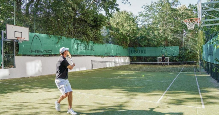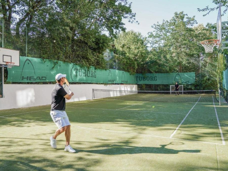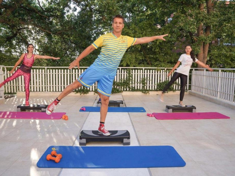Sport si divertisment: O umbrela si doua sezlonguri (cu saltele) per camera PE PLAJA, in functie de disponibilitate (doar pentru oaspetii platitori integral). Copiii nu beneficiaza de serviciile de mai sus Doua piscine exterioare /08:00 - 18:00/ - jacuzzi in piscina principala, sezlonguri si umbrele in jurul piscinelor; terase la soare langa piscine Piscina interioara incalzita /09:00 - 18:00/ cu sezlonguri Wi-Fi in hol si camere Sala de fitness cu echipament profesional Technogym Teren de sport multifunctional pentru baschet, tenis (teren iluminat), volei, fotbal, teren de tenis, tenis de masa Shuffleboard, gimnastica acvatica, aqua jogging, polo pe apa, darts, bowling francez Trage cu pusca cu aer comprimat Spectacol de seara - zilnic Program de animatie pentru adolescenti (cu varste intre 13 si 17 ani) cu diverse activitati sportive Seri tematice de gratar (iulie-august)