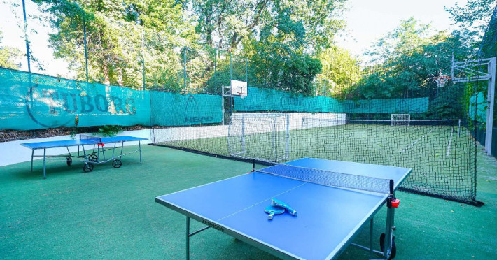 - Teren multifunctional pentru baschet, tenis (teren iluminat), volei, fotbal, foot tennis, tenis de masa