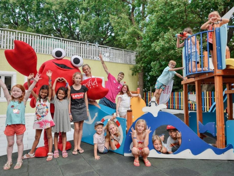 Pentru copii: Scaune inalte pentru copii in restaurant Sectiune pentru copii in piscina principala cu tobogan Mini club /10:00 - 12:30/; /15:00 - 17:30/: Program de divertisment zilnic pentru copii (4 - 12 ani) Mini disco - in fiecare zi Spectacol pentru copii o data la 2 saptamani Zile tematice si activitati Zona adolescentilor /19:00 - 22:00/: Sala sociala rezervata doar adolescentilor, insotiti de animatori Jocuri cu statie, minifotbal, jocuri de masa, petreceri tematice