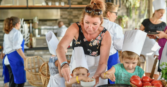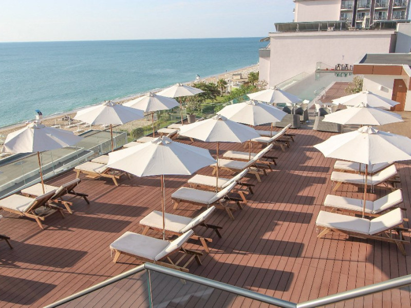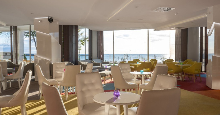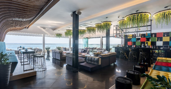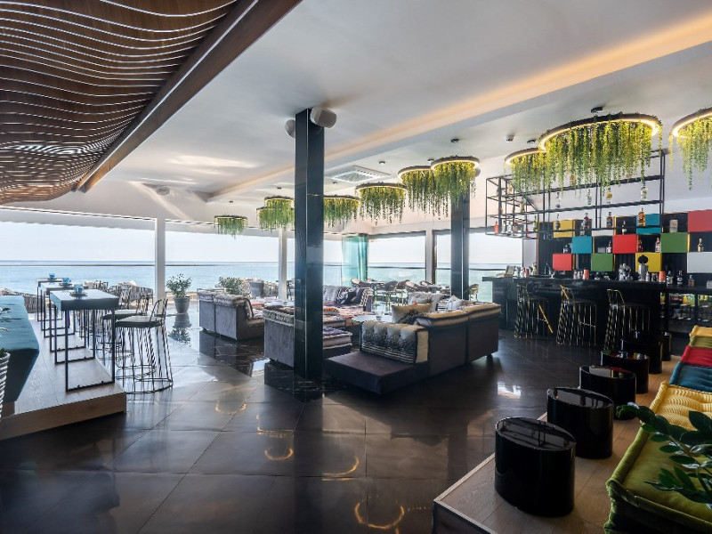 Despre hotel: Restaurant principal cu terasa la soare cu vedere la mare; restaurant a la carte (italian); Restaurant a-la-carte cu linie sanatoasa pentru oaspetii cu pachete Detox; Restaurant cu gustari; Restaurant a-la-cart club pe plaja; Patiserie; Barul din receptie; Bar pe plaja; Sky bar; Bar pe acoperis la piscina Infinity; Mini club la plaja; Sala de conferinte cu vedere panoramica la mare cu o capacitate de 60 de locuri.