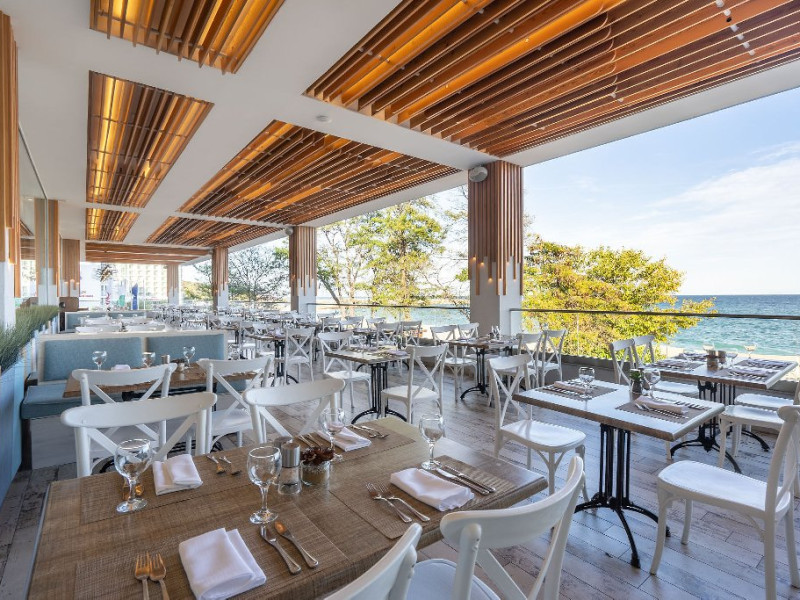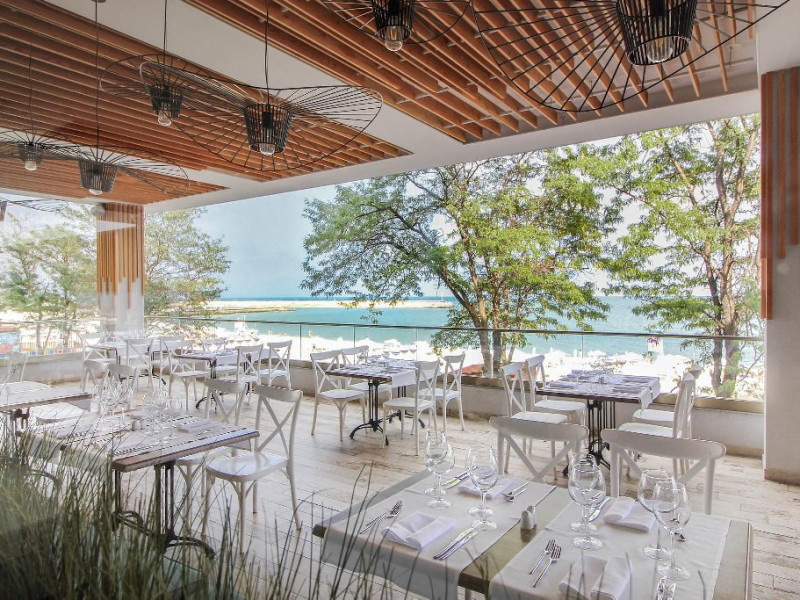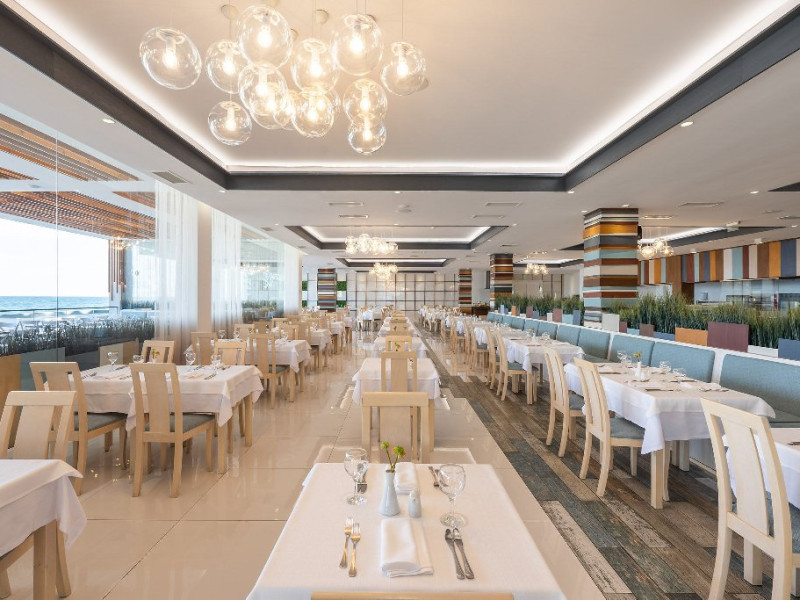 - Restaurant principal, restaurant italian a la carte (interior), restaurant a la carte Healthy Line (parte din pachetele AI Detox), restaurant a la carte BEACH CLUB, snack restaurant pe plaja, Candy Shop