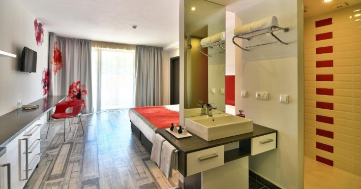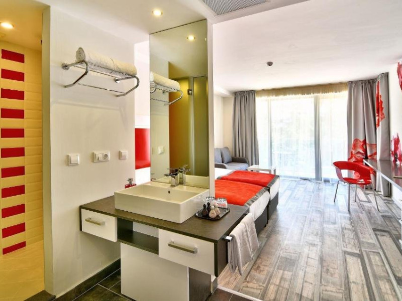 Sport si divertisment: NOU: SERVICII DE PLAJA INCLUSE - 2 sezlonguri si o umbrela per camera, cu transfer la zona de plaja rezervata oaspetilor Foresta de doua ori pe zi Piscina in aer liber Wi-Fi in hol si camere Mini bar Tenis de masa, darts, fitness in aer liber Fit and Fun NOU: E-biciclete disponibile contra unui depozit Biciclete disponibile pentru inchiriere (pana la 4 ore pe zi). Este necesara rezervare prealabila Servicii cu plata suplimentara: Seif in camera Inchiriere de biciclete (dupa a 4-a ora pe zi) Check-in devreme si check-out tarziu Grifid Aquapark (la Hotelul Bolero) Wellness si relaxare la Arabella Alte servicii