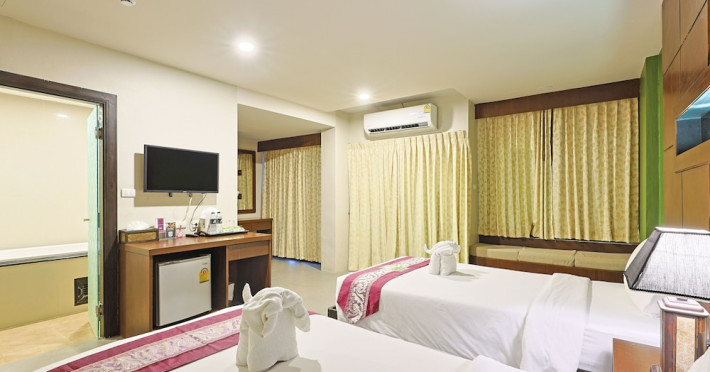 Located in the heart of Patong Beach, Gu Hotel Patong is steps away from Bangla Road and a short walk from Jungceylon Shopping Center. Phuket International Airport is approximately 45 km away. The hotel features a rooftop outdoor pool with a sundeck offering panoramic views. Guests can enjoy Thai cuisine at The Gig restaurant, relax at the bar/lounge or poolside bar, and take advantage of complimentary Wi-Fi. The hotel also offers a business center, 24-hour front desk, luggage storage, and free self-parking. The air-conditioned rooms feature modern Thai décor, cable TV, a personal safe, a minibar, and a private bathroom with complimentary toiletries. The Gu Hotel is a City hotel, Tourist hotel. Located in Patong Beach area. The nightlife/restaurants are easily accessible by taxi or bus from the hotel.