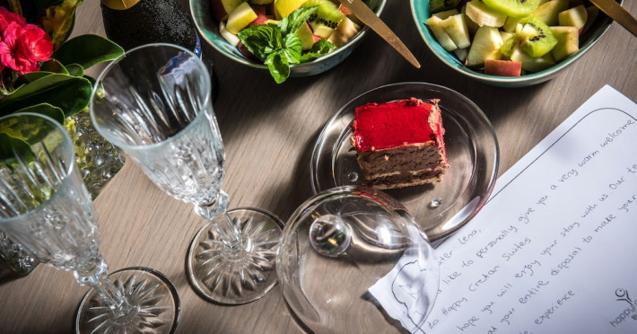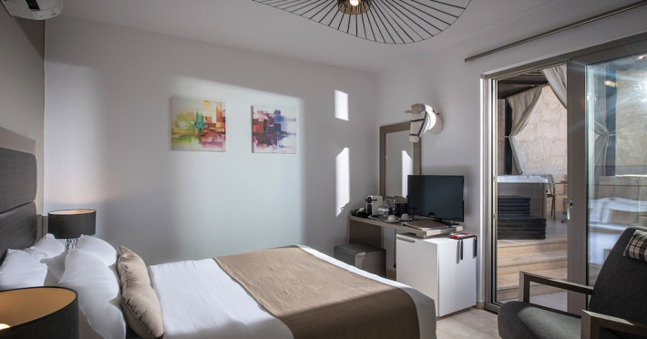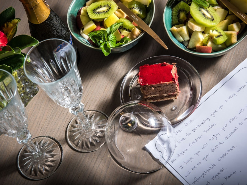With a stay at Happy Cretan Suites in Malevizi, you'll be in the historical district and close to Stay Wet and Mononaftis Beach. This 4-star hotel is within the region of Museum of El Greco and Pankritio Stadium.Rooms Make yourself at home in one of the 26 individually decorated guestrooms, featuring refrigerators and MP3 docking stations. Your pillowtop bed comes with Frette Italian sheets. Rooms have private balconies or patios. 42-inch LED televisions with satellite programming provide entertainment, while complimentary wireless Internet access keeps you connected. Private bathrooms with bathtubs or showers feature rainfall showerheads and designer toiletries.Amenities Enjoy a range of recreational amenities, including an outdoor pool, a spa tub, and a fitness center. Additional features at this Mediterranean hotel include complimentary wireless Internet access, wedding services, and a television in a common area. Getting to nearby attractions is a breeze with the area shuttle (surcharge).Dining Grab a bite to eat at the hotel's restaurant, where you can enjoy drinks at a bar, take in a pool view, and even dine alfresco (weather permitting). You can also stay in and take advantage of room service (during limited hours). Relax with your favorite drink at a bar/lounge or a poolside bar. A complimentary breakfast is included.Business, Other Amenities Featured amenities include limo/town car service, express check-in, and express check-out. Guests may use a cruise ship terminal shuttle for a surcharge, and free self parking is available onsite.