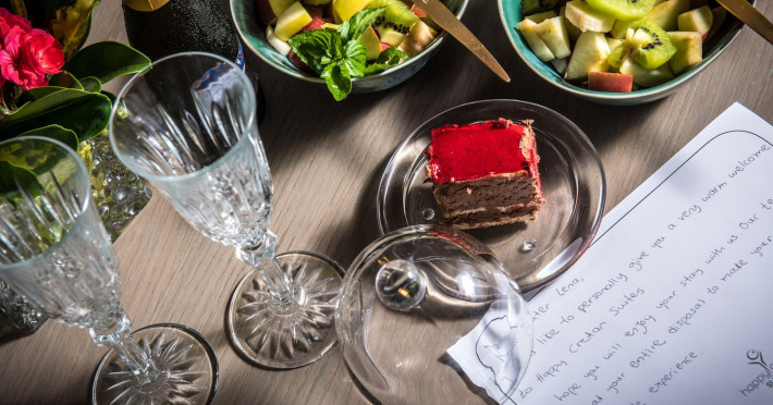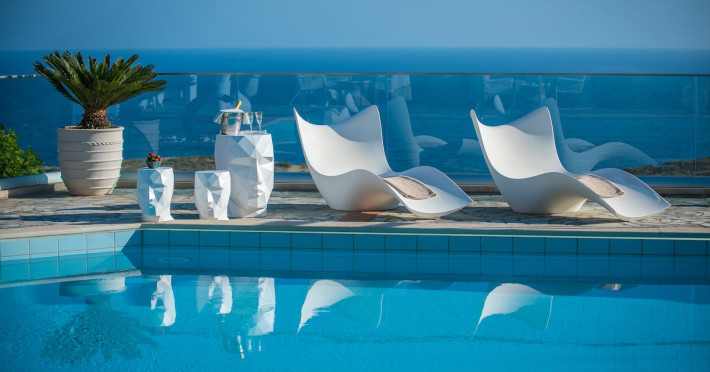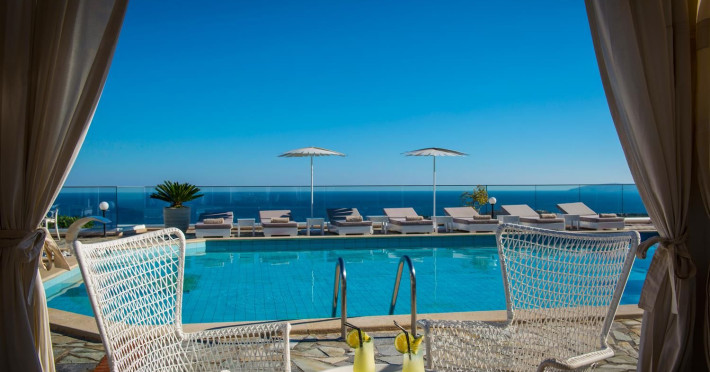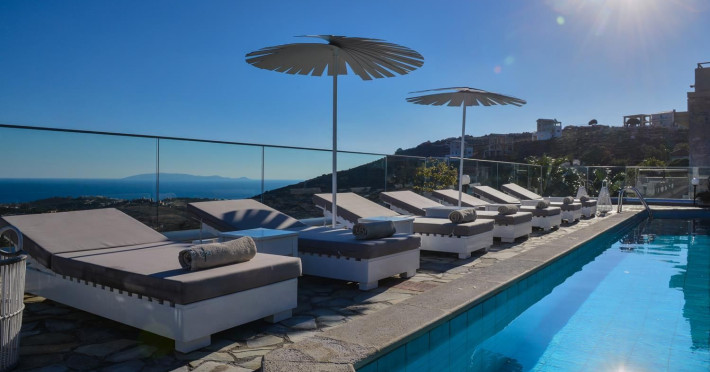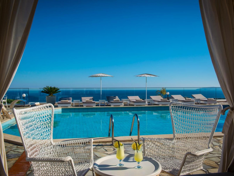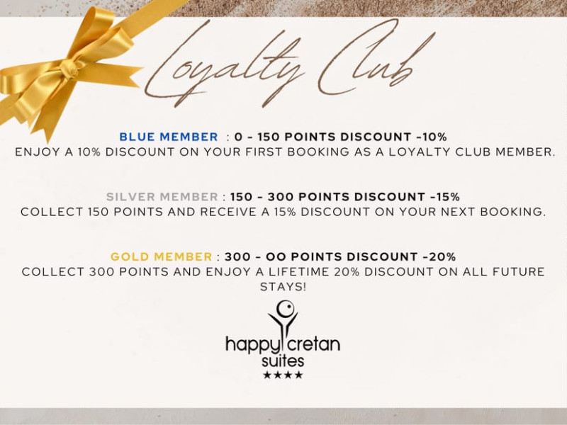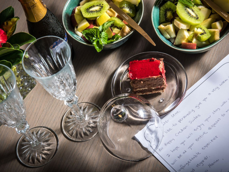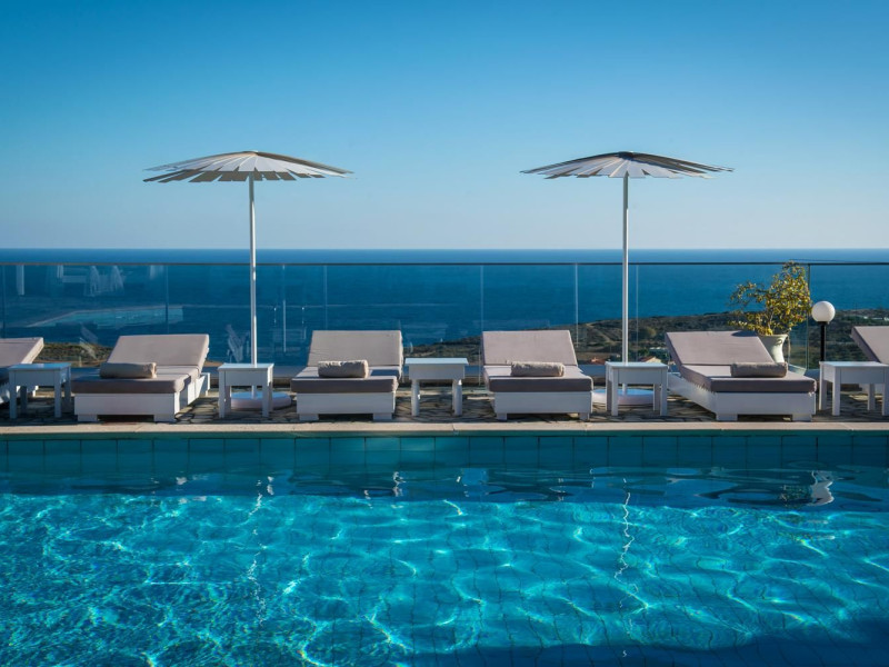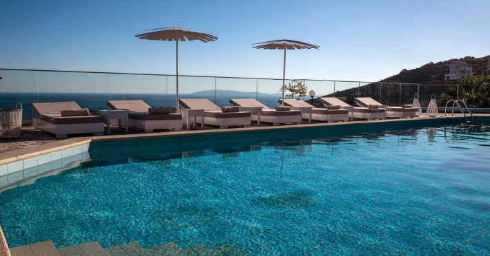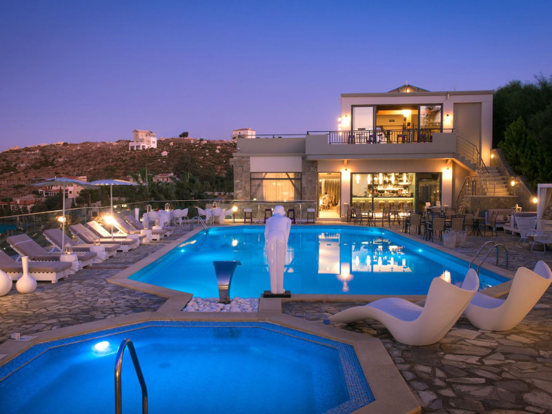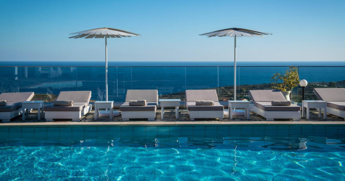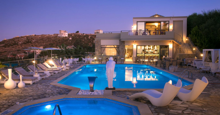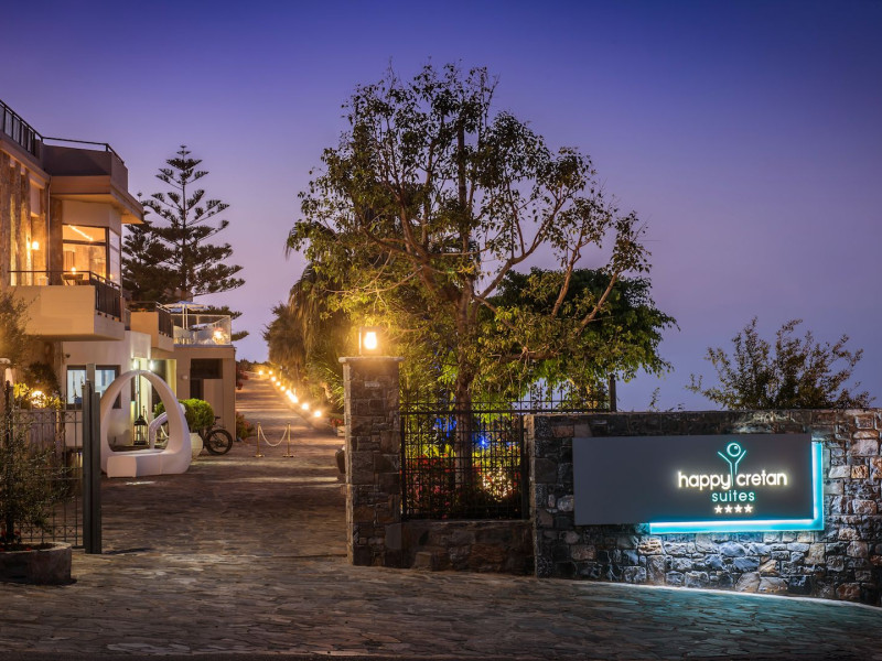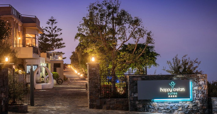 Welcome to Happy Cretan Suitesâ luxury accommodation in Crete! Every one of our 26 luxury rooms in Agia Pelagia, have a balcony or terrace with astonishing panoramic sea views. The sea vistas that pour into our interiors are simply magical and are something you should experience in person. Whether it is during or day or the evening, you will be utterly captivated by watching the sun, the sea, the island of Dia, and the Cretan coastline. All rooms of Happy Cretan are air-conditioned and are designed with a modern take on the traditional local architecture. Some accommodation types are stone-built with a slanted ceiling and some are fitted with an indoor or outdoor hot tub. We offer modern rooms near Heraklion with sea view that have plenty of space to ensure well-being. Relax in the outdoor hot tub or on the sun loungers by the Thalasso pool (chlorine-free), enjoying the panoramic views over the Cretan Sea. A sea-view fitness centre is provided while massage treatments can be arranged upon request upon arrival or in advance via direct booking. As for tending to your gastronomic needs, we cater from am to pm! From a traditional daily buffet breakfast with delicious homemade sweets, you can savour all the Mediterranean, Greek and Cretan dishes and delicacies served at our on-site restaurant by the pool. In addition, the poolside cocktail bar prepares refreshing drinks, exotic cocktails and light meals on demand. You can stay connected with the rest of the world if you choose, as we offer free WiFi throughout the hotel. You can also book your Car Rental and have it delivered to our hotel upon arrival or to the Heraklion Airport Crete while making your hotel reservation. Airport transfer booking is also possible. Simply book one way or round trip transfer to our hotel using our booking form. If you are looking for the ideal accommodation in Crete, experience it at Happy Cretan Suites!nbsp;