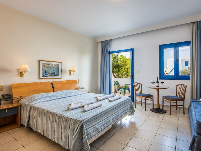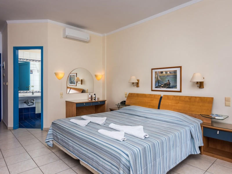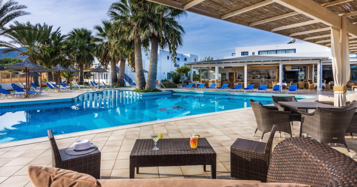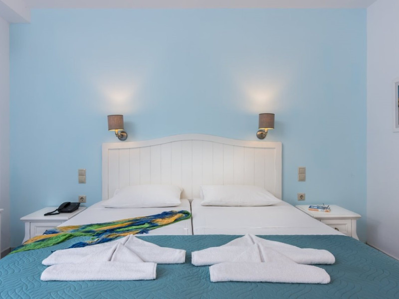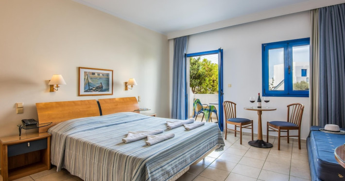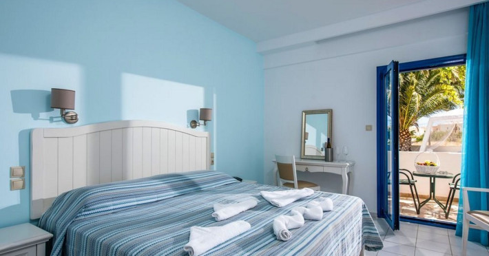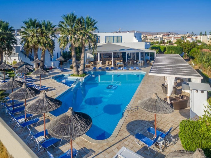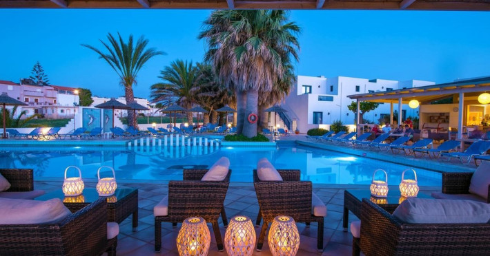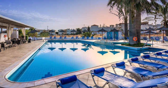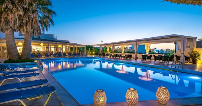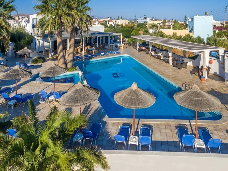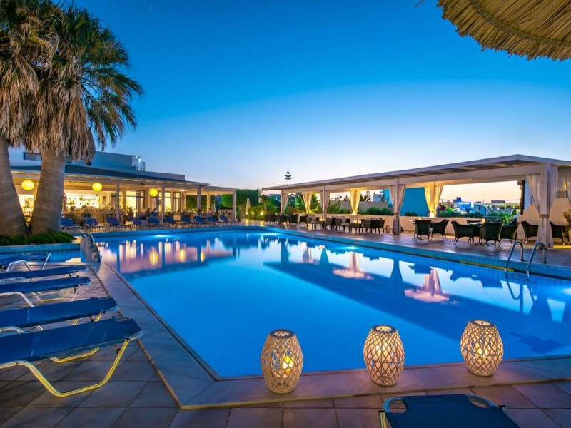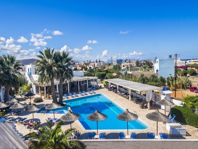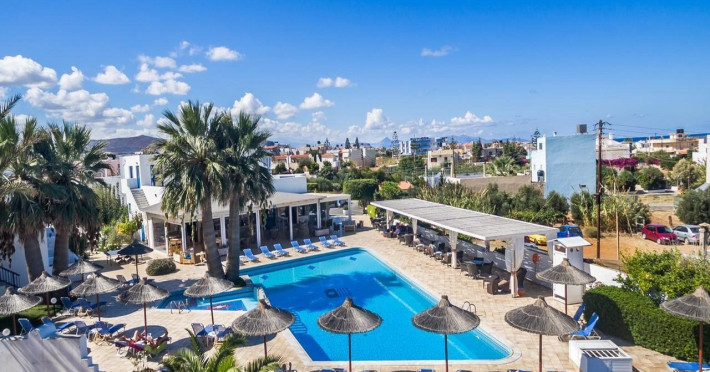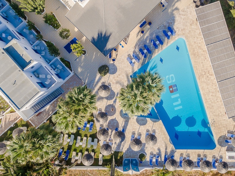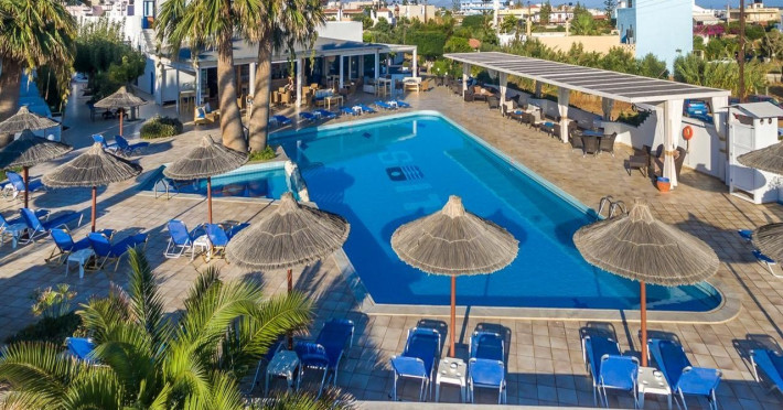 Hara Ilios is a nice family hotel complex consisting of a main building and 6 low-rise buildings, in a quiet location 150 meters from the beach. Spacious rooms equipped with telephone, safe (charge), bathroom, TV, hairdryer and balcony or terrace.Hotel facilities include reception, lounge, satellite TV, restaurant and bar. There is a nice terrace area with sun loungers, parasols, swimming pool and children’s pool, snack bar, table tennis and billiards.