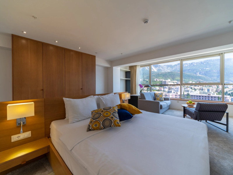 Harmonia by Dukley Hotel is situated in Budva, within 2 km from the historic center and within walking distance of a public beach, offering access to both cultural attractions and seaside relaxation.,The hotel offers an international buffet breakfast. An on-site restaurant serves international and local cuisine, and a bar is available for evening drinks. Guests can use the spa facilities or relax by the outdoor infinity pool. A kids’ club is available for younger guests. Wi-Fi is available throughout the property. An airport shuttle can be arranged for an additional fee. The hotel also provides a business center, 24-hour reception, and laundry services. All rooms are non-smoking.,No-show availability: unspecified. No-show day period: unspecified. No-show time: ,Visa support: No information on the Visa support, Number of floors: 8., Number of rooms: 1., Frequency: 50., Voltage: 230., Sockets: Type c. Type f.