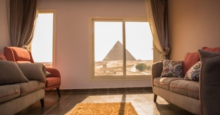 Property Location Located in Giza (Al Haram), Hayat Pyramids View Hotel is a 3-minute walk from Giza Pyramid Complex and 6 minutes by foot from Great Sphinx of Giza. This hotel is 8.5 mi (13.6 km) from The Hanging Church and 8.6 mi (13.8 km) from Coptic Museum.