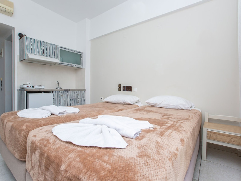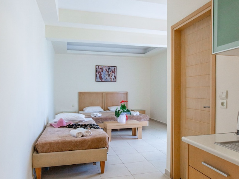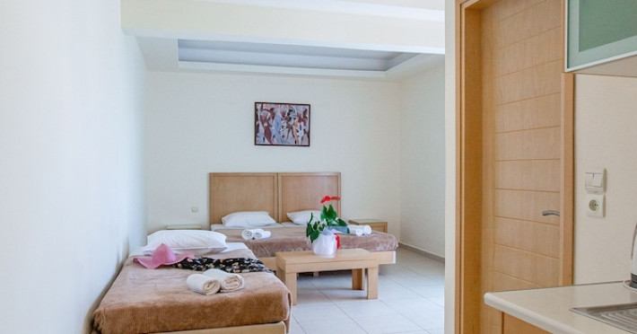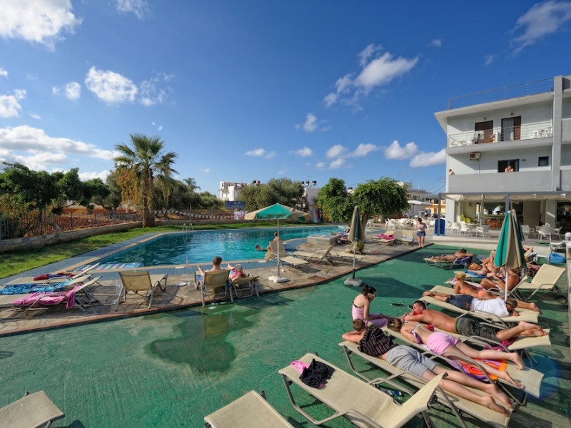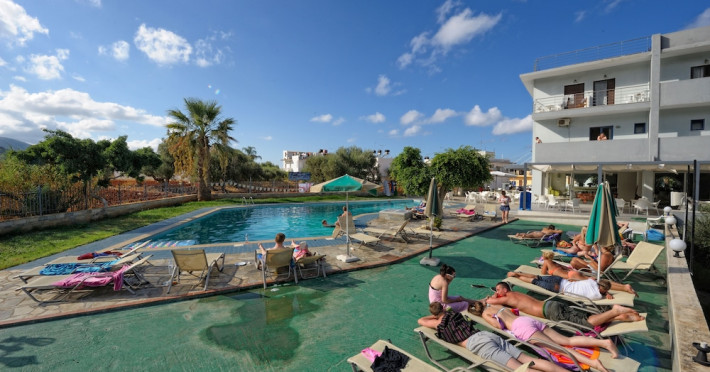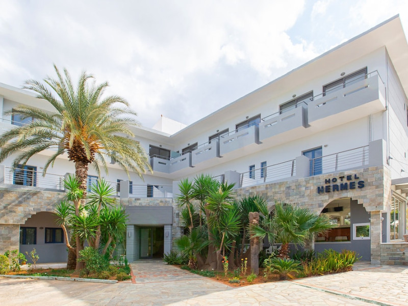 Located on the luscious and cultural Greek island of Crete, the recently refurbished Hermes Hotel is the perfect accommodation for a relaxing holiday near the center of Malia. Conveniently located in a quiet area within walking distance to the lively entertainment center and the Old Village of Malia. Hermes Hotel is the ideal choice for couples, families and small groups of young people who look to experience a varied holiday. Hermes Hotel is a family-run complex with a homely atmosphere. The Malia famous golden sandy beaches with all sea sports facilities are within walking distance. lt is a pleasant three-plus star hotel, consisted of Rooms, Self Catering Studios, and Apartments which are fully equipped and furnished. The well-kept complex, the brightly decorated public areas, and the rooms provide everything you may need for a memorable holiday in Crete.