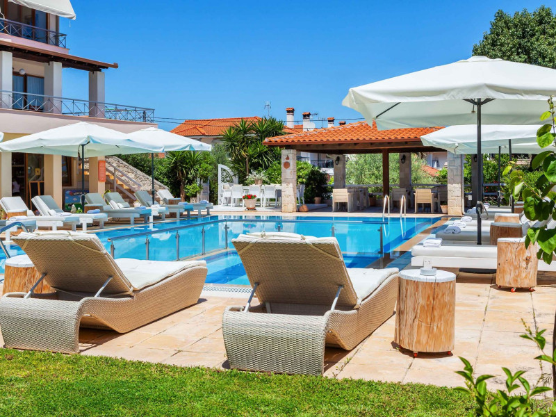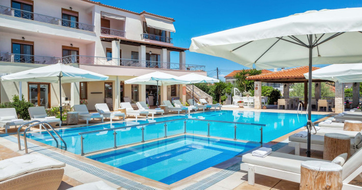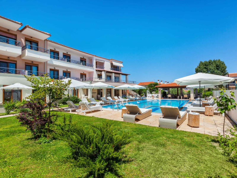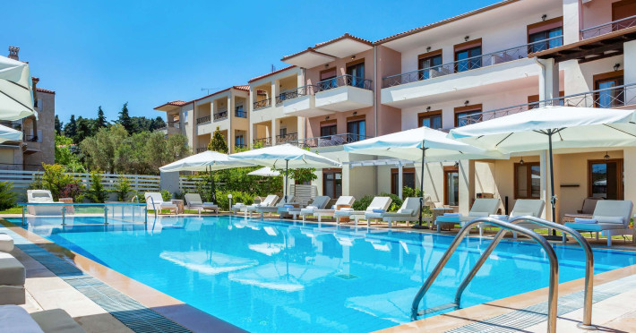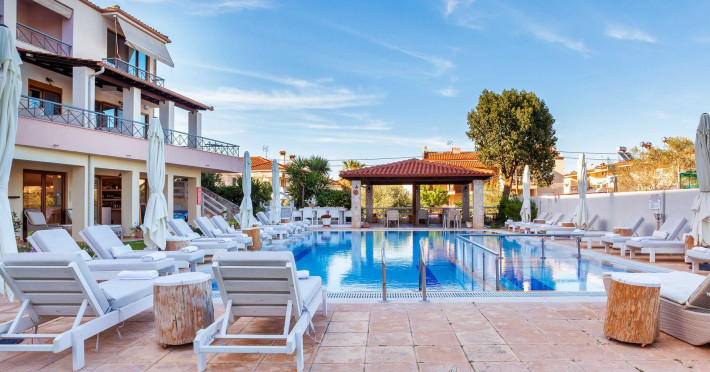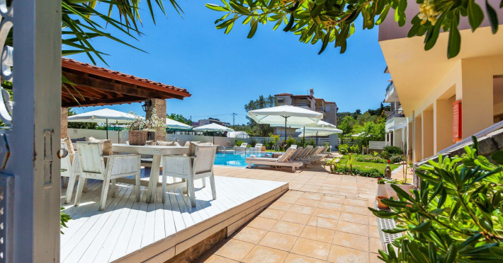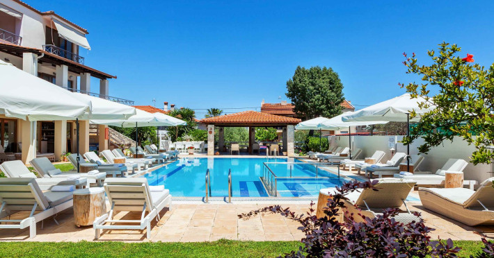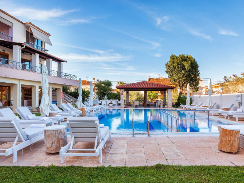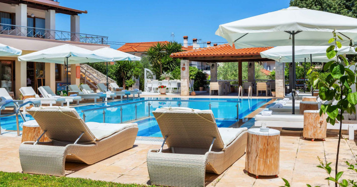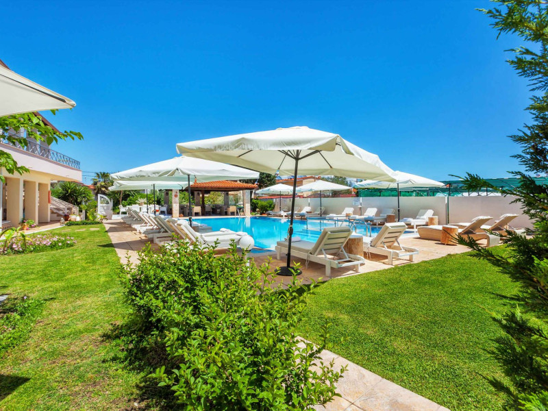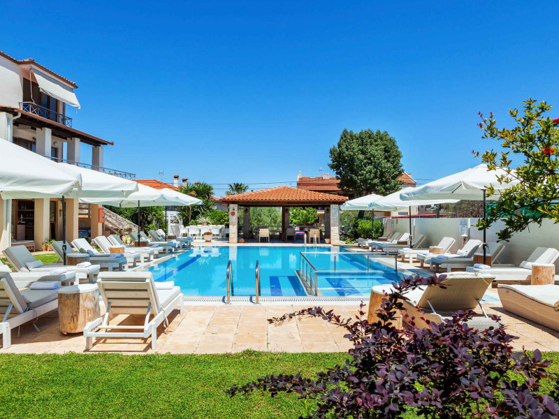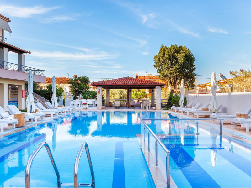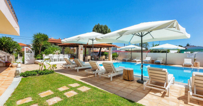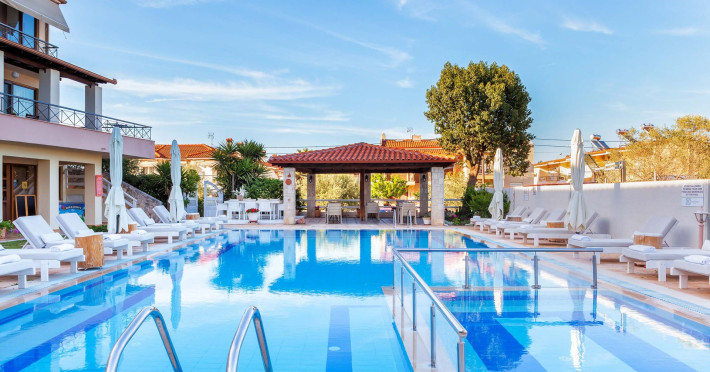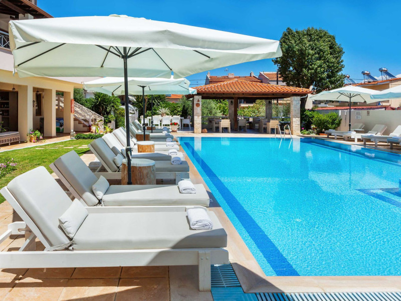 Hesperides Hotel is operating again! Located in Pefkohori, Halkidiki just next to the most popular beaches of Kassandra Peninsula. We offer self catering accommodation, supported with a la carte breakfast options. Our 24 rooms consist a small kitchenette. Cookware amenities provided upon request, for your flexibility. Enjoy authentic Greek Hospitality, and nbsp;relax by the pool mixed with fancy refreshments! We are looking forward to provide you a great experience. Do not hesitate to contact us for any further information, we will be happy to assist you! nbsp;