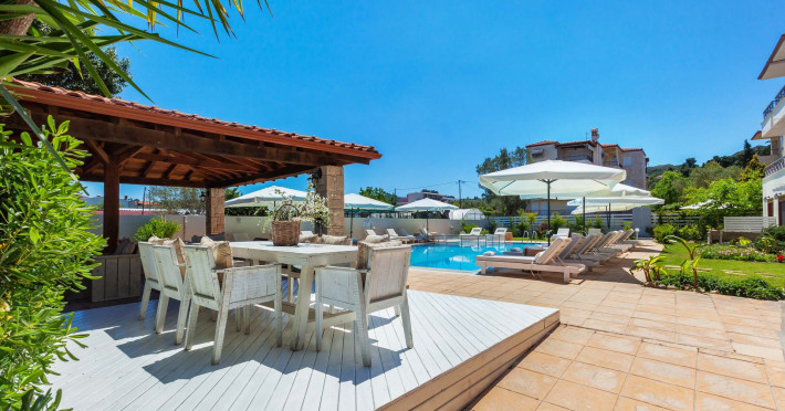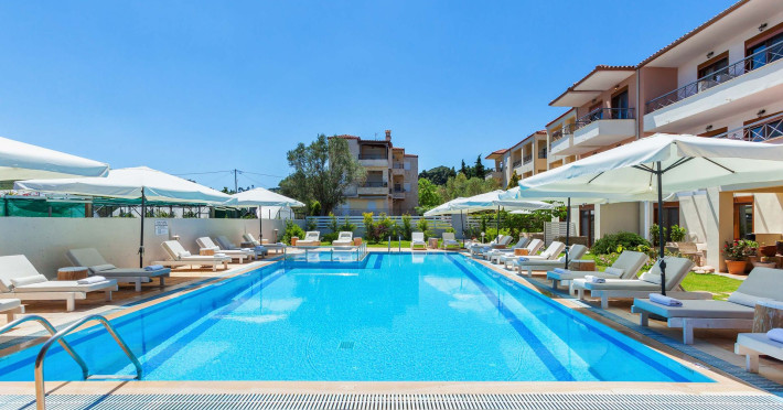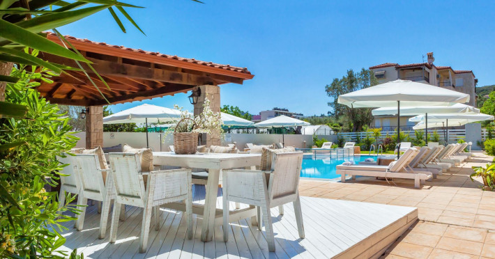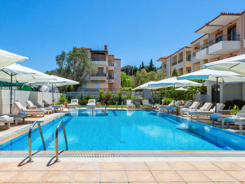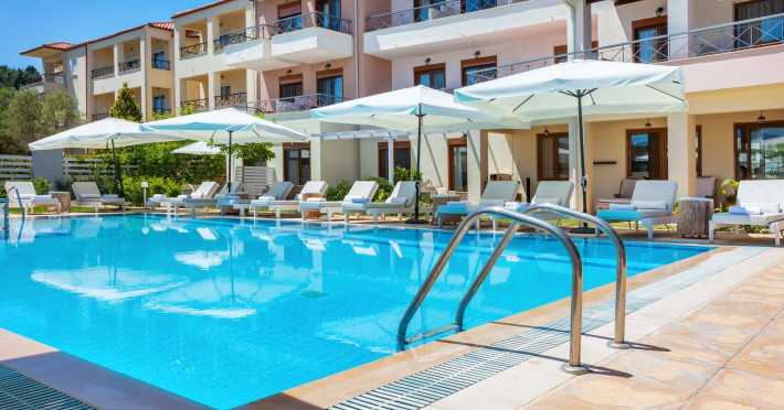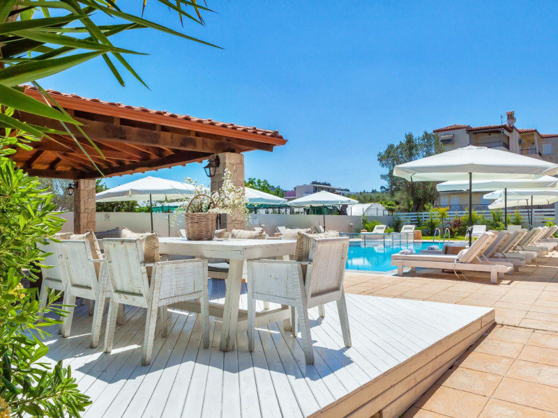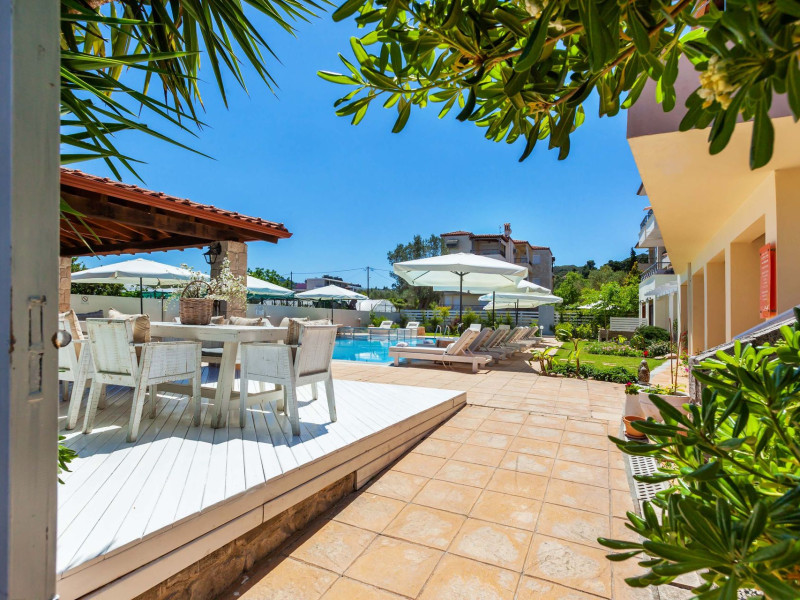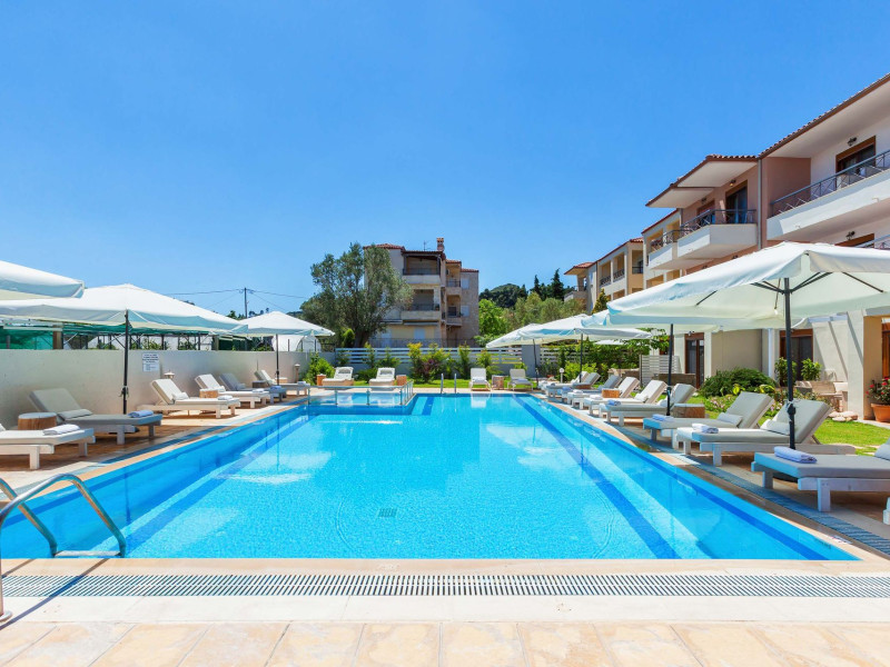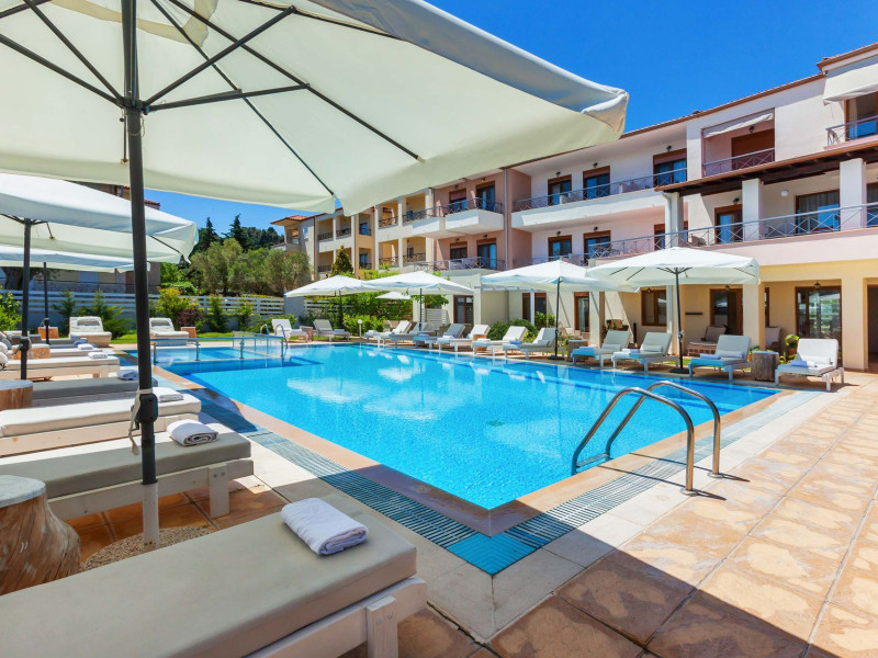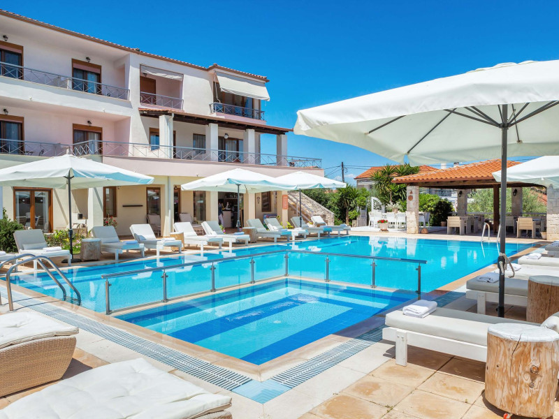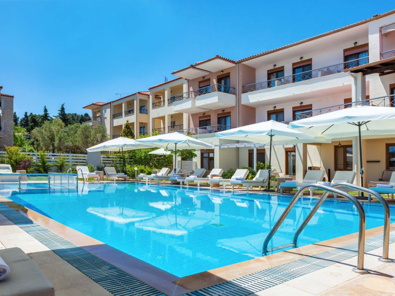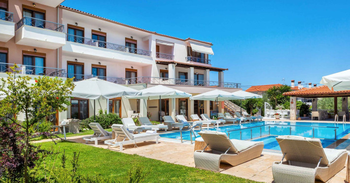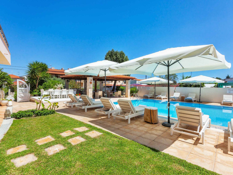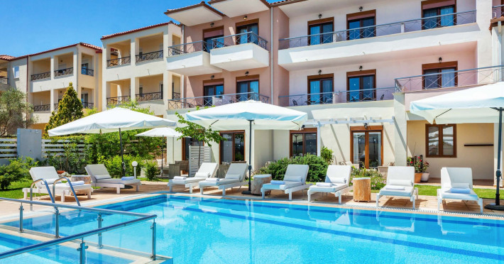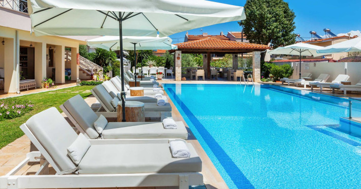 Hesperides Hotel is operating again! Located in Pefkohori, Halkidiki just next to the most popular beaches of Kassandra Peninsula. We offer self catering accommodation, supported with a la carte breakfast options. Our 24 rooms consist a small kitchenette. Cookware amenities provided upon request, for your flexibility. Enjoy authentic Greek Hospitality, and nbsp;relax by the pool mixed with fancy refreshments! We are looking forward to provide you a great experience. Do not hesitate to contact us for any further information, we will be happy to assist you! nbsp;